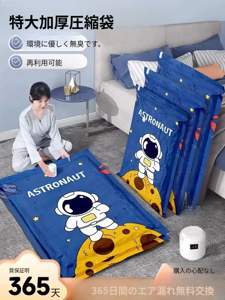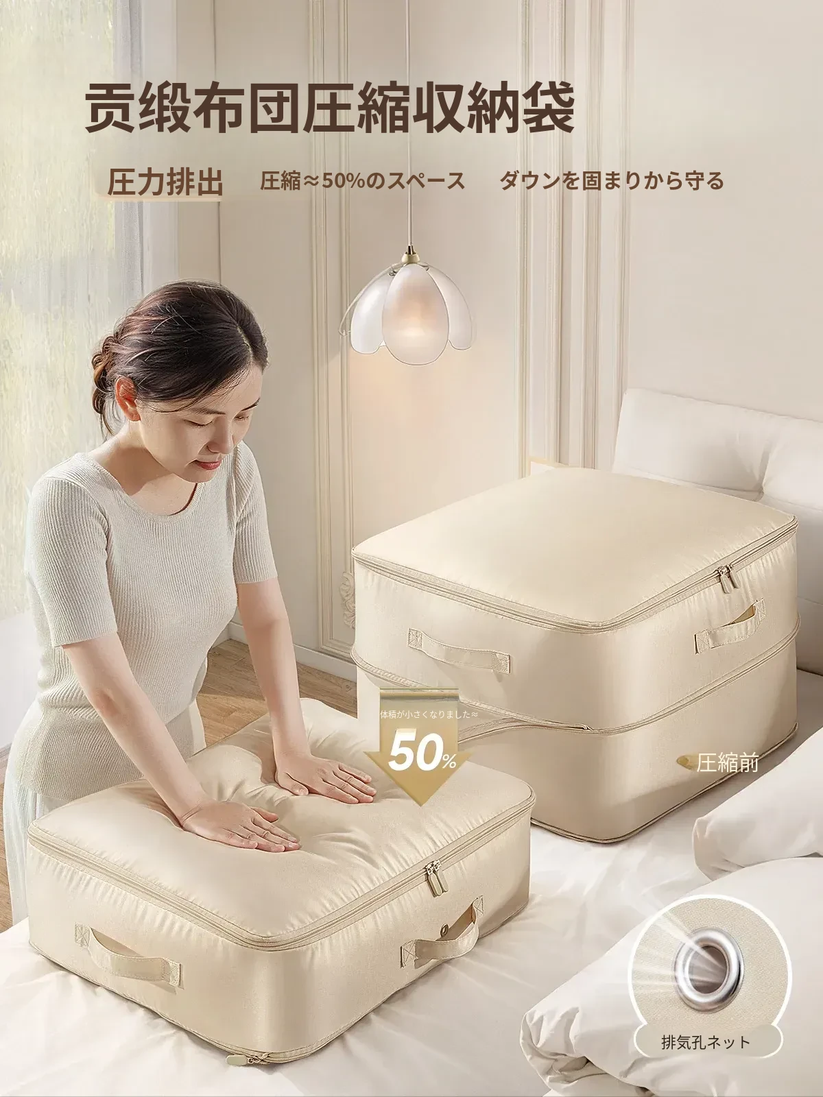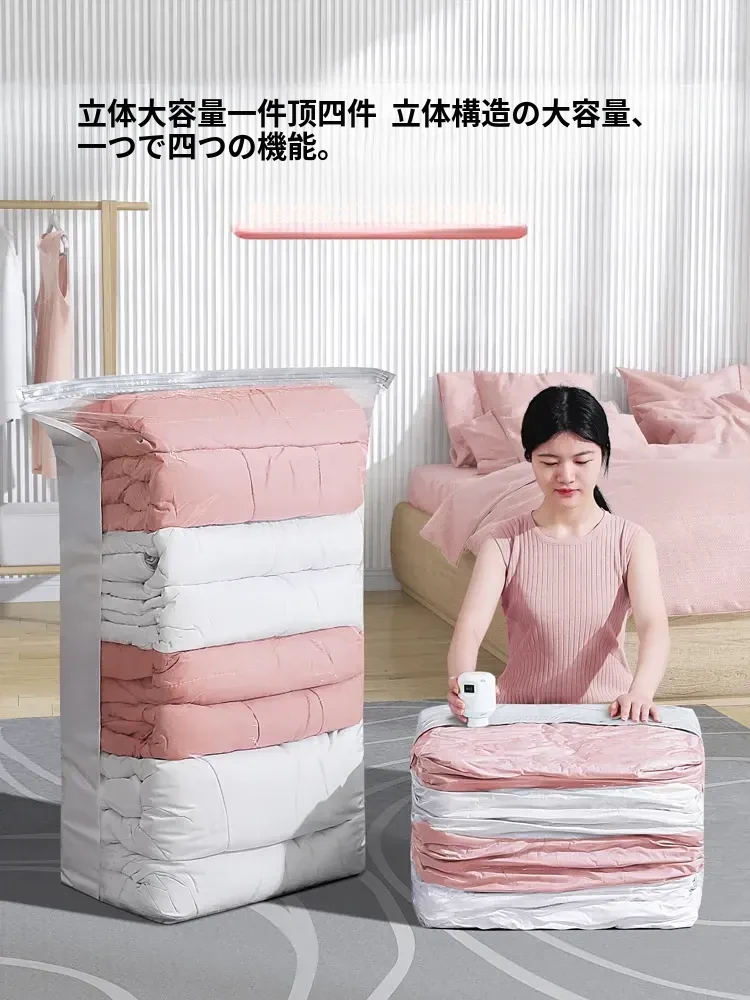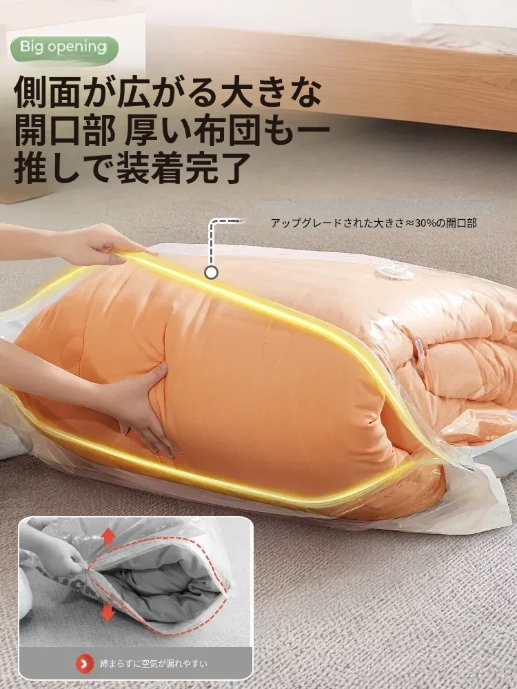 無抽気立体真空圧縮袋|羽毛布団や衣類の整理に最適!家族の衣服や毛布をスッキリ収納できる専用収納袋。スペースを節約して、クローゼットもすっきり!