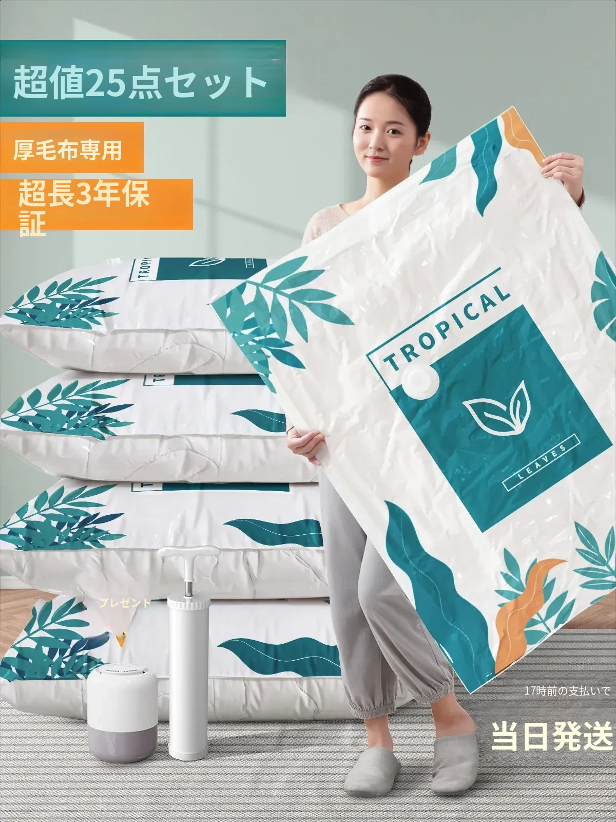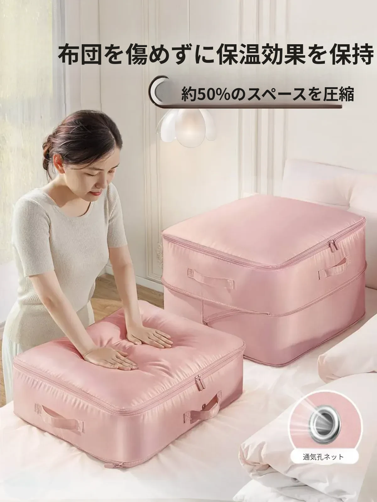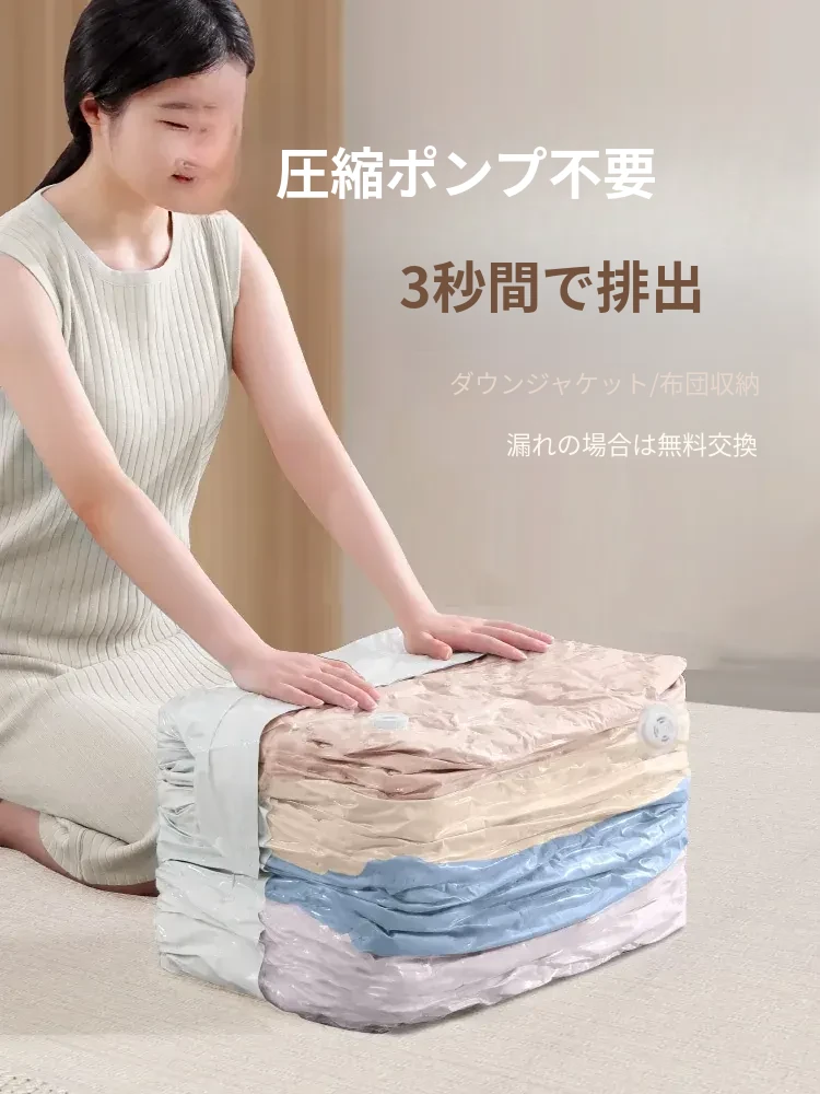 真空圧縮袋専用収納袋|布団・毛布・ダウンジャケット・衣類に最適!空気抜き不要で立体的に収納可能!家庭用密封袋でスペースを有効活用し、すっきり整理整頓!