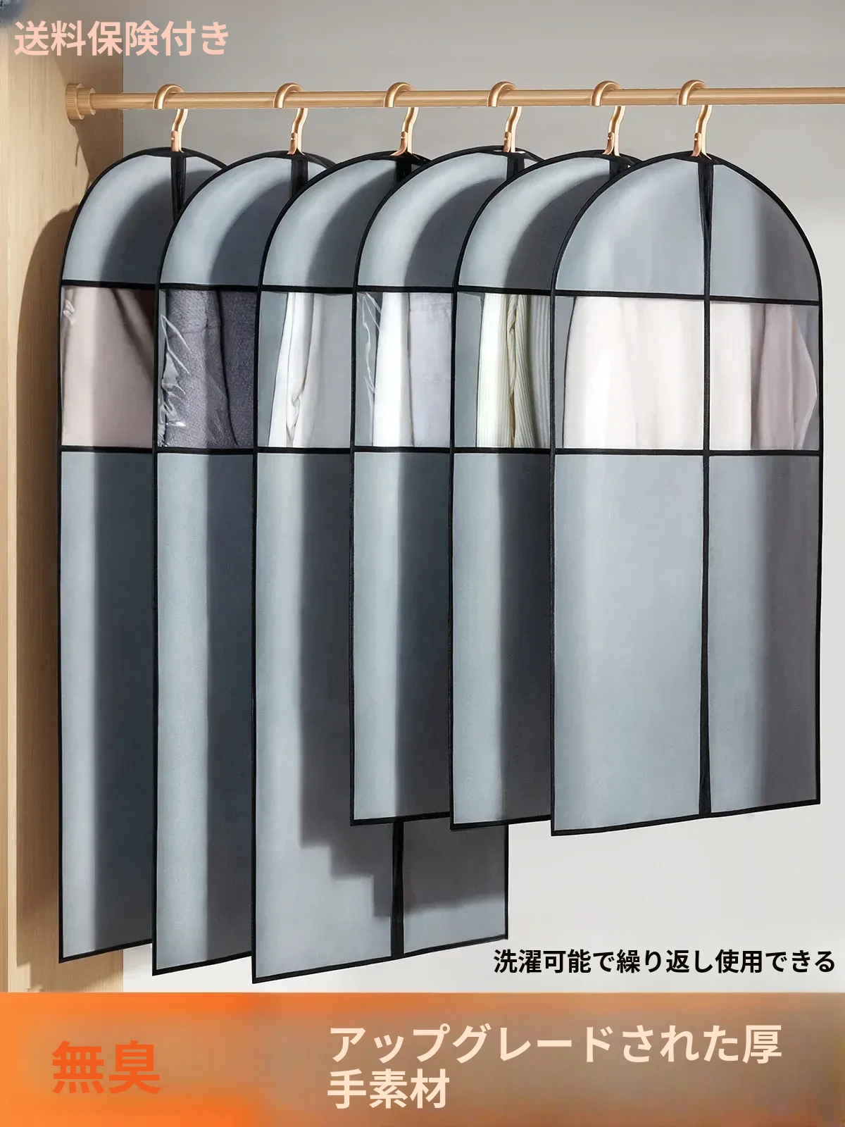 厚手の防塵カバー付きハンガーバッグ!衣替えに最適な収納袋で、ダウンジャケットやコート、スーツもきれいに保管。透明デザインで中身が一目瞭然!衣類をしっかり守り、クローゼットをスッキリ整理。