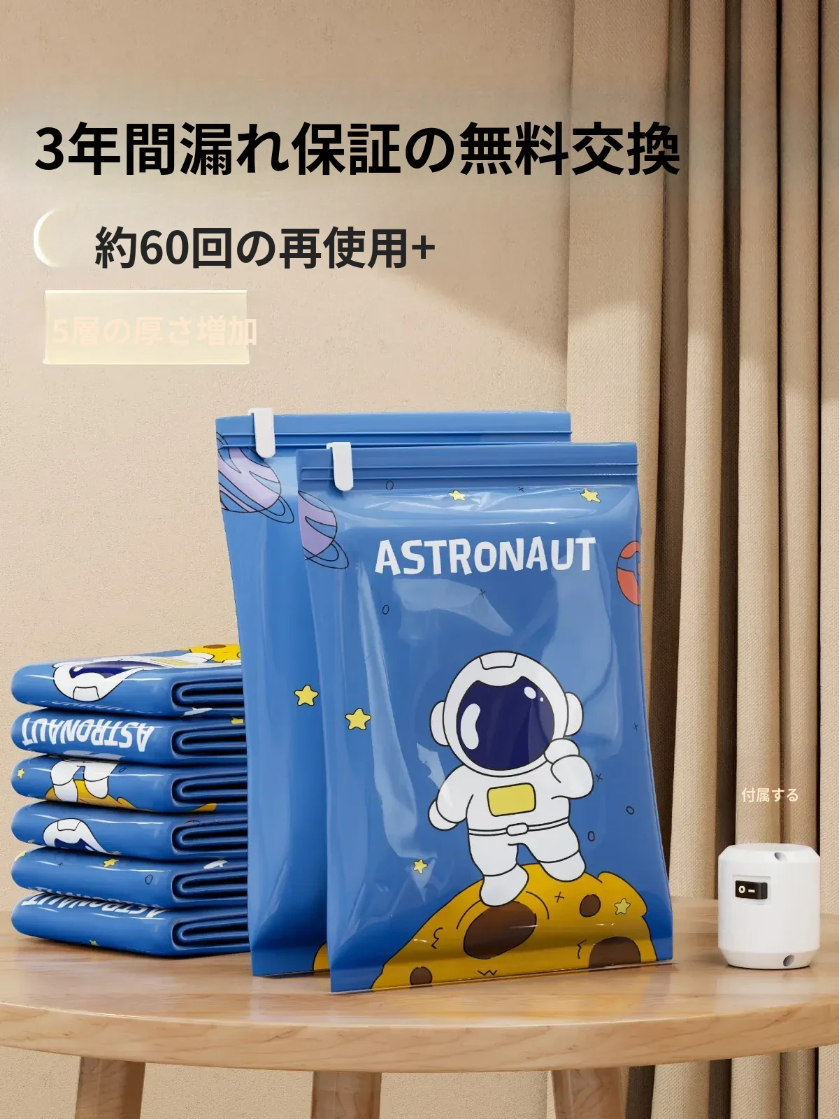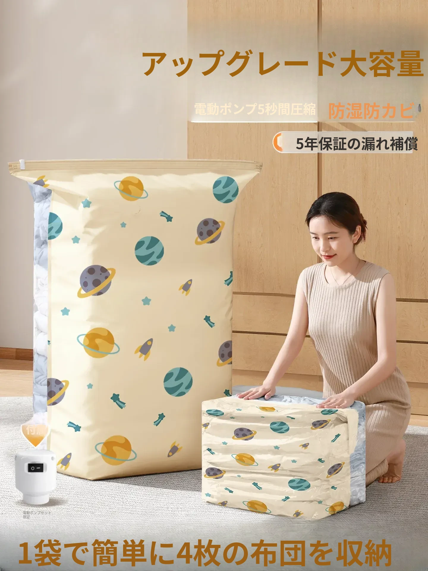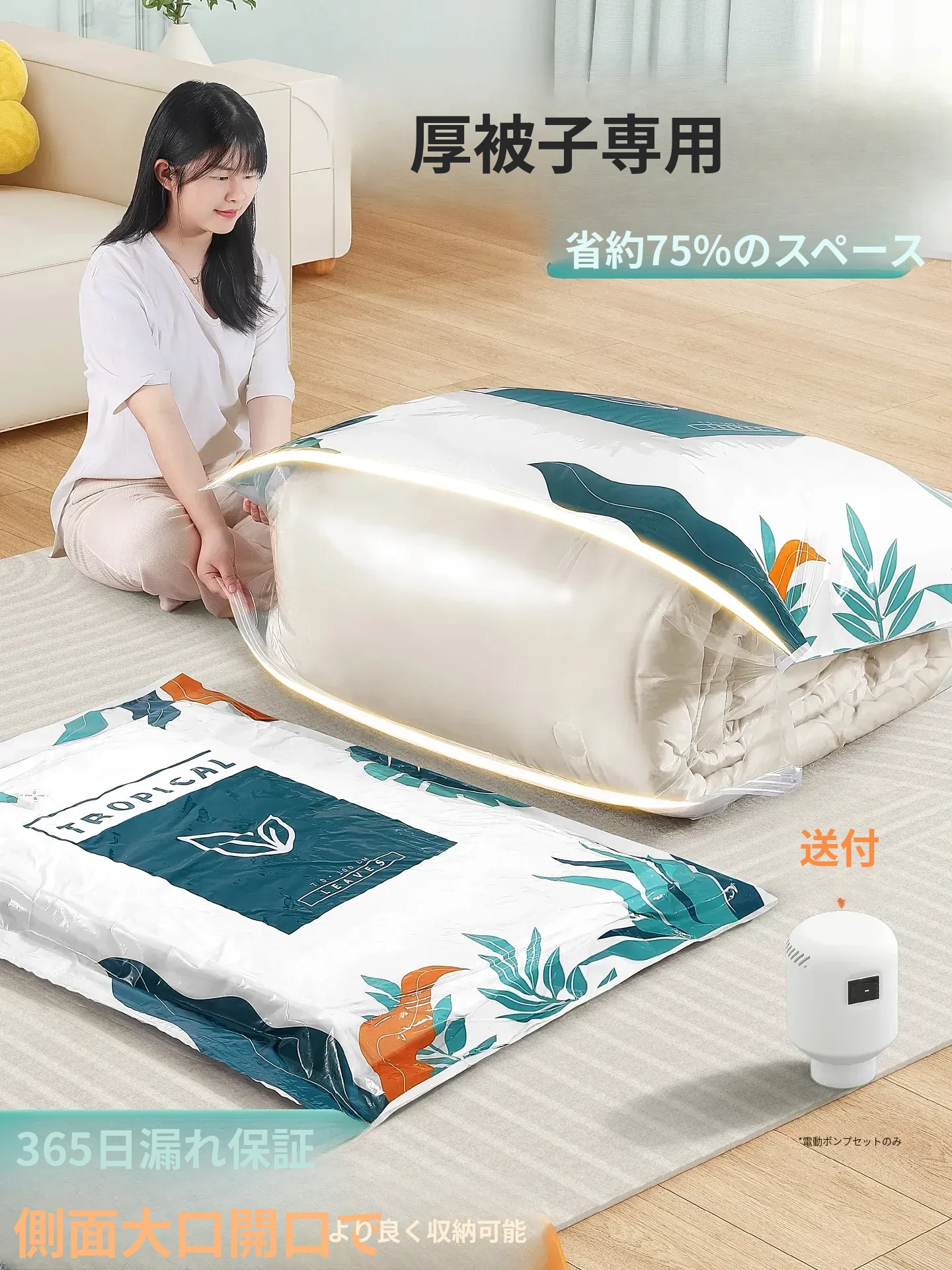 真空圧縮袋|大容量収納バッグ|羽毛布団や衣類に最適!衣服や毛布をスマートに整理して、スペースを有効活用!家庭用にぴったりな便利アイテムです。