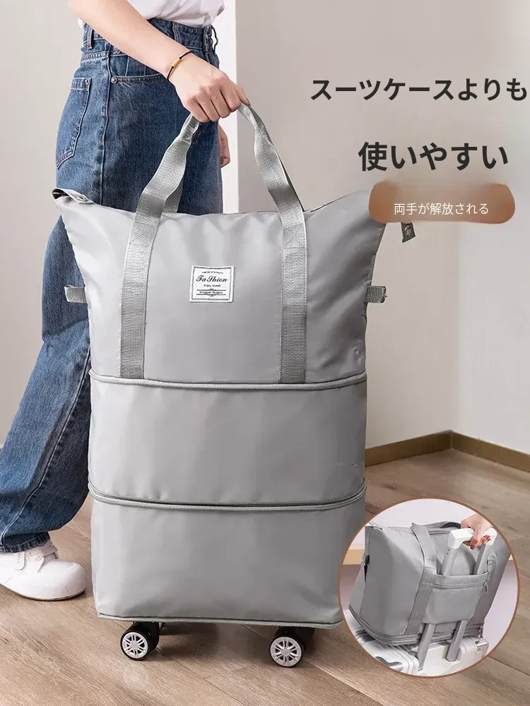 学生向け!滑車付き大容量収納バッグ - 宿泊生の衣類整理に最適!新学期の行李にぴったりな使いやすいデザインで、すっきり整理整頓を実現!