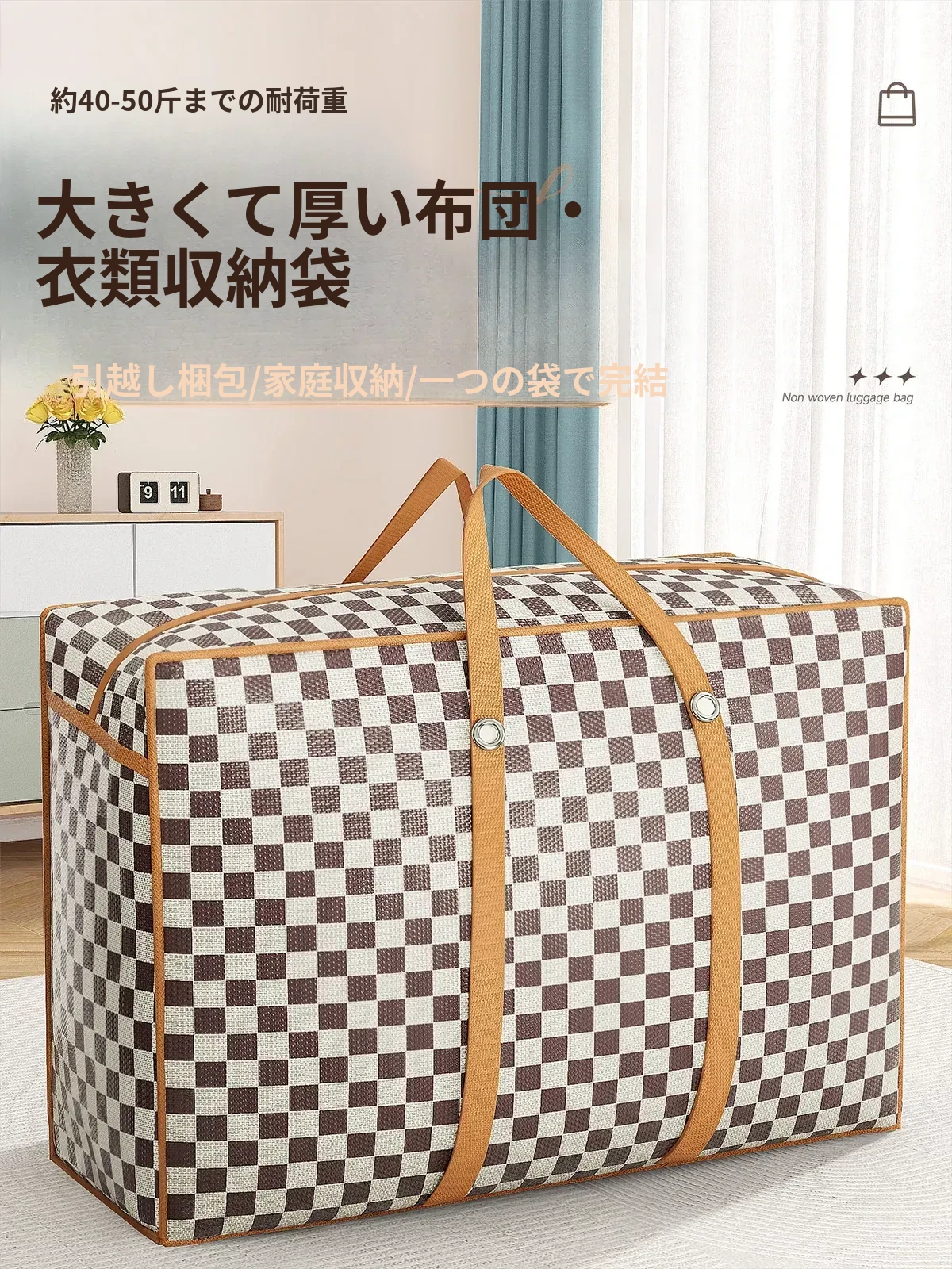 大容量収納バッグ!引越しや旅行に最適な衣類・布団整理用、防湿機能付きの便利アイテム!収納も簡単で、スペースを有効活用できます。
