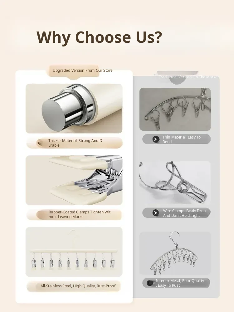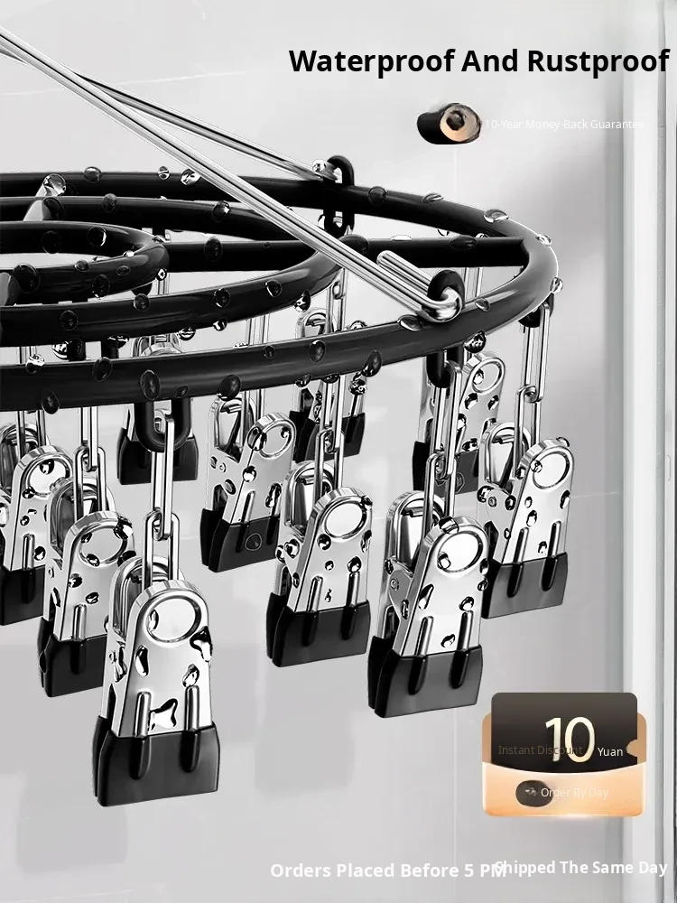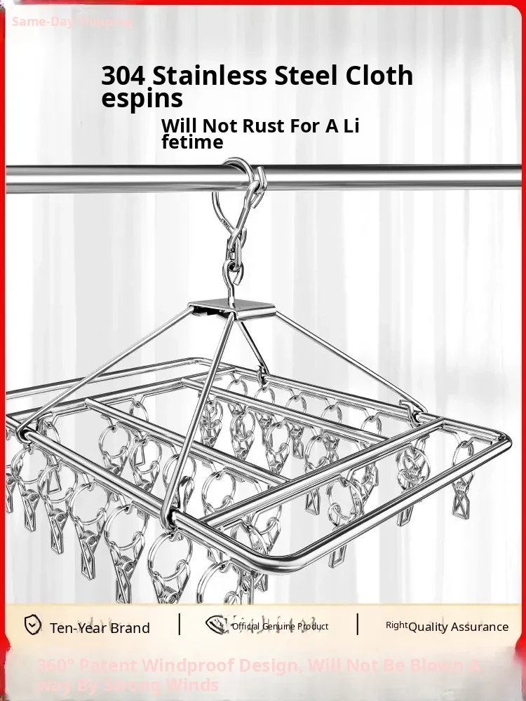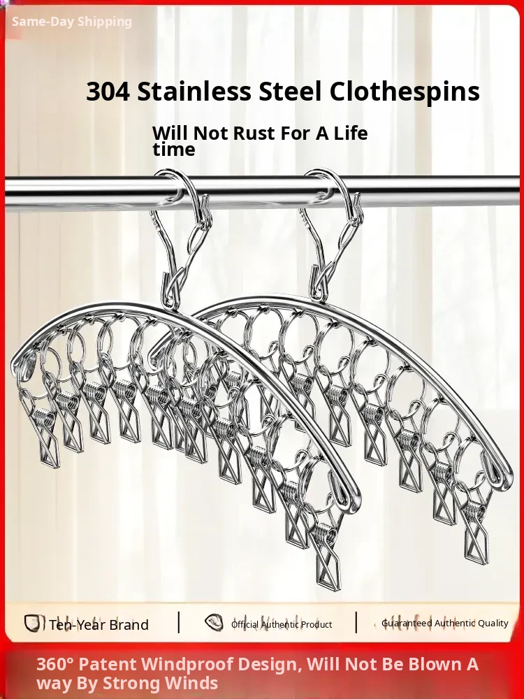 Stainless Steel 304 Multi-Clip Clothes Drying Rack - Windproof Hooks for Home, Heavy-Duty and Versatile Sock Drying Solution!