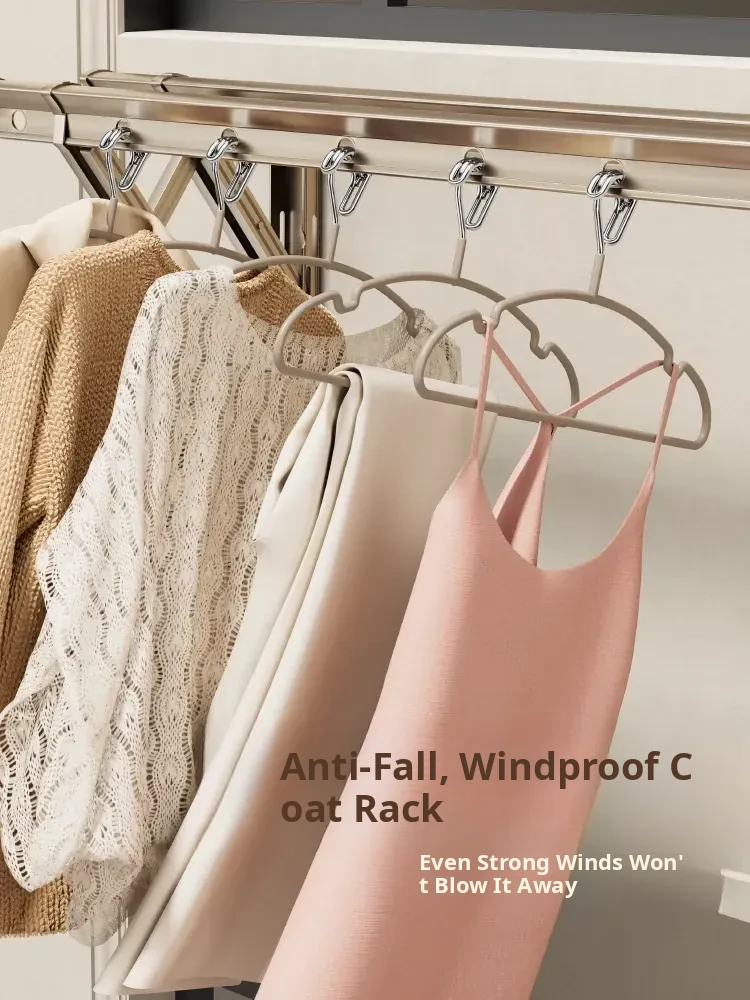 Aluminum Alloy Balcony Clothes Drying Rack with Multiple Clips - Stainless Steel Sock and Underwear Drying Solution for Efficient Air Drying