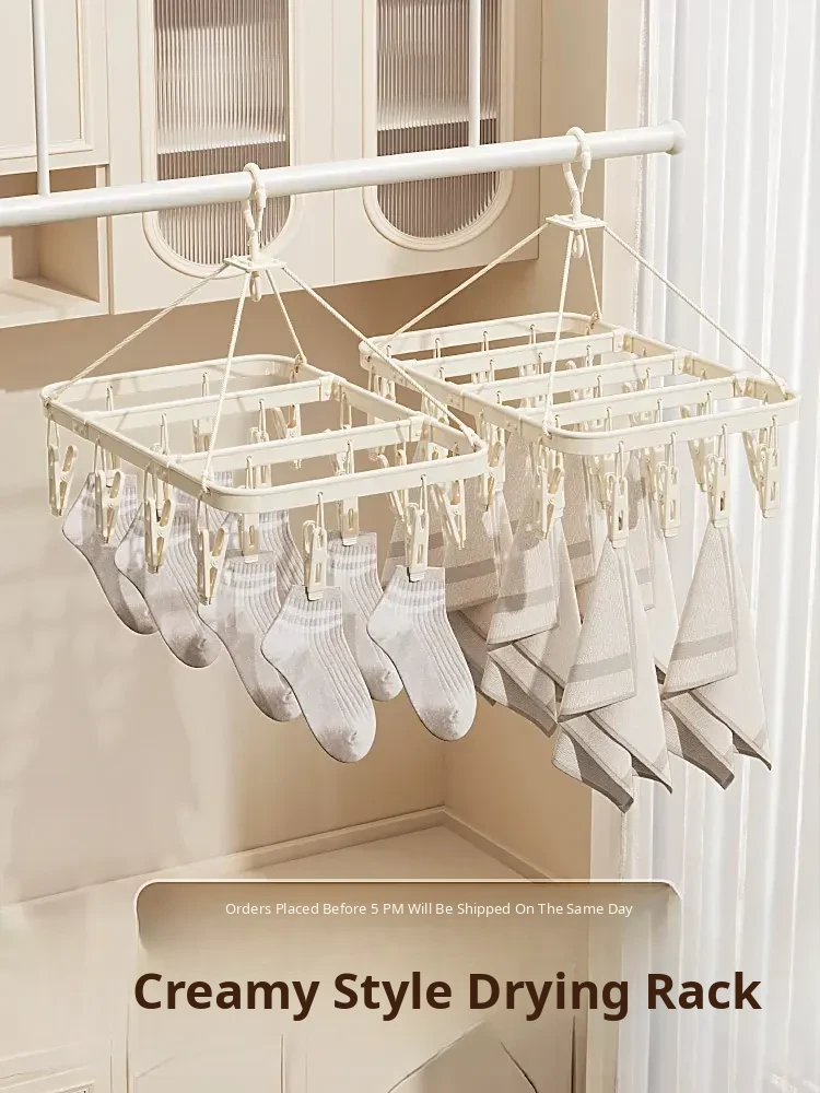 Dormitory Clothes Drying Rack for Students - Multi-Clip Sock and Underwear Hanger, Perfect for Home Balconies and Efficient Sock Drying!