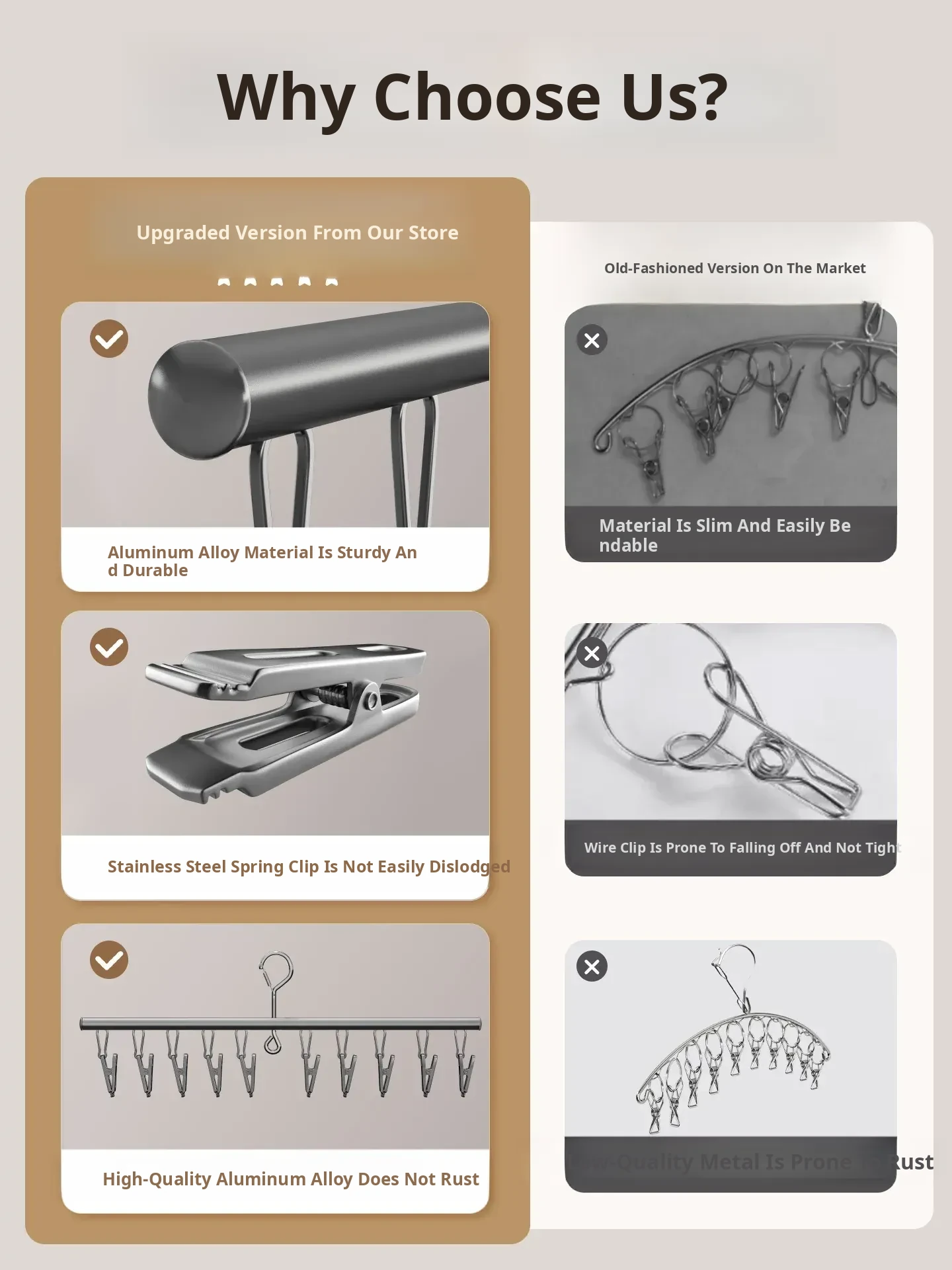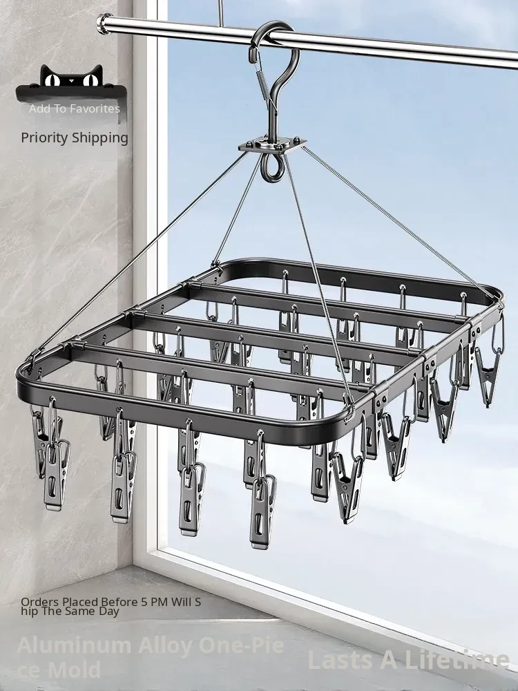 Aluminum Alloy Stainless Steel Sock Drying Rack - Windproof Clothes Hanger with Multiple Clips, Perfect for Balconies and Ideal for Underwear and Socks!