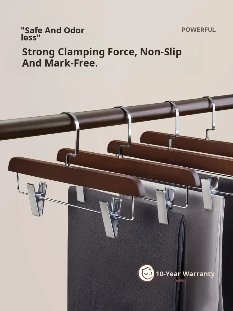 Solid Wood Pants Hanger with Clips - No Trace Design for Home Closets & Retail Stores, Heavy-Duty Wooden Pants Clip for Skirts and Trousers, Perfect for Organizing Your Wardrobe