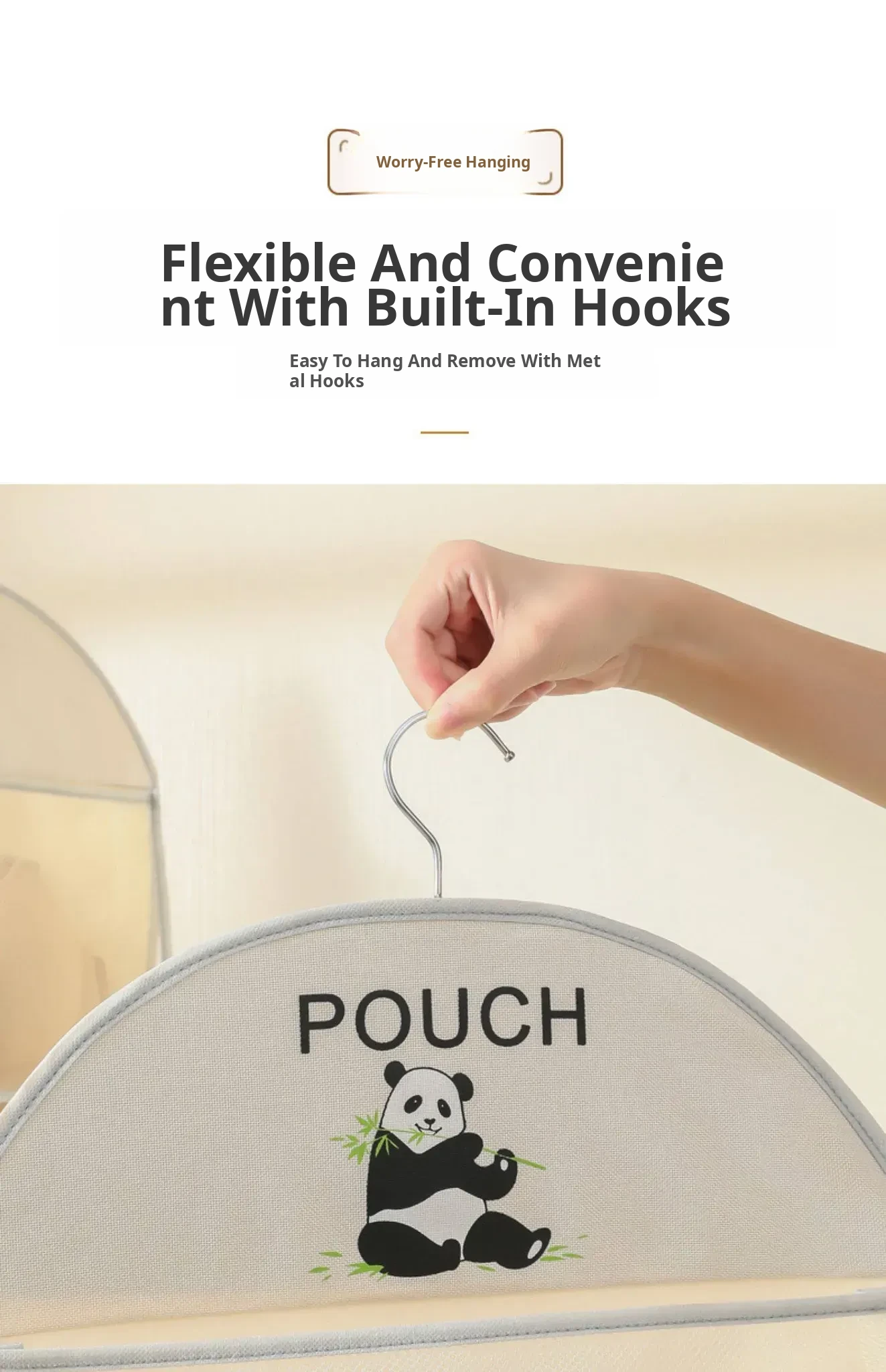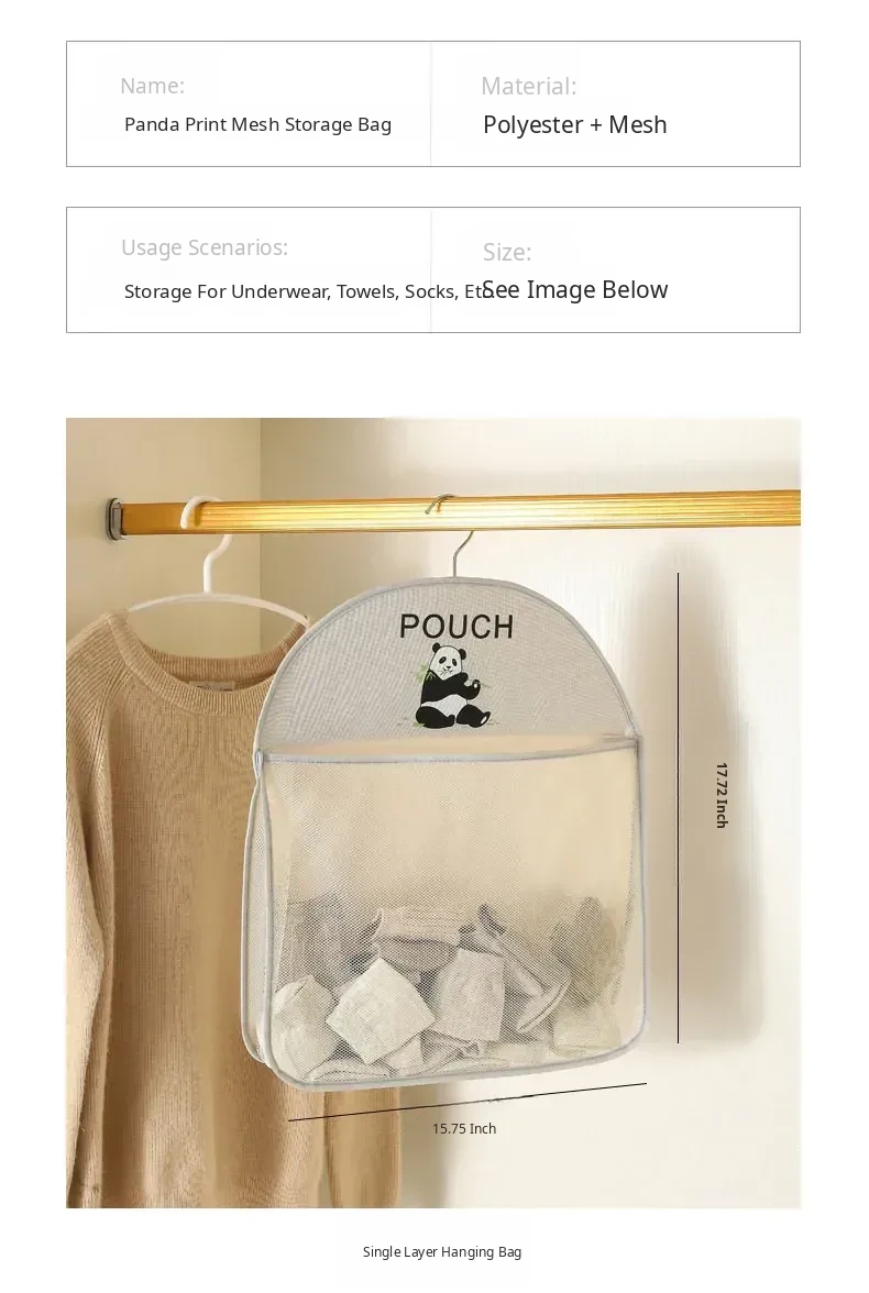 Gray Single-Layer Panda (Includes Two Transparent Adhesive Hooks)