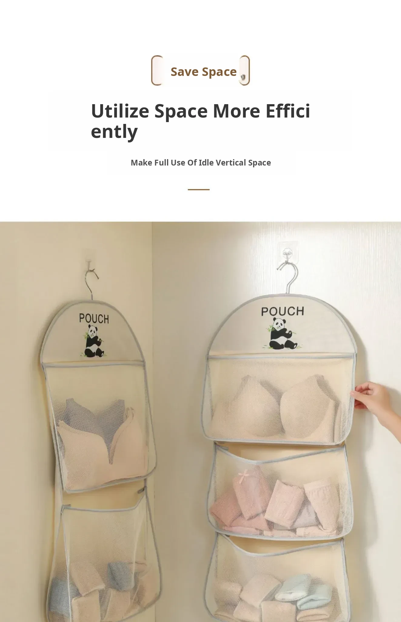 Gray Double-Layer Panda (Includes Two Clear Adhesive Hooks)