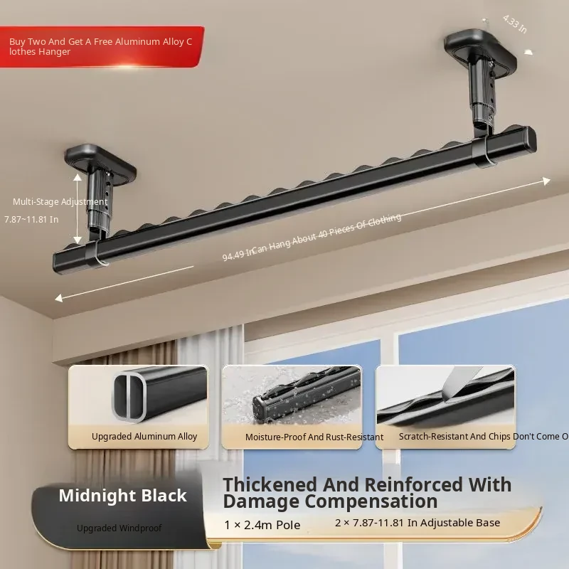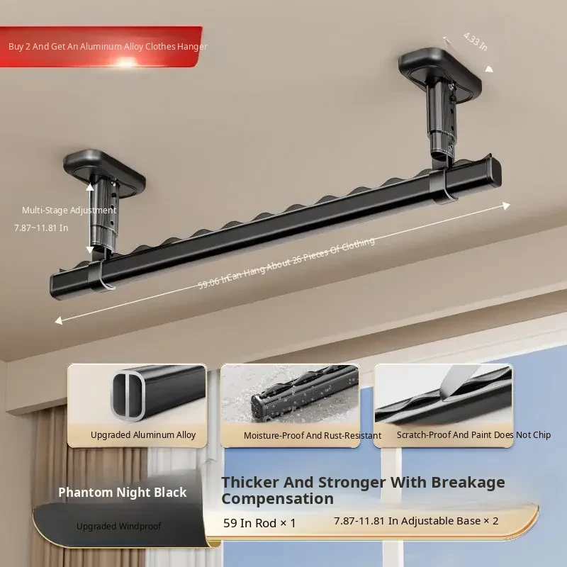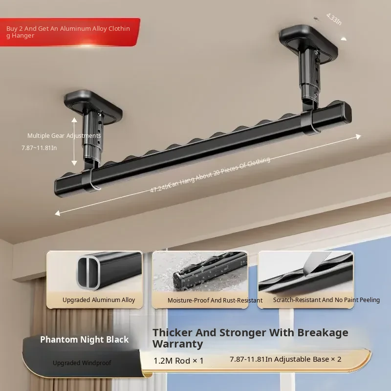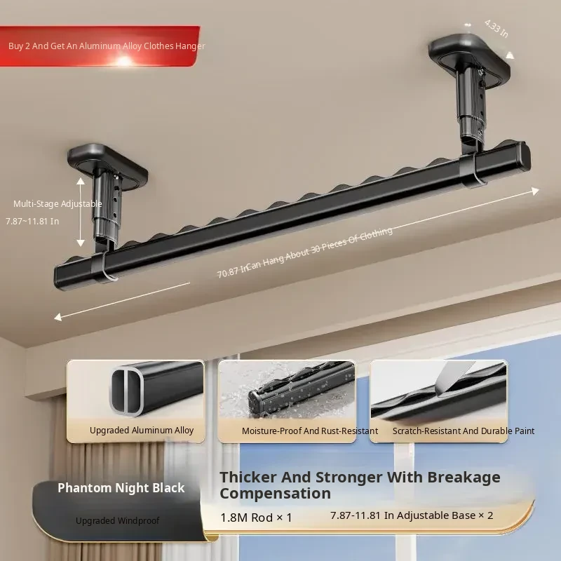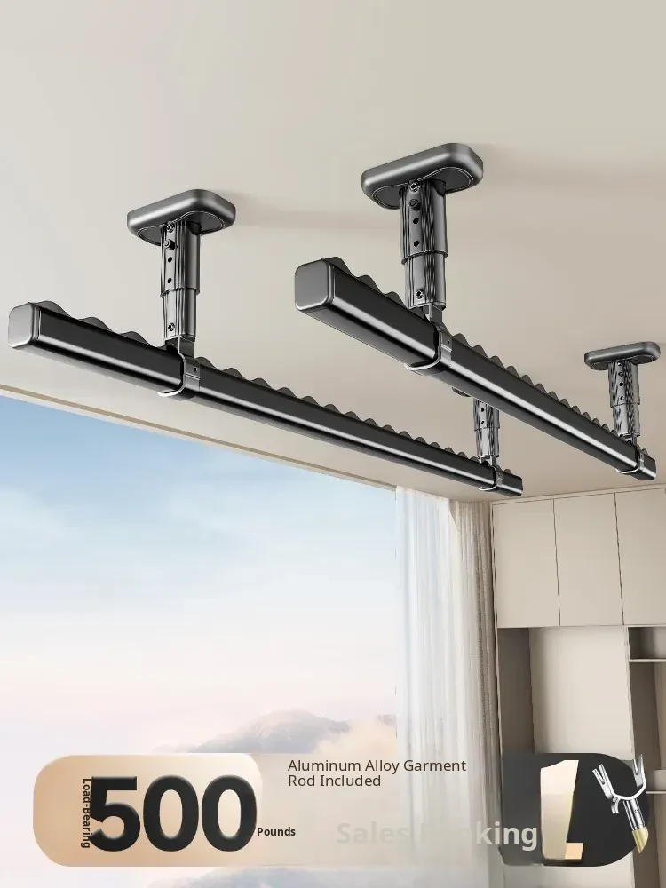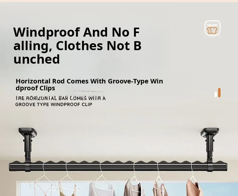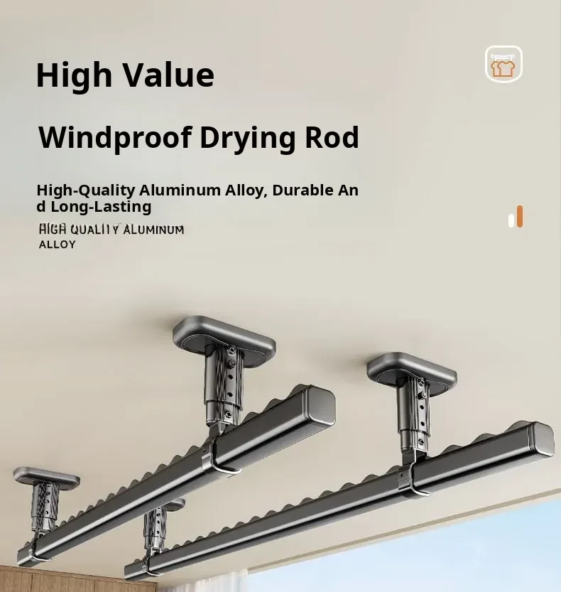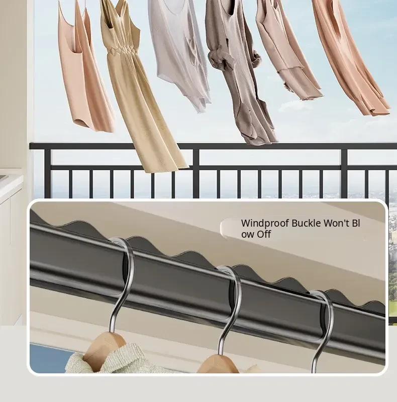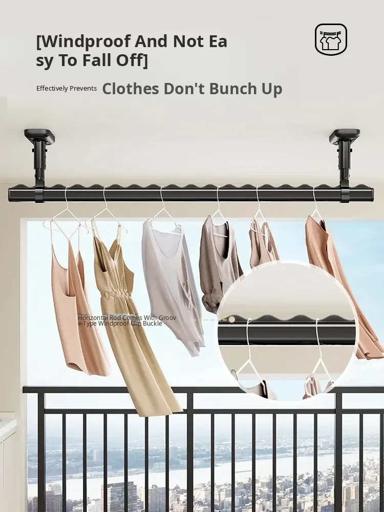 Fixed Ceiling Clothes Drying Rack for Balcony - Wall-Mounted Hanging Rod, Windproof Home Clothesline for Efficient Drying and Space-Saving Solutions