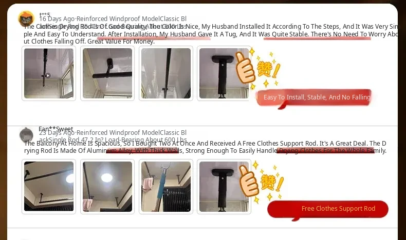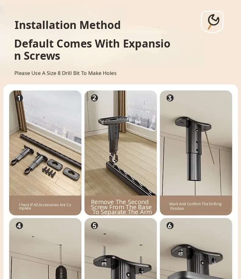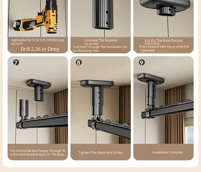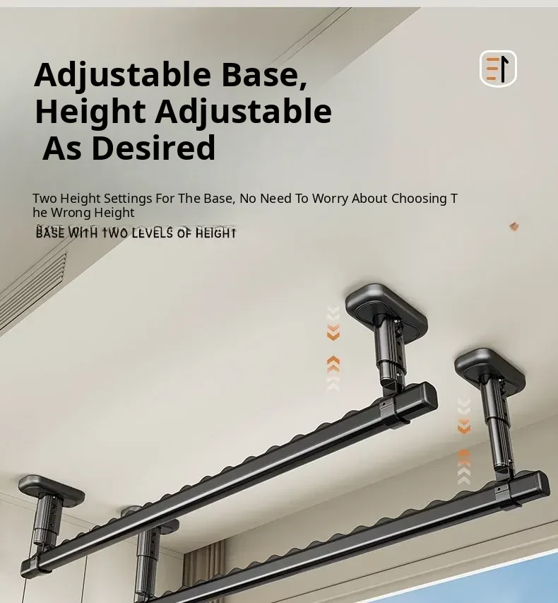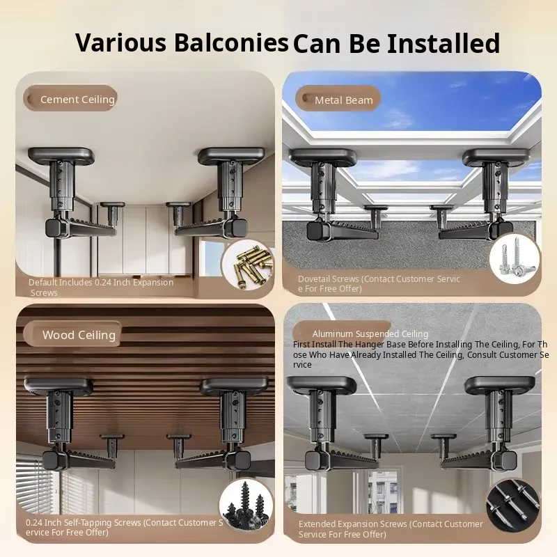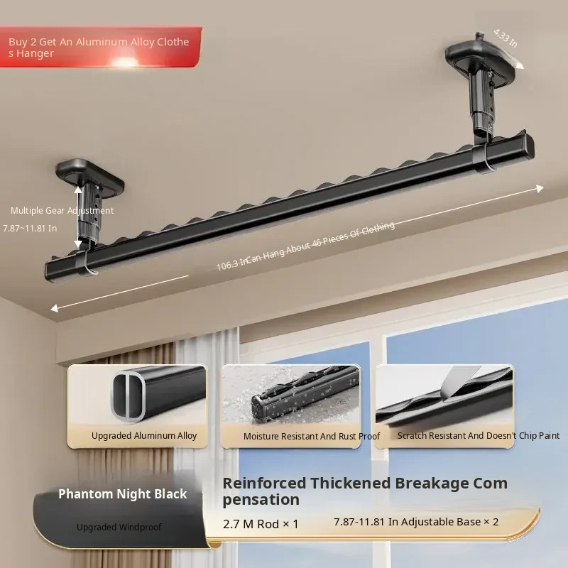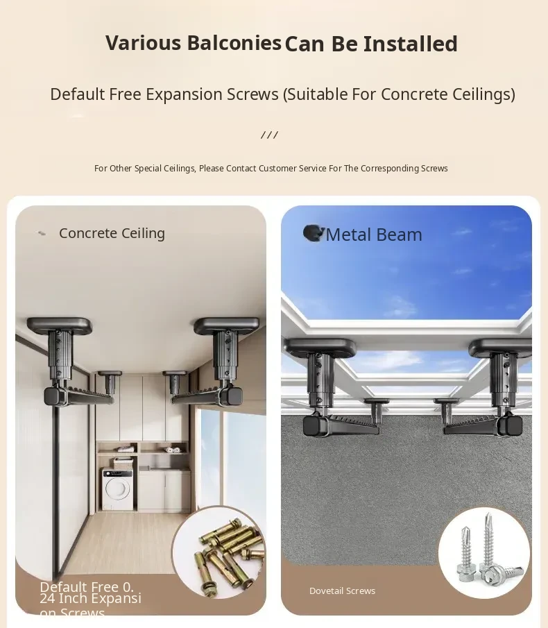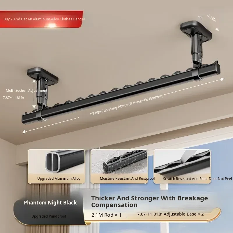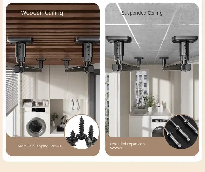 Fixed Ceiling Clothes Drying Rack for Balcony - Wall-Mounted Hanging Rod, Windproof Home Clothesline for Efficient Drying and Space-Saving Solutions