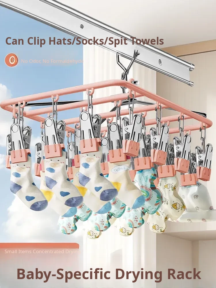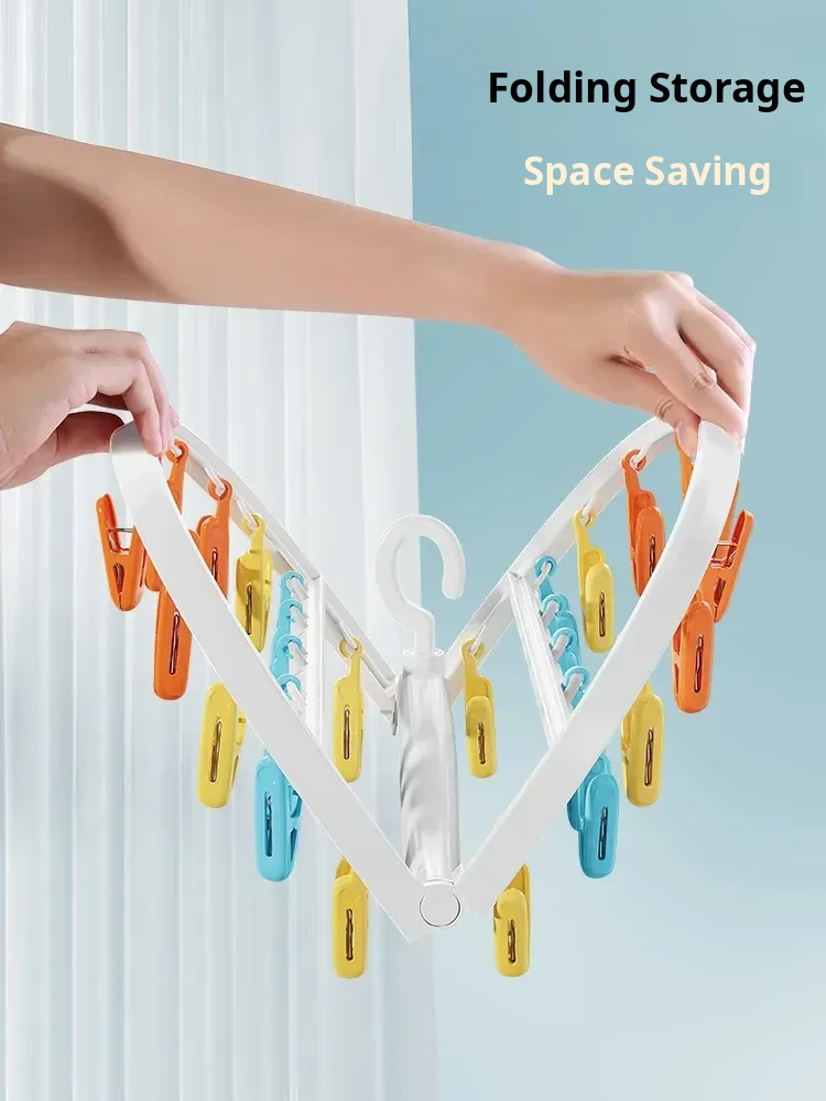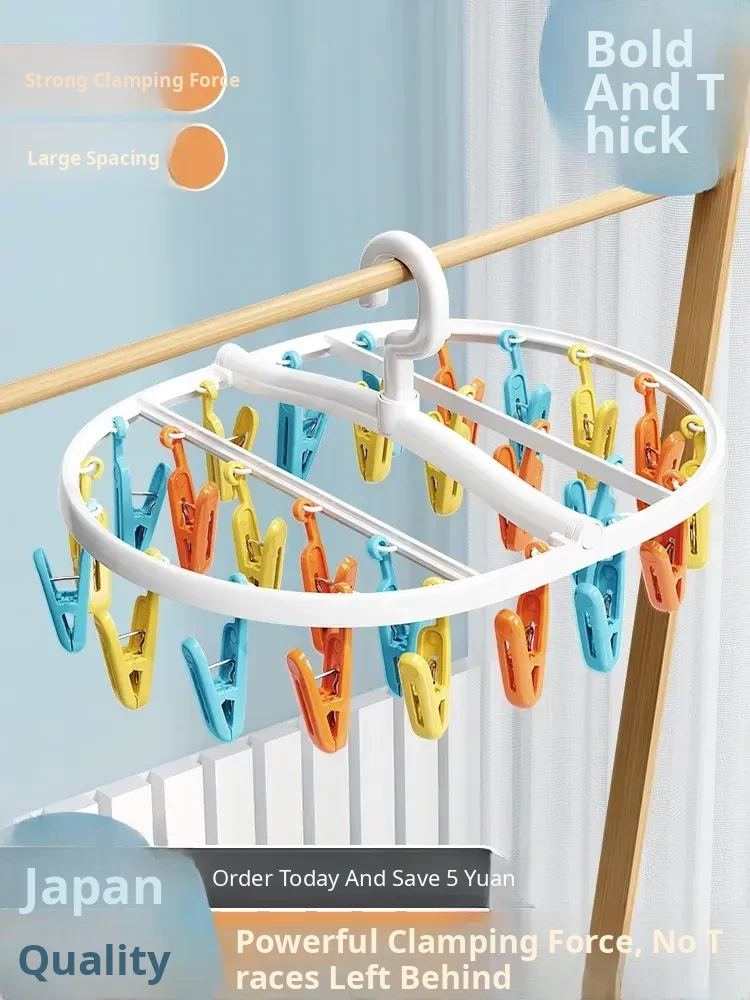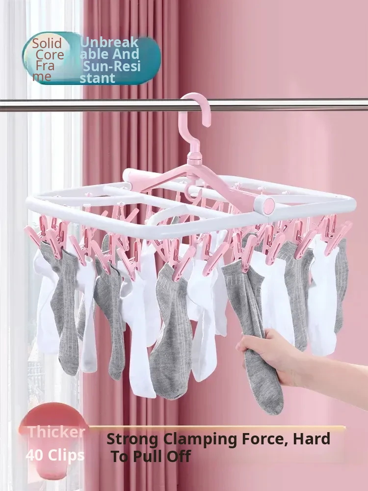 Japan Socks Drying Rack with Multiple Clips - Foldable Balcony Clothes Hanger for Home Use, Perfect for Underwear and Sock Drying, Your Ultimate Laundry Solution!
