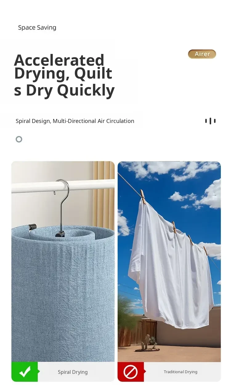 Japanese Spiral Clothes Drying Rack - Versatile Rotating Round Frame for Balcony Use, Perfect for Bedding and Large Items - Your Ultimate Drying Solution!