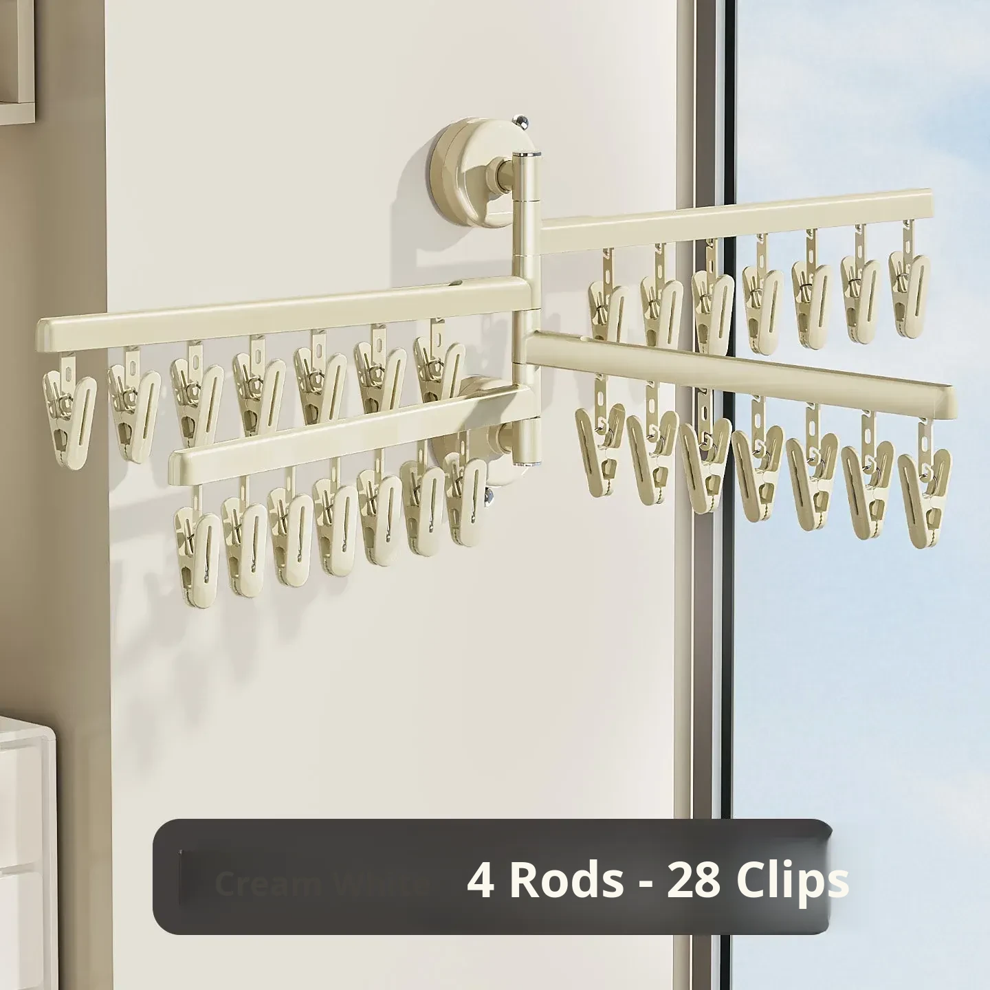 [Cream White] Four Poles 28 Clips ❤️ High-Capacity Drying Recoinended