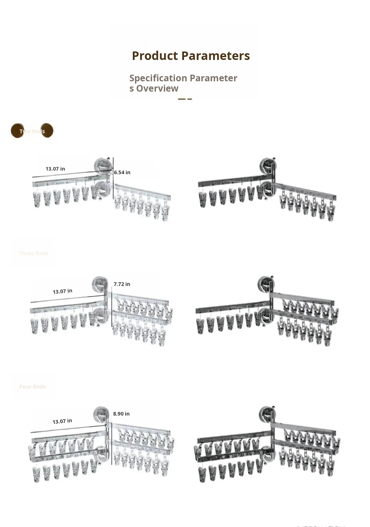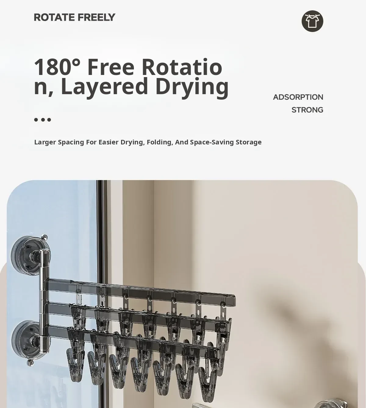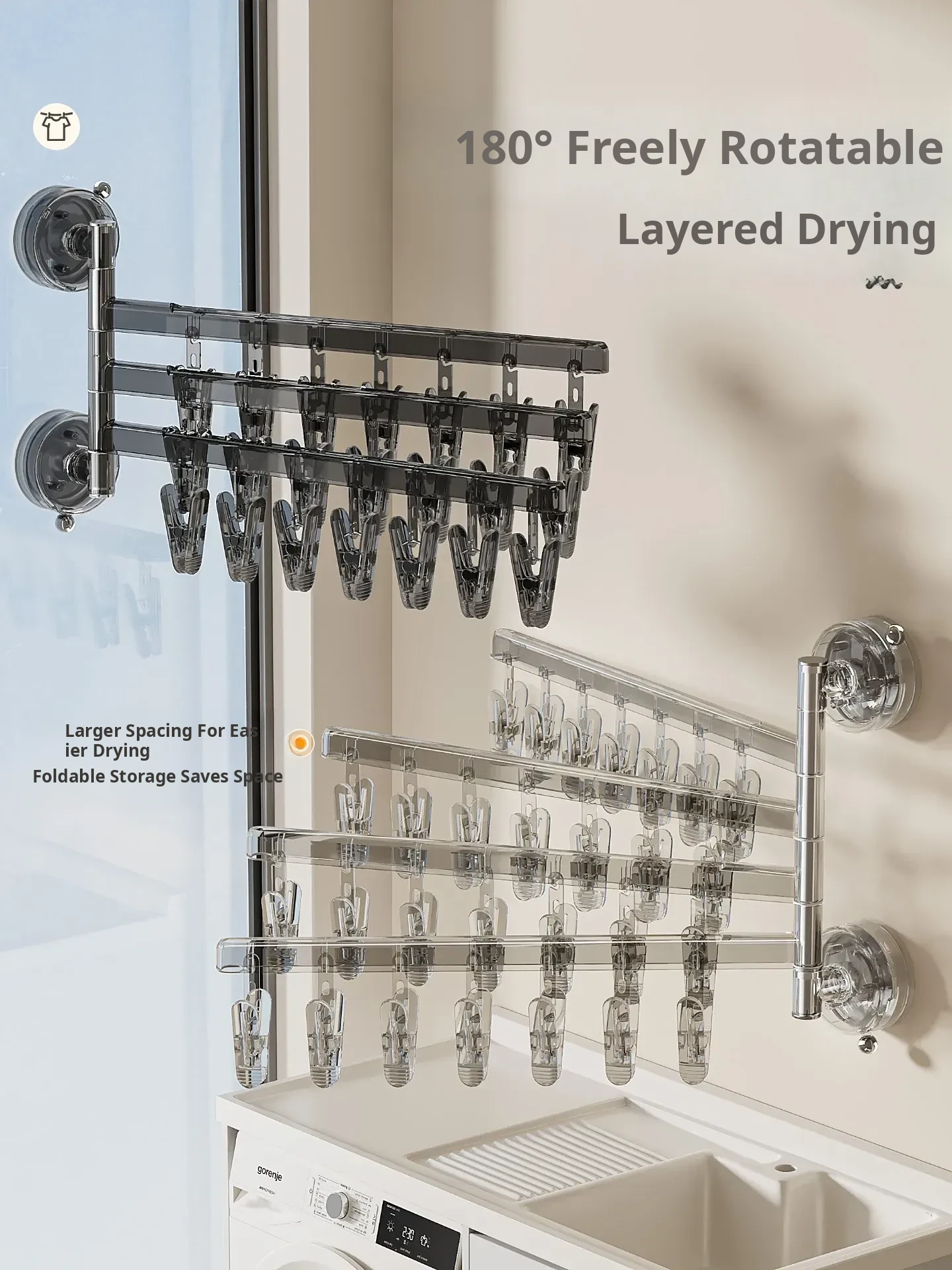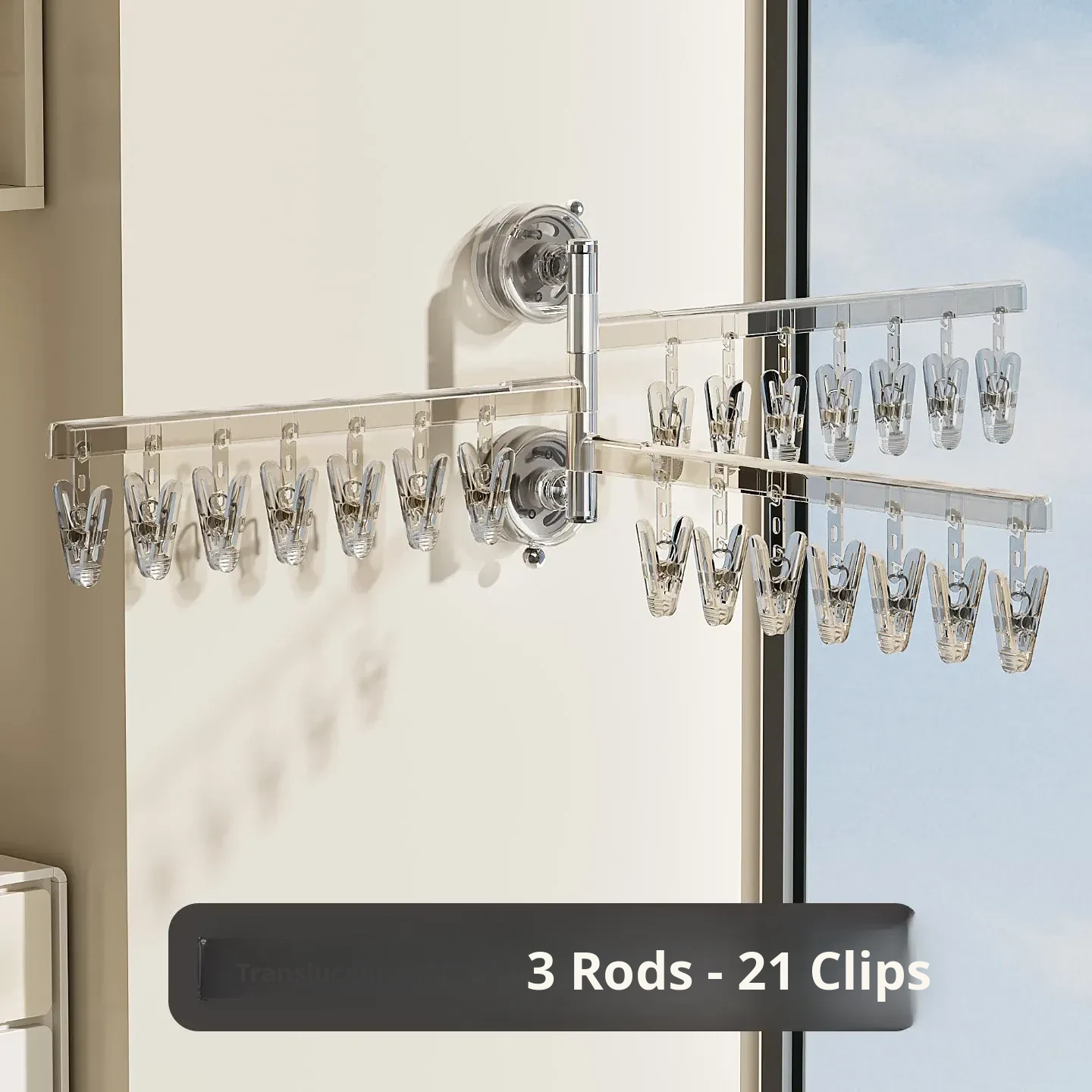 [Translucent White] Three Rods and 21 Clips✅️Available in 108°Rotating Drying