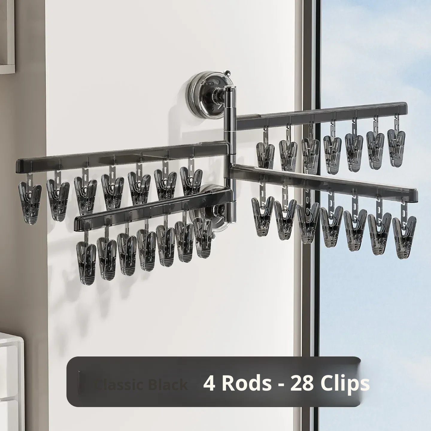 【Elegant Black】Four Poles 28 Clips❤️High-Capacity Drying Recoinended