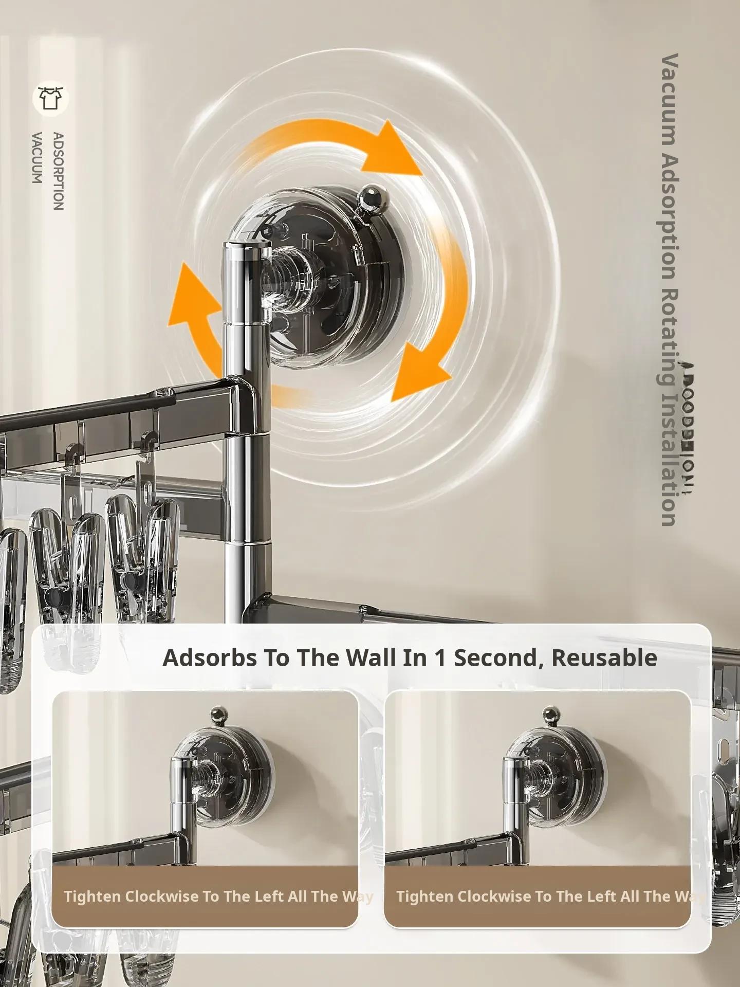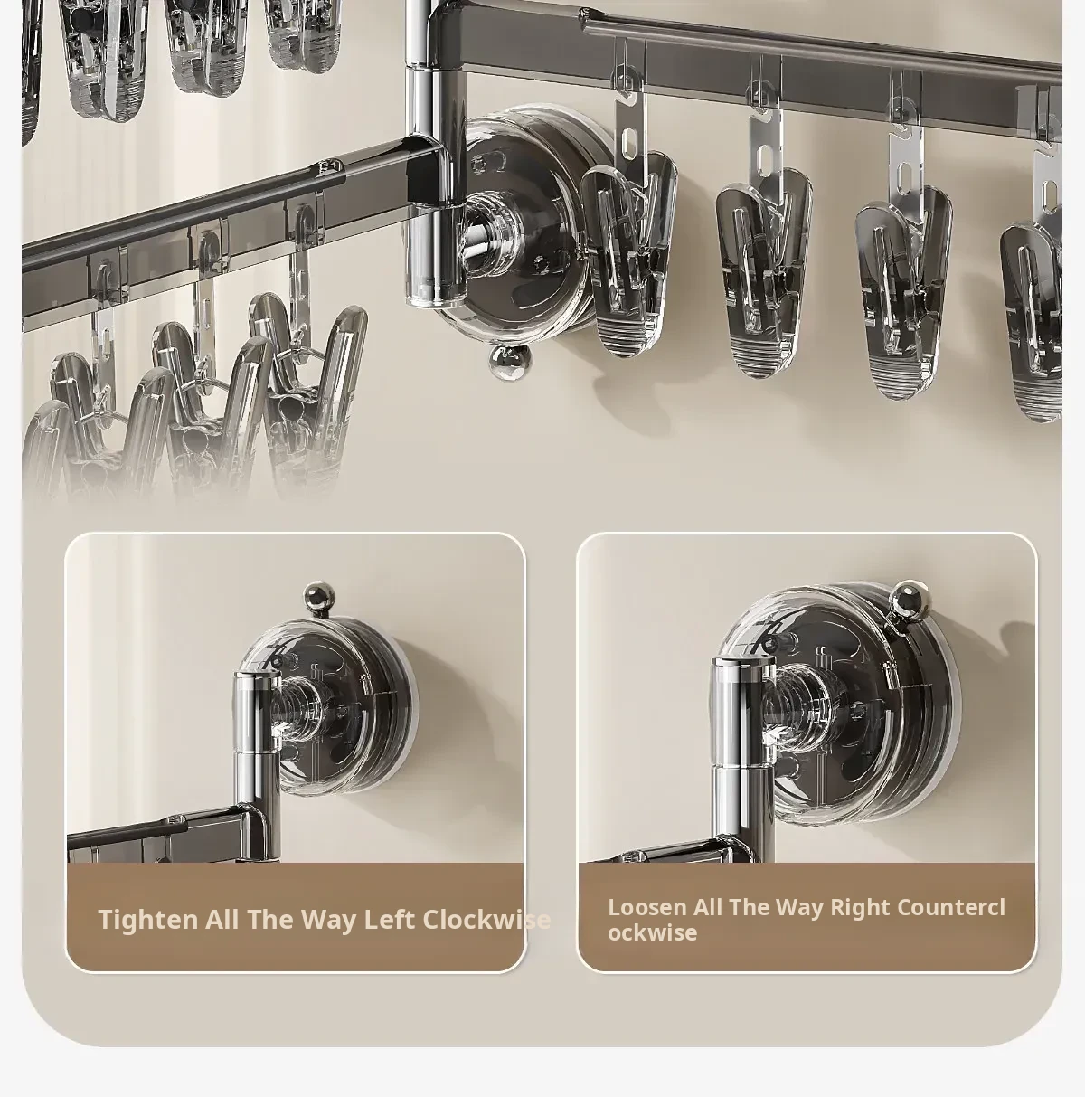 [Cream White] Three Poles and 21 Clips✅️Available in 108.°Rotating Drying