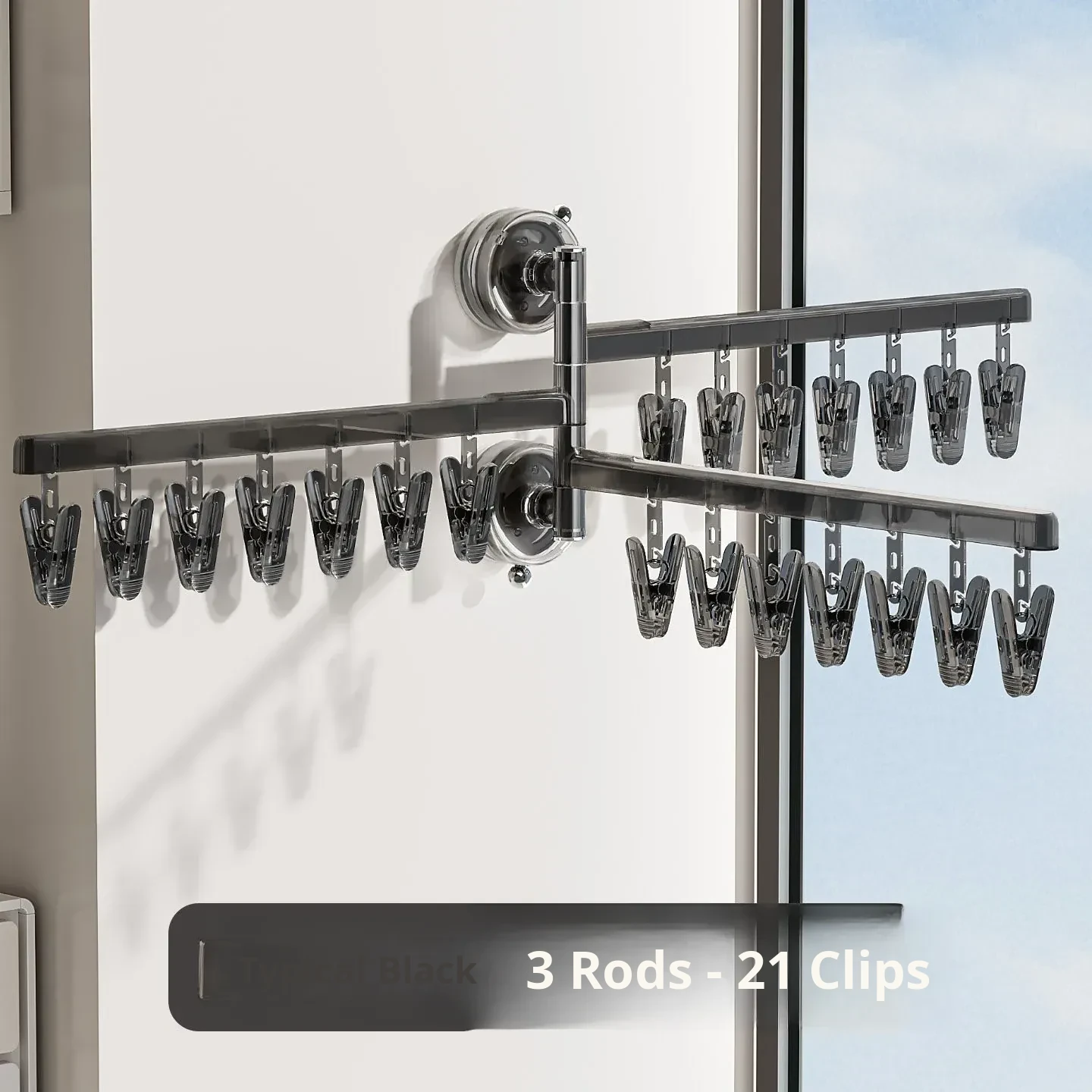 【Elegant Black】Three Poles and 21 Clips✅️Available in 108°Rotating Drying