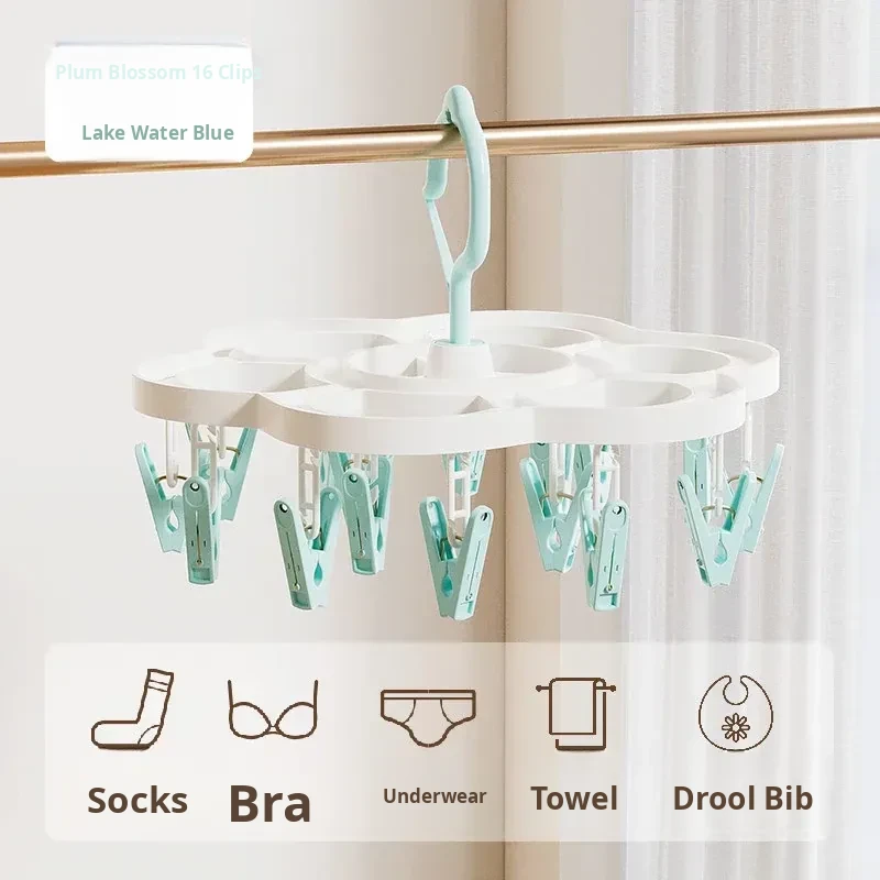 Plum Blossom Style - Teal Blue 16-Clip Hanger ⭐ Thickened and Windproof