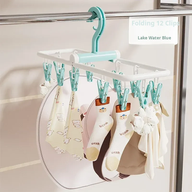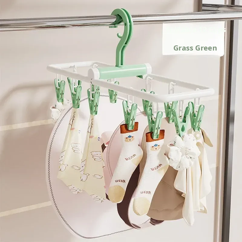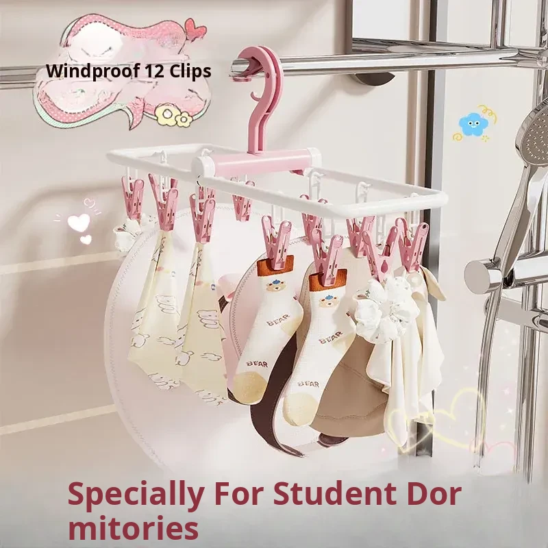"Portable Sock and Underwear Drying Rack with Clips - Perfect for Dorms! Foldable, Windproof, and Space-Saving Solution for Socks and Lingerie"
