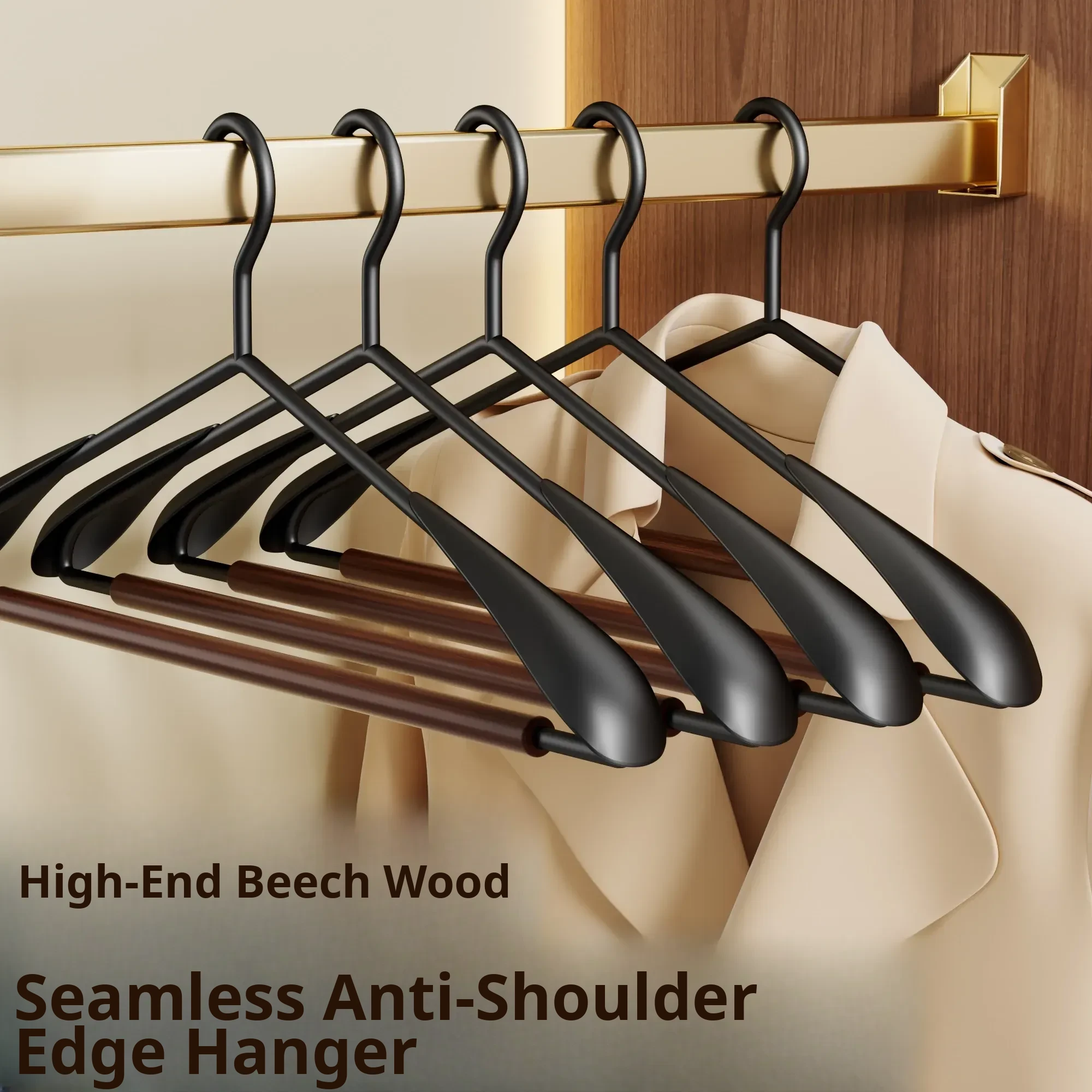 Premium Wooden Hangers for Home - Luxurious Solid Beech Wide-Shoulder Clothes Hangers, Ideal for Fashion and Hotel Use