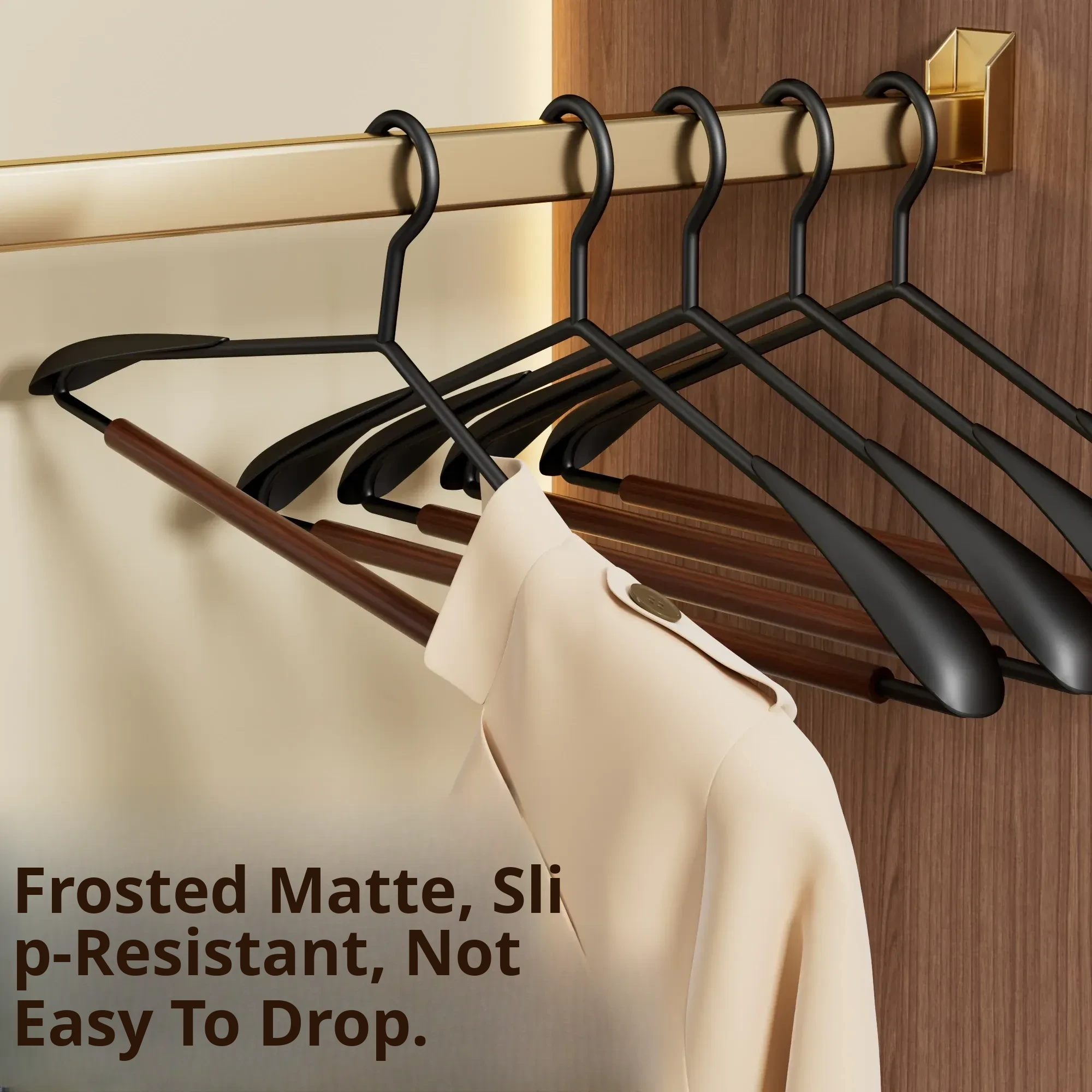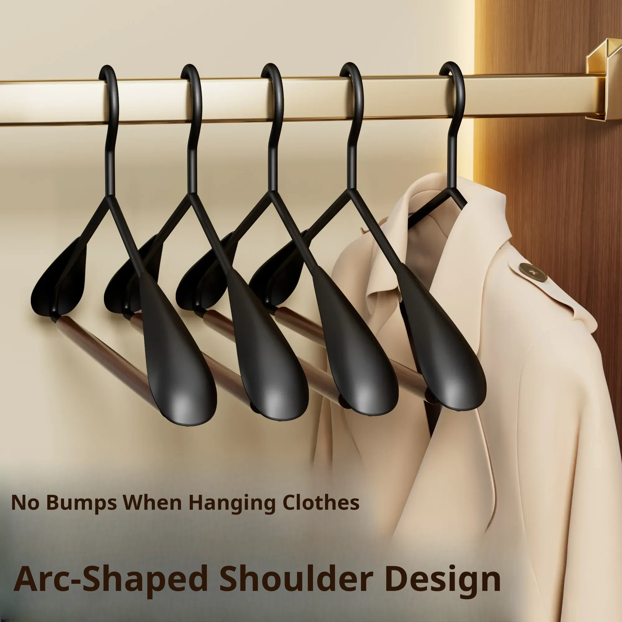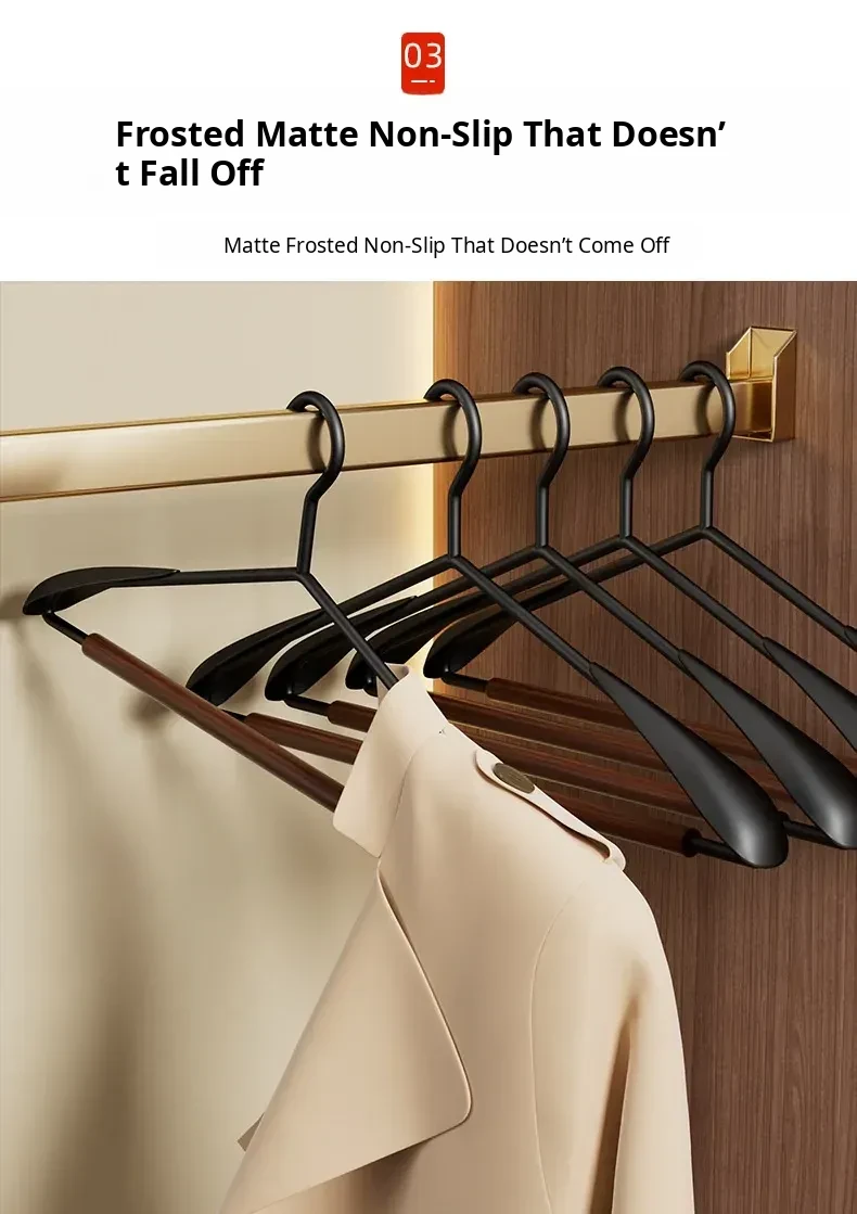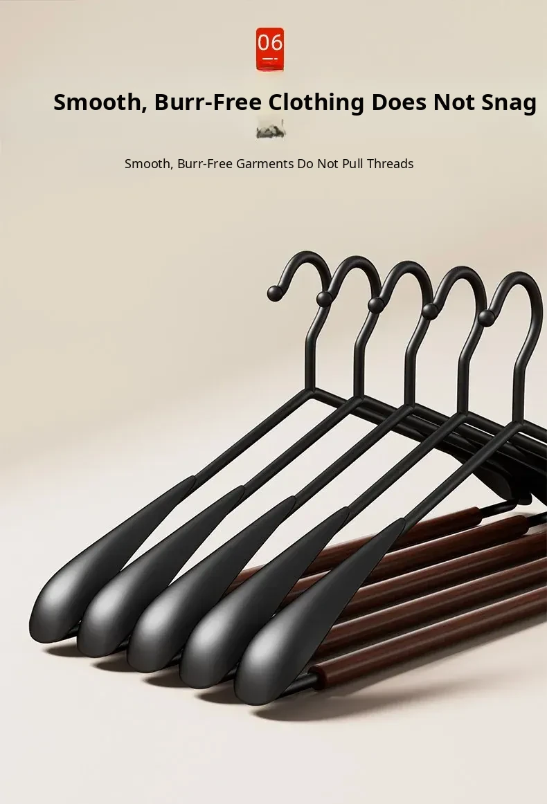 6 Pieces - Beech Iron Wide Shoulder Clothes Hanger [Light Luxury Walnut Color]