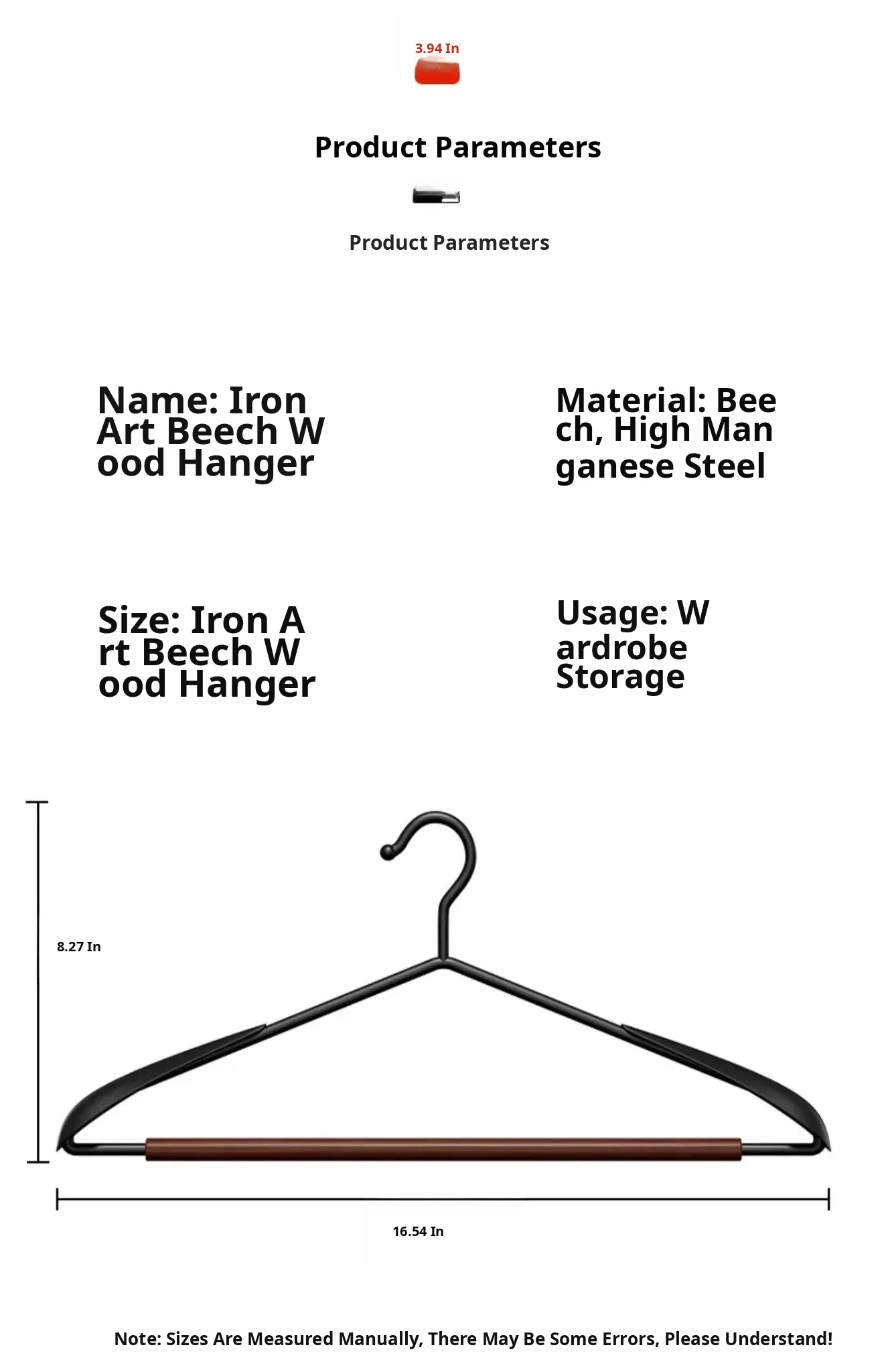 18 Pieces - Beech Iron Wide Shoulder Clothes Hanger [Light Luxury Walnut Color]