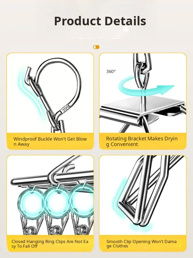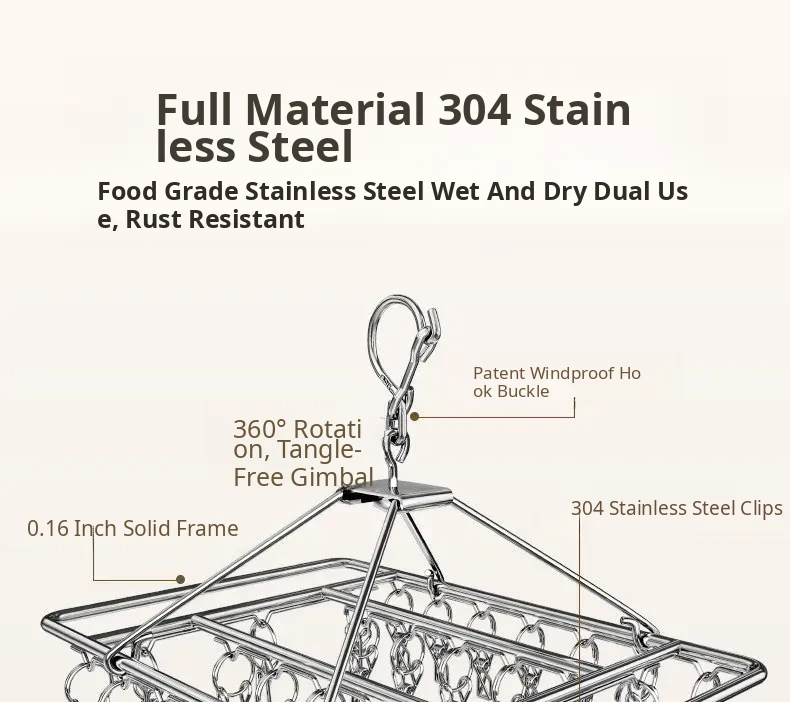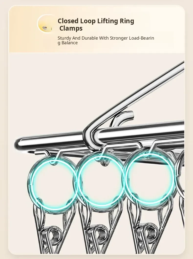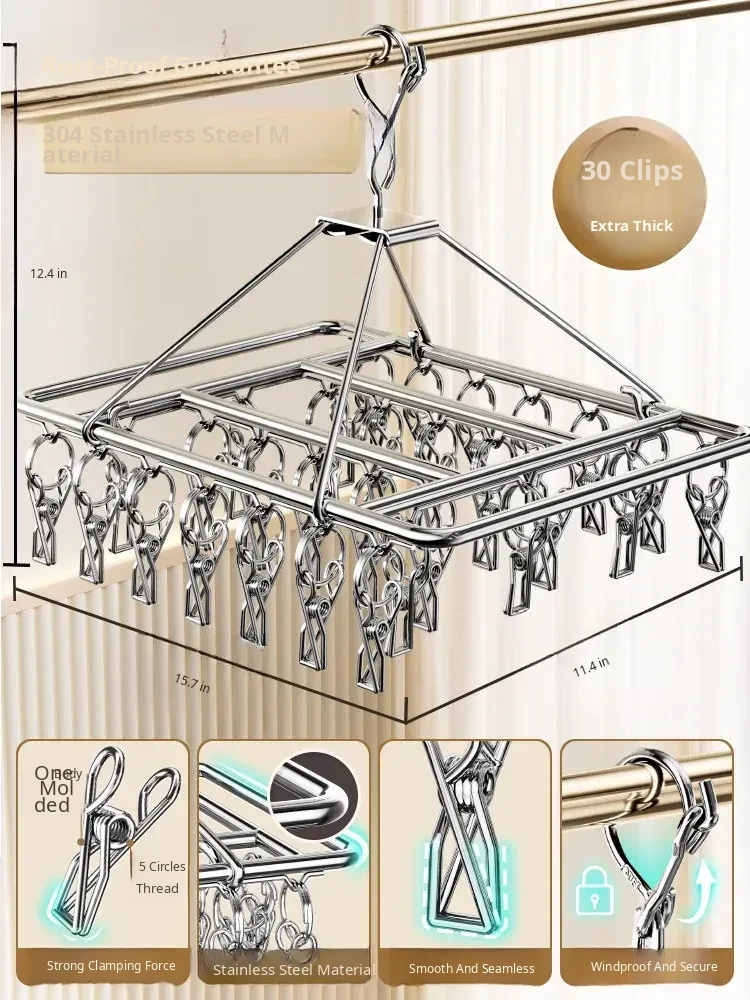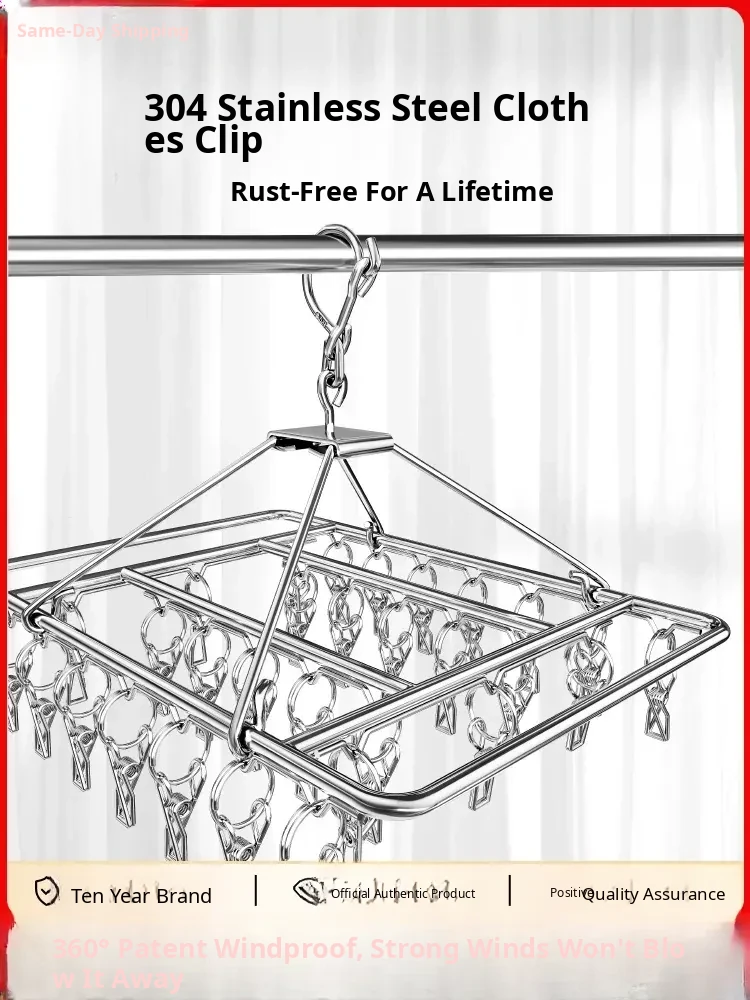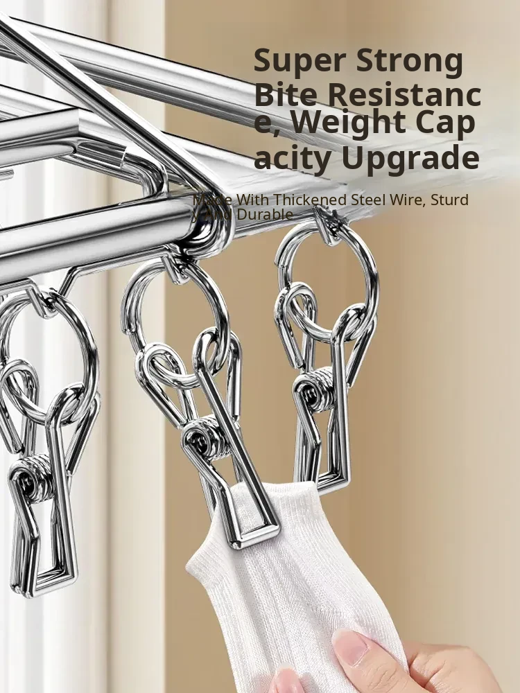 Stainless Steel 304 Multi-Clip Clothes Drying Rack - Windproof Hooks for Home, Heavy-Duty and Versatile Sock Drying Solution!