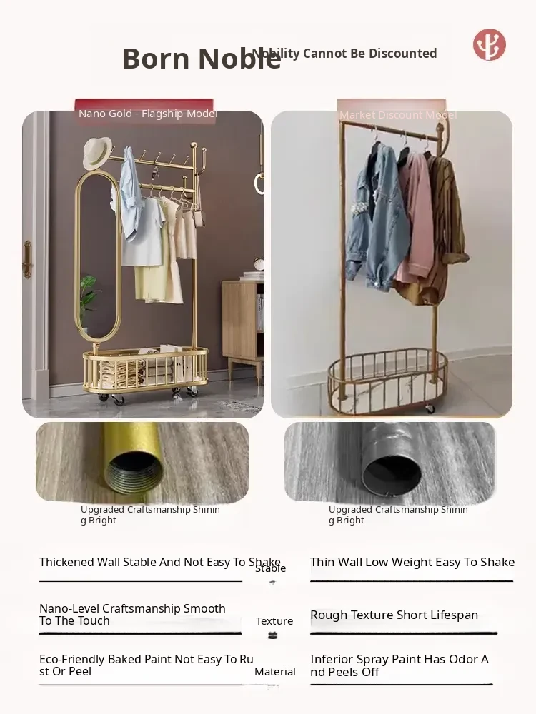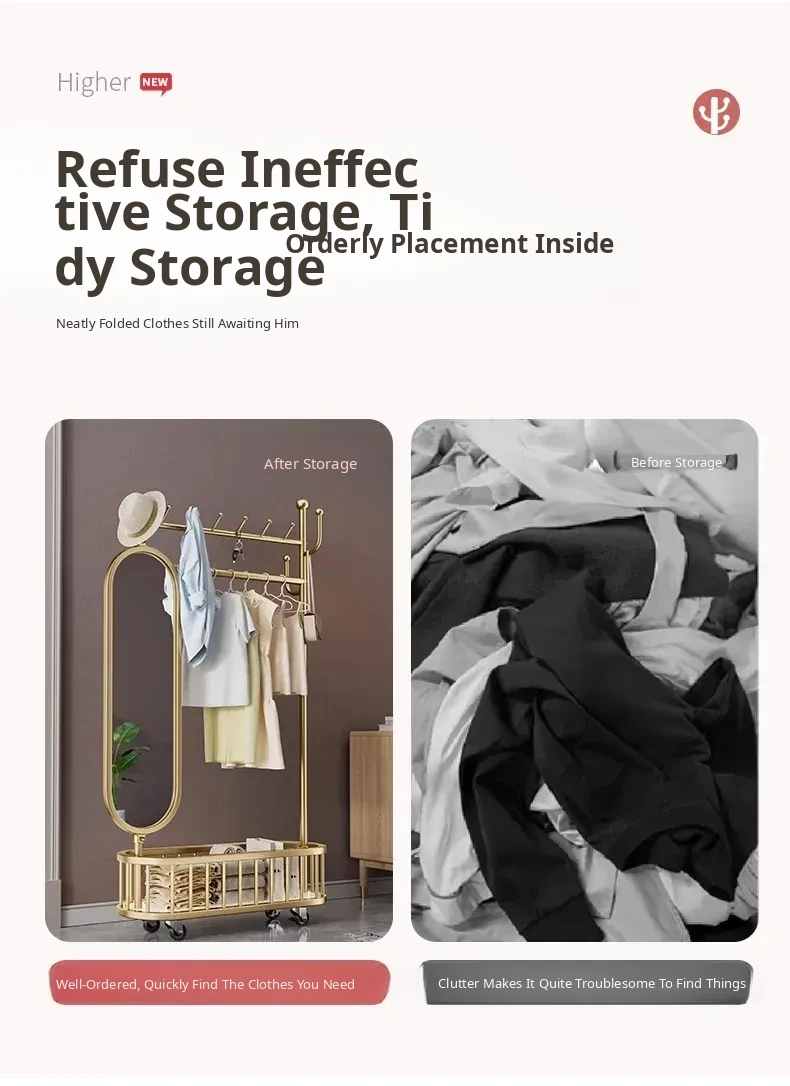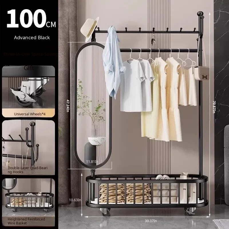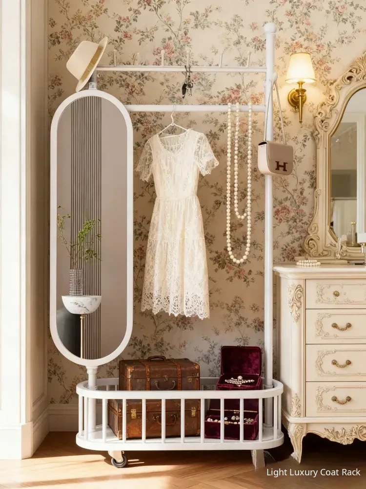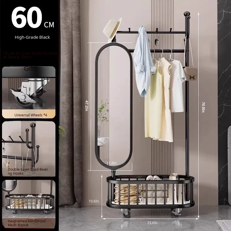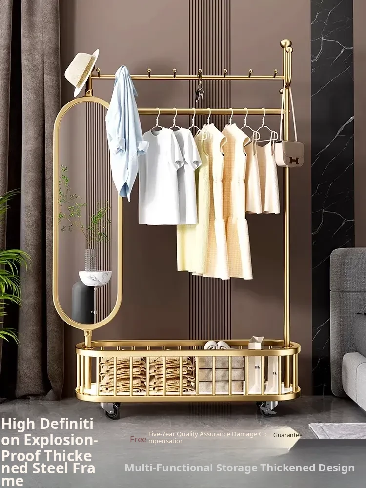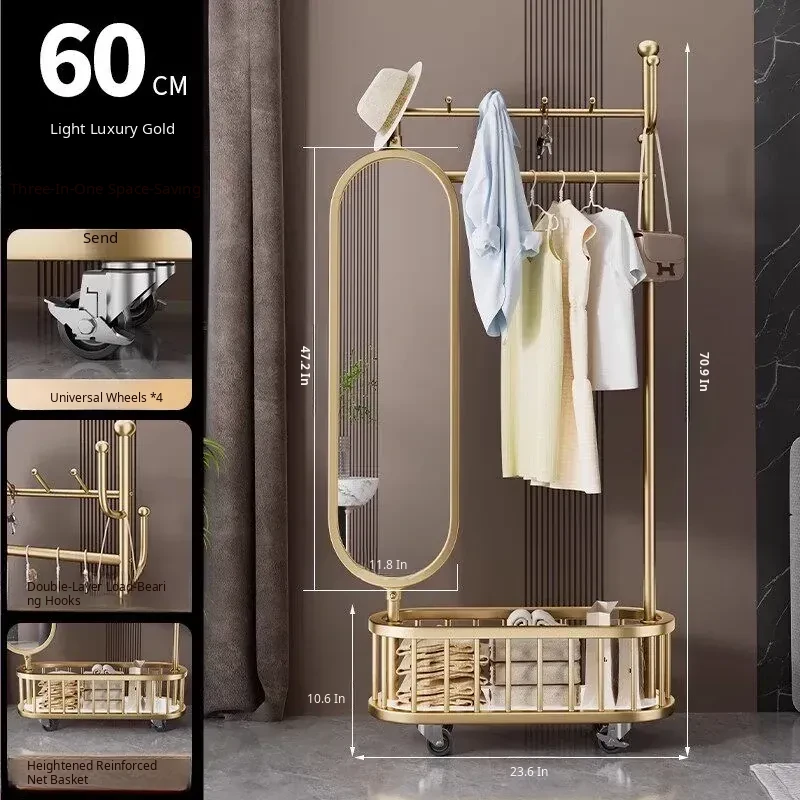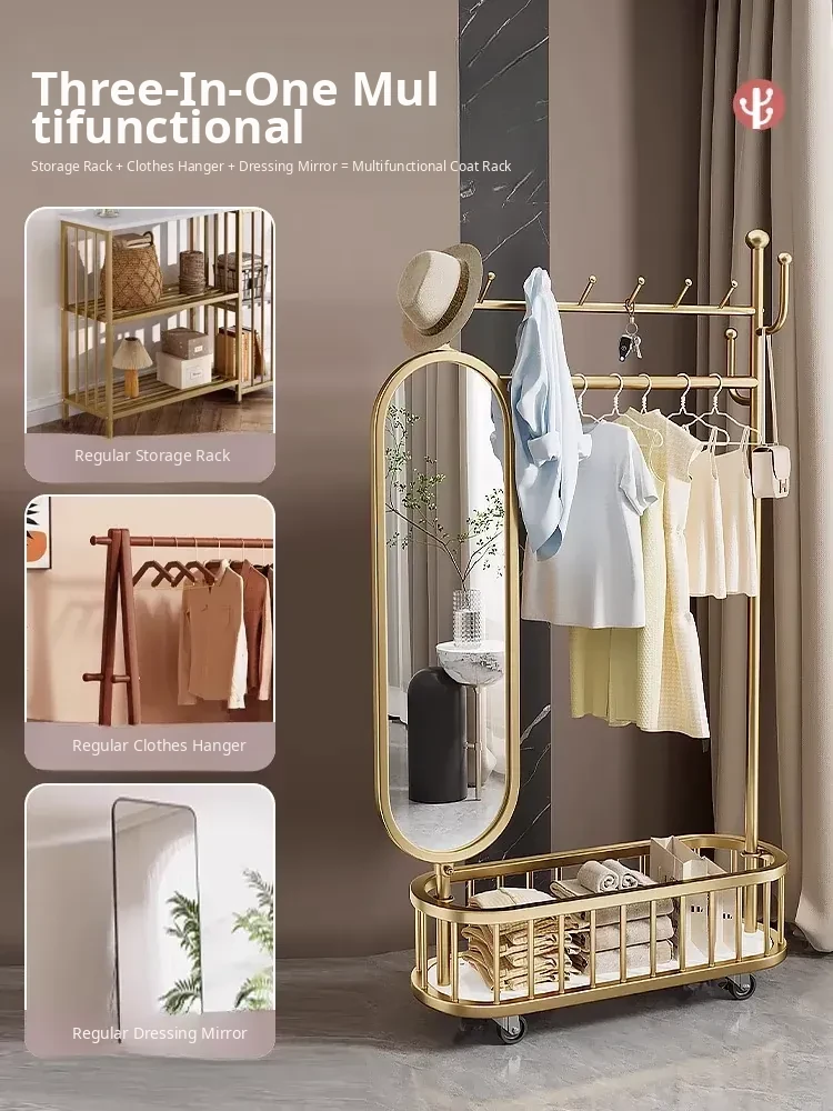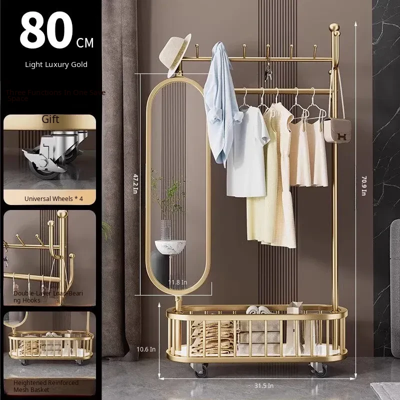 Stylish Rotating Clothing Rack and Mirror - Multi-Functional Luxury Floor Stand for Bedroom, Perfect for Organizing Clothes and Accessories