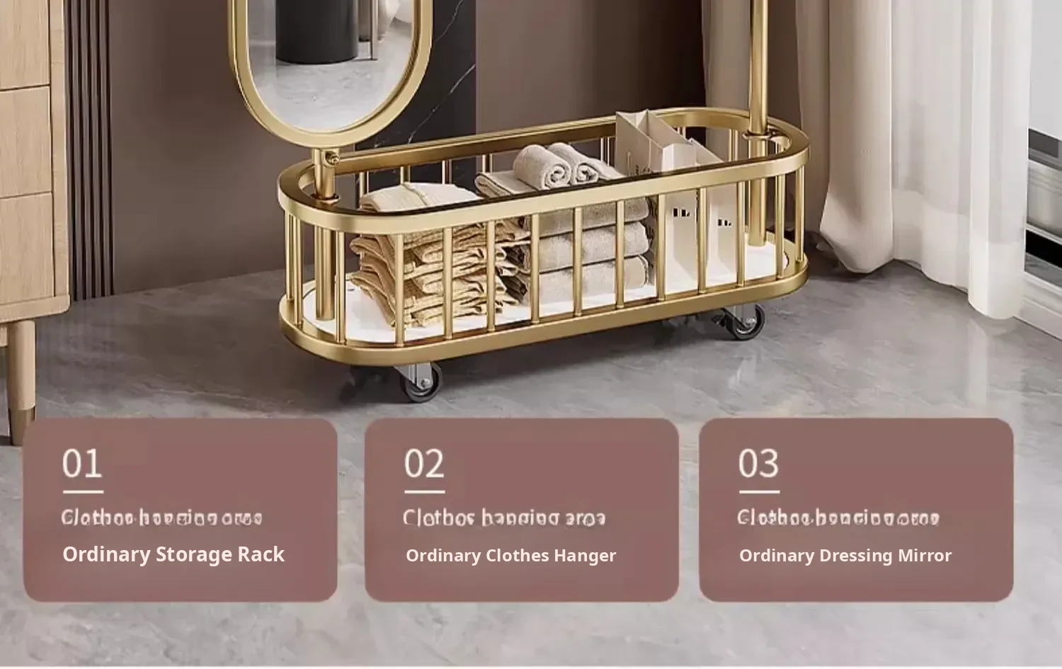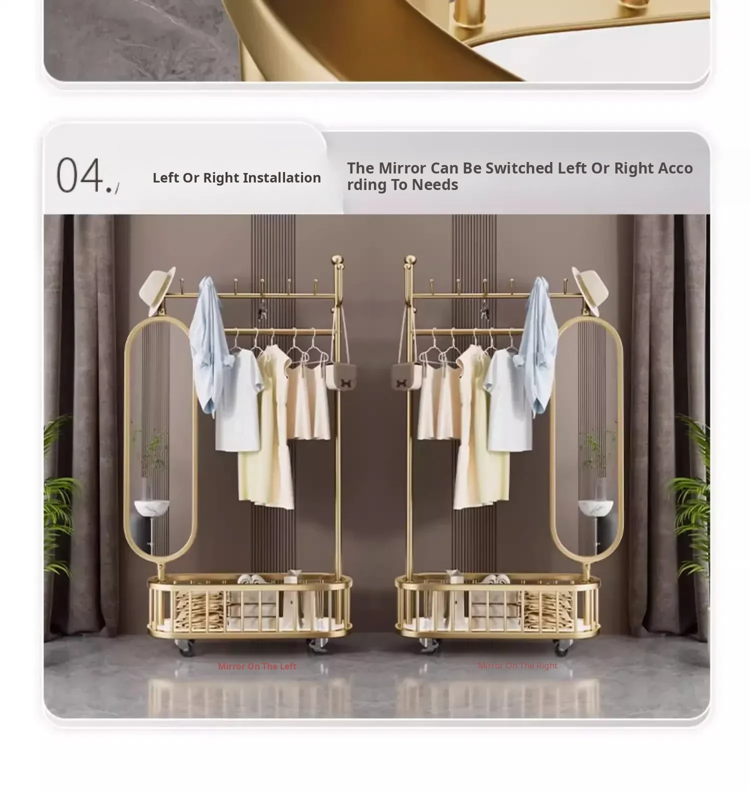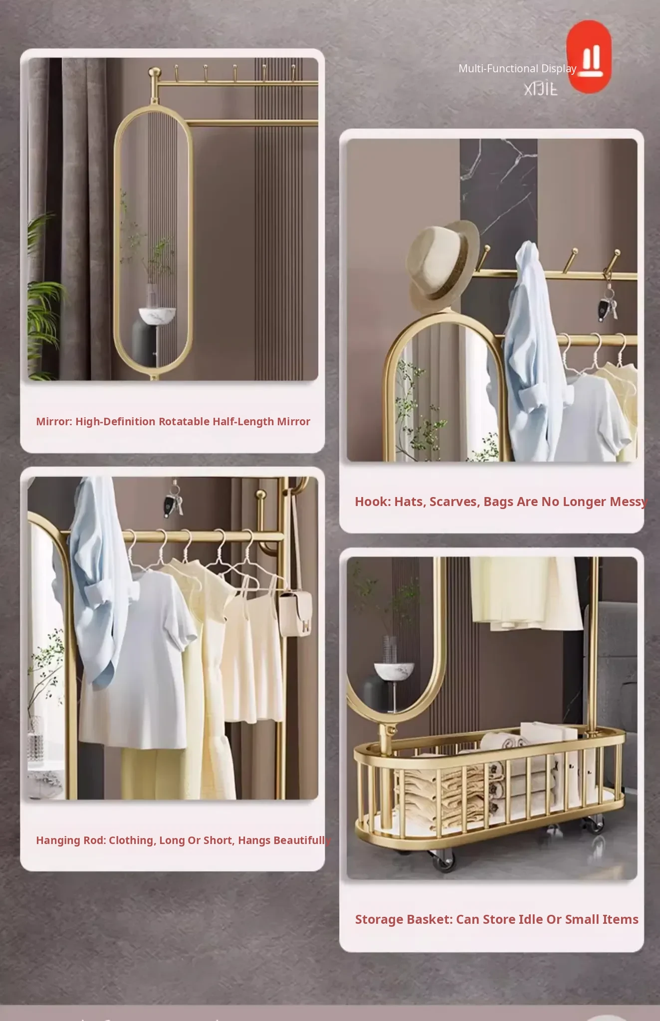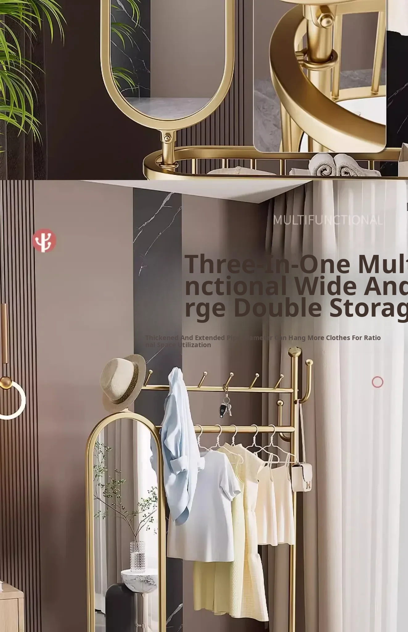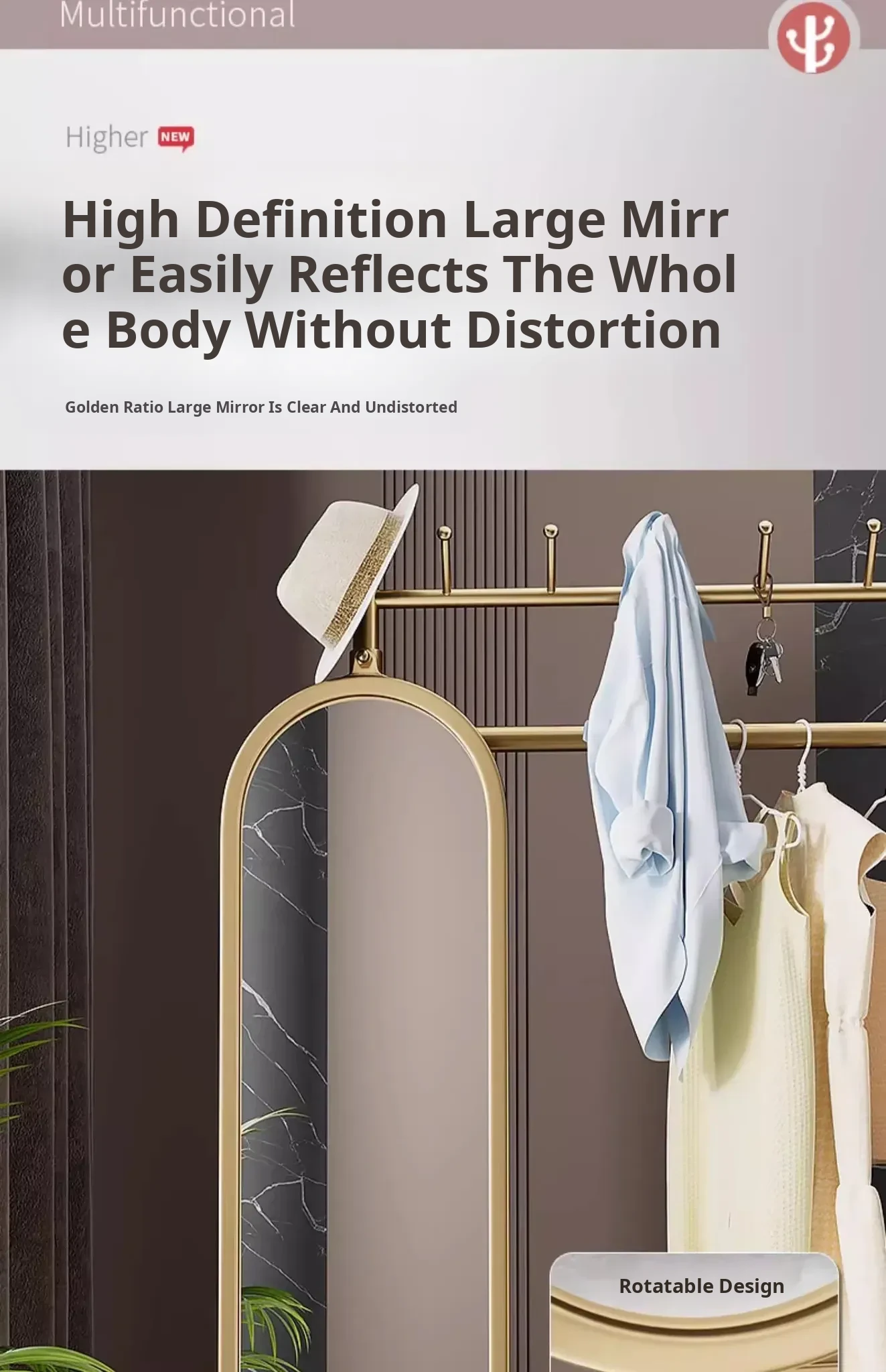 Stylish Rotating Clothing Rack and Mirror - Multi-Functional Luxury Floor Stand for Bedroom, Perfect for Organizing Clothes and Accessories