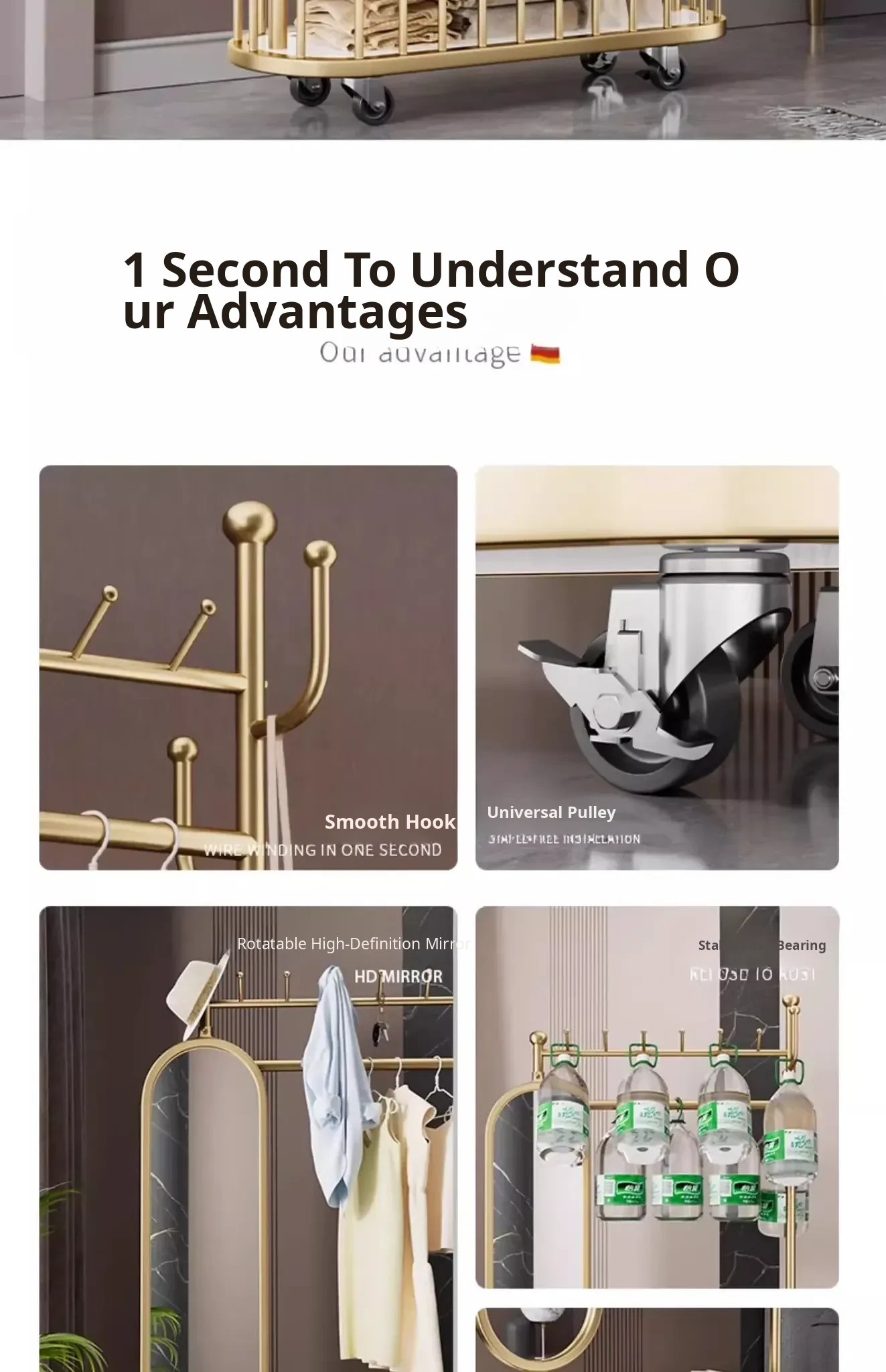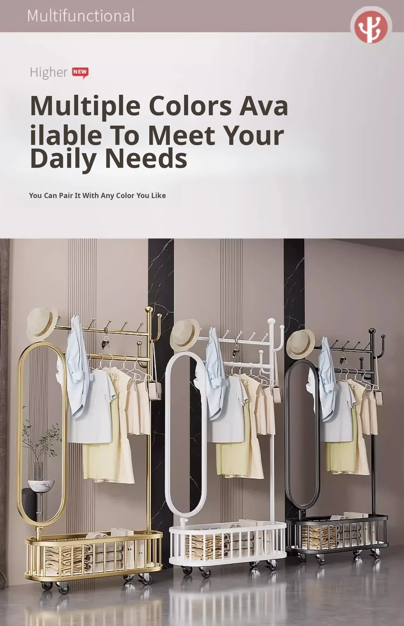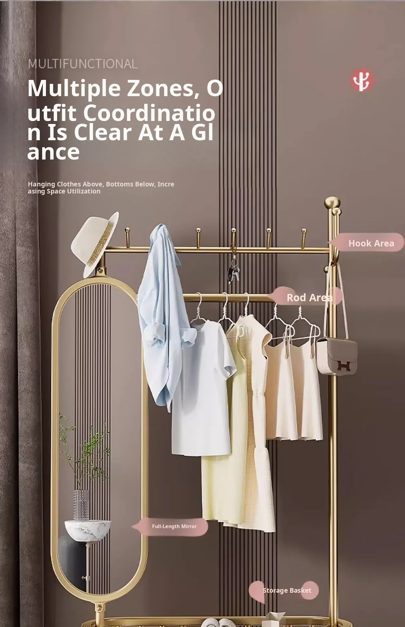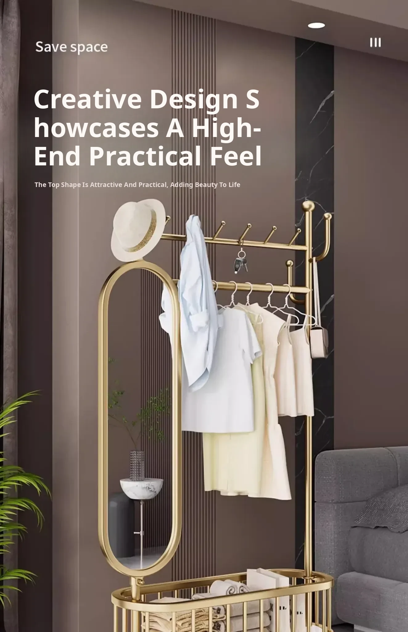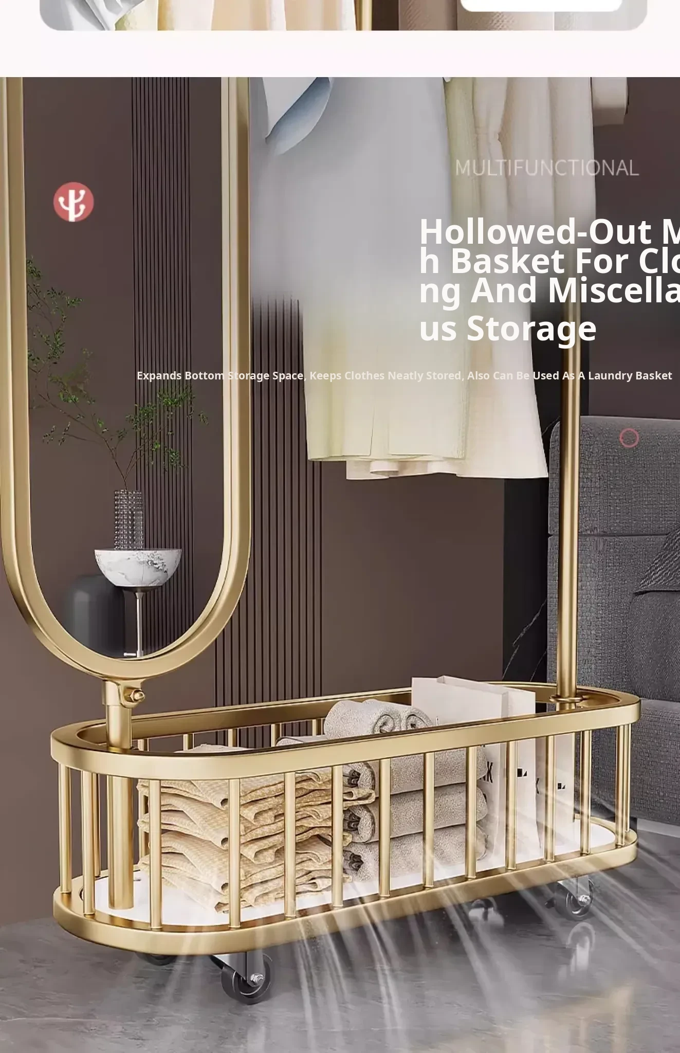 Stylish Rotating Clothing Rack and Mirror - Multi-Functional Luxury Floor Stand for Bedroom, Perfect for Organizing Clothes and Accessories
