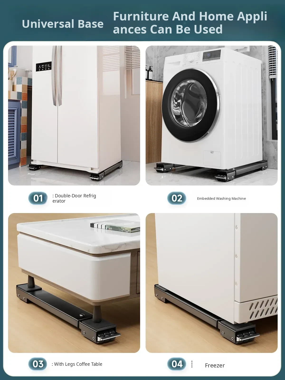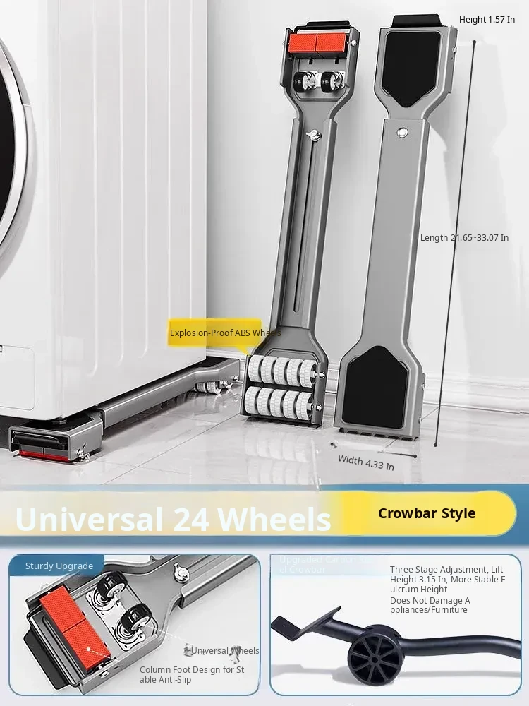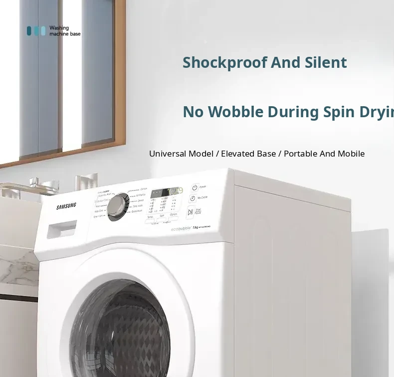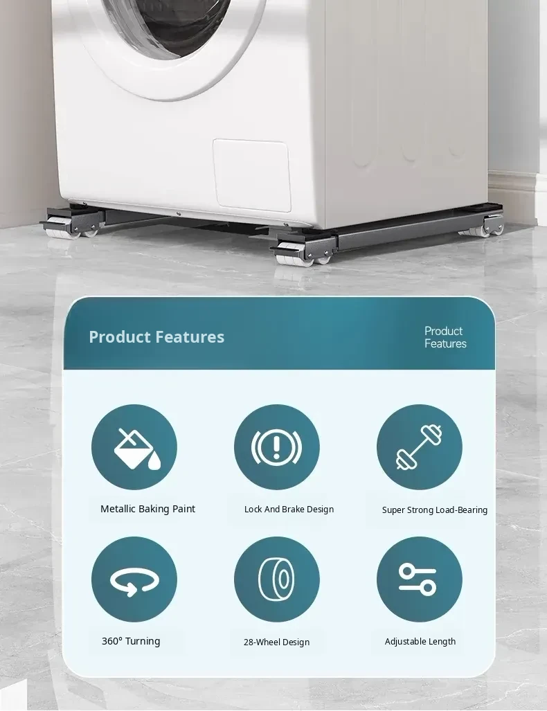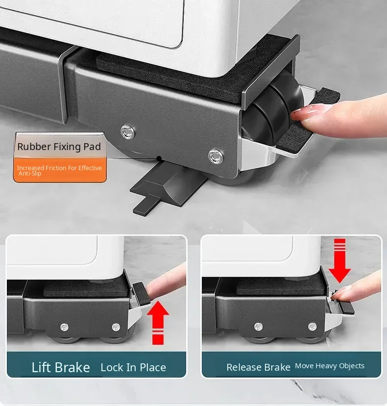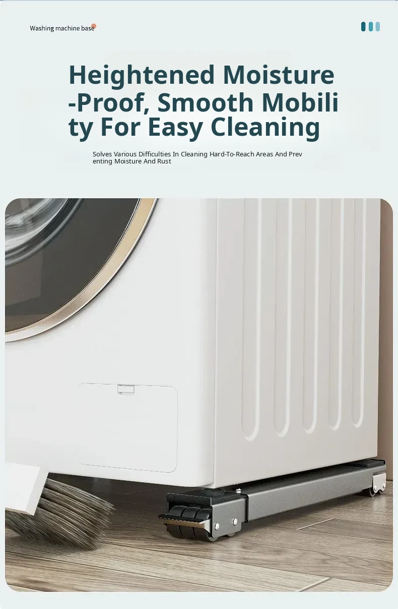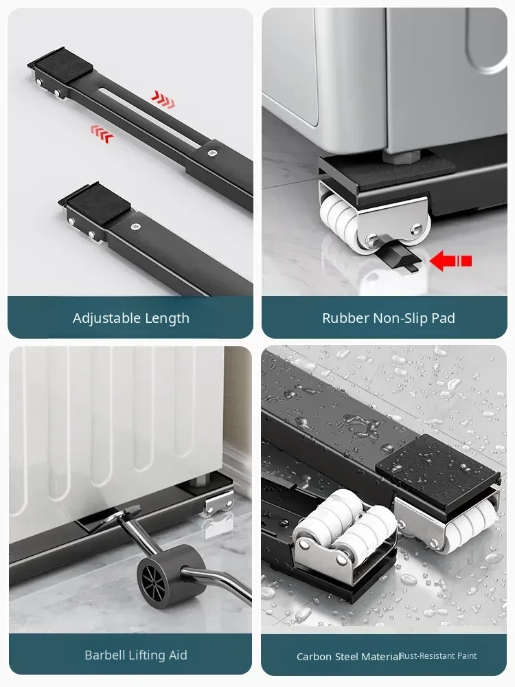 Universal Mobile Washing Machine Base with Swivel Wheels - Adjustable Sturdy Rack with Shock Absorbing Pads for Refrigerators and Drum Washers, Perfect for Easy Mobility and Stability.