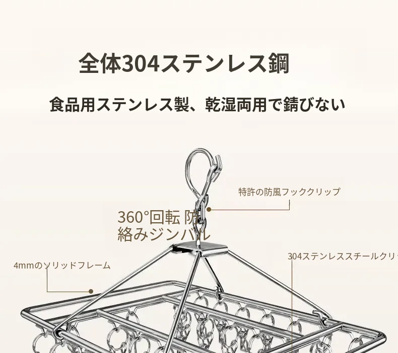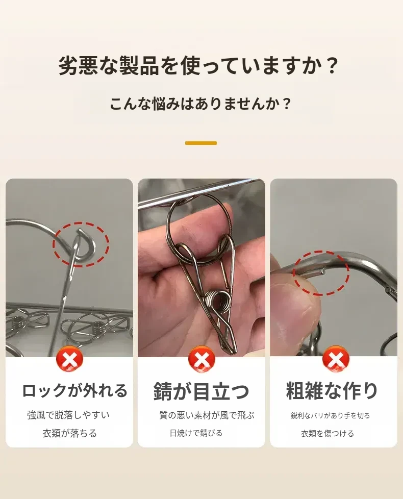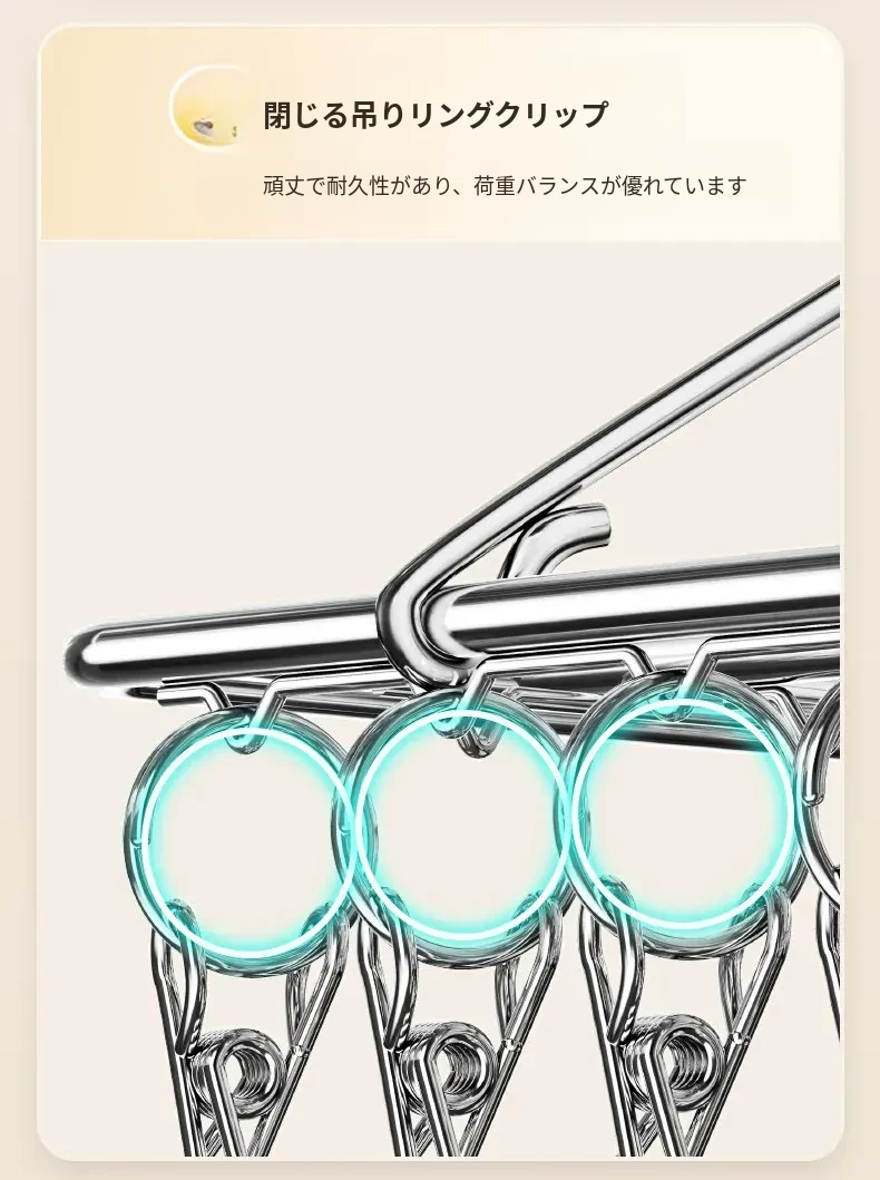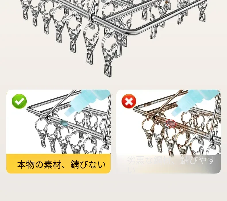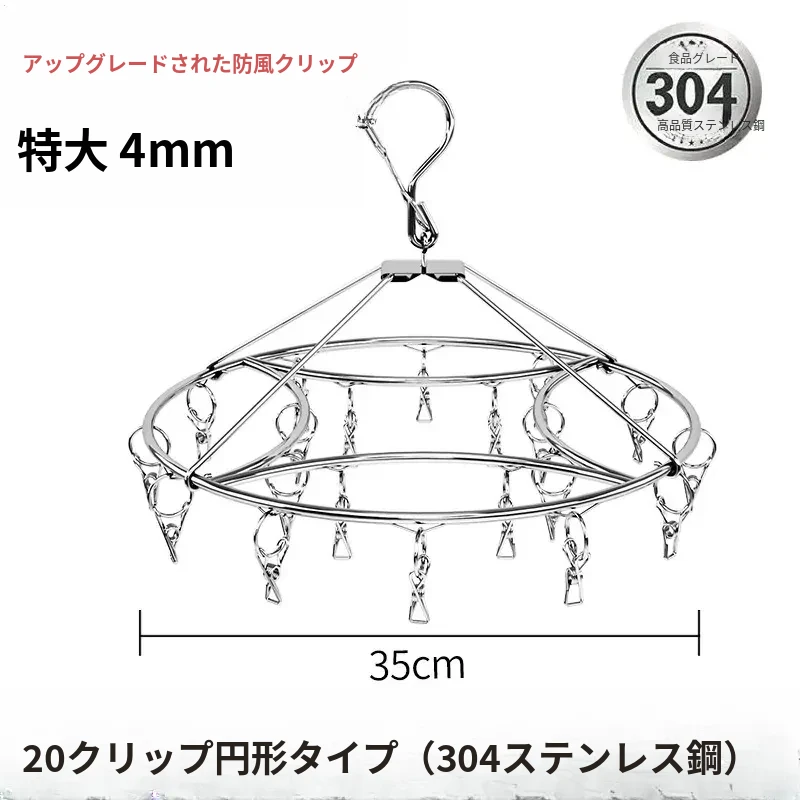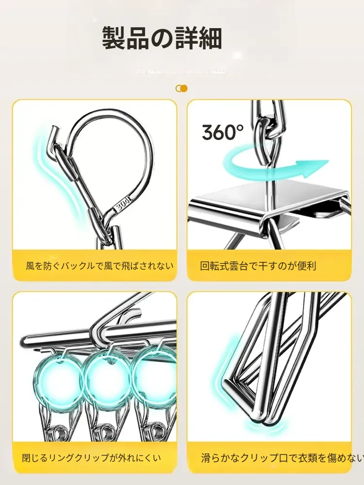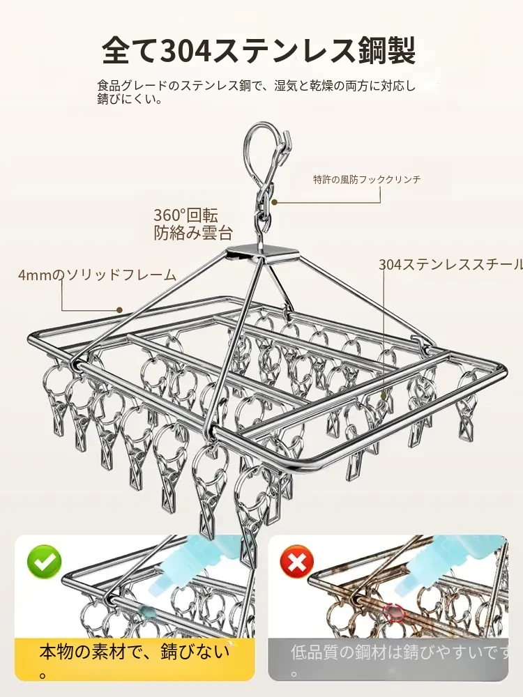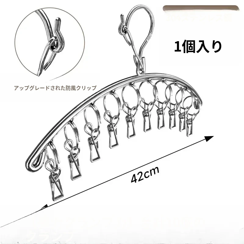 304ステンレス製 多機能クリップハンガー 風に強い衣類干しフック 家庭用 赤ちゃん用 ソックスも干せる便利アイテム!