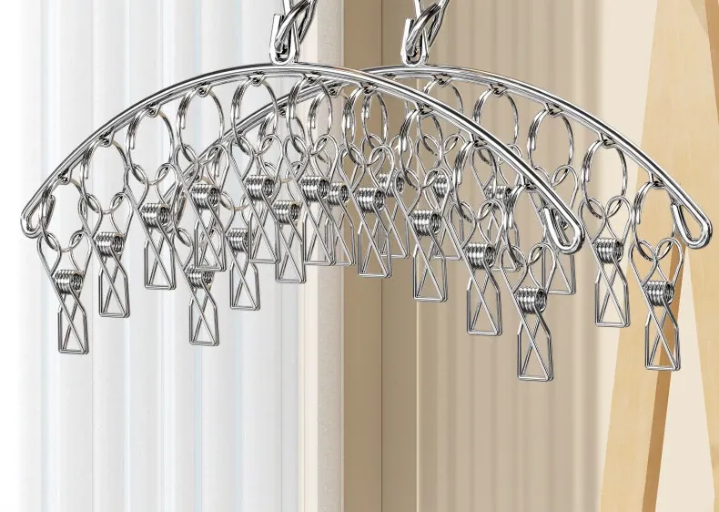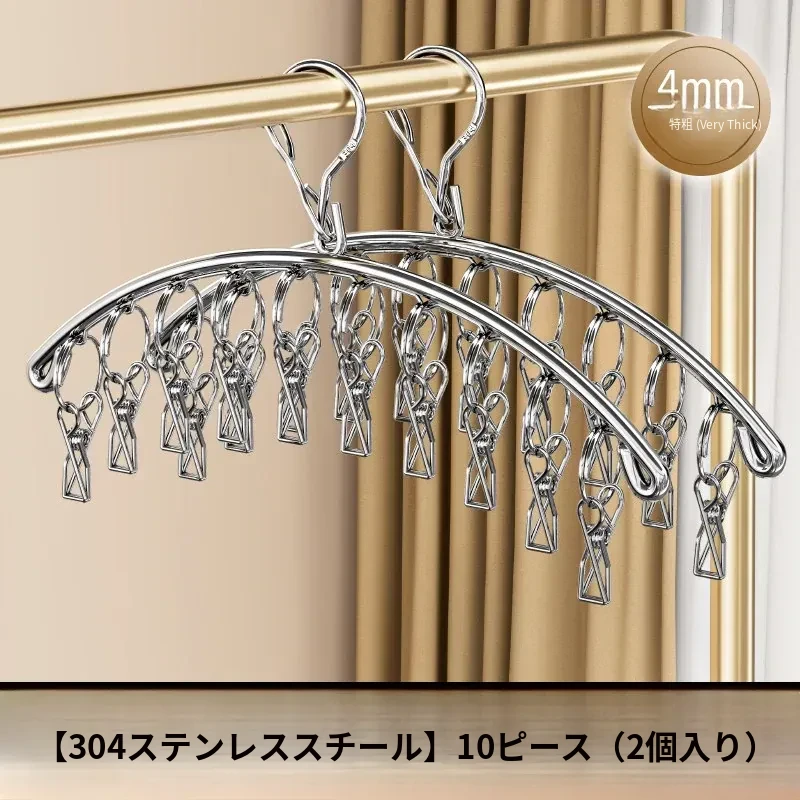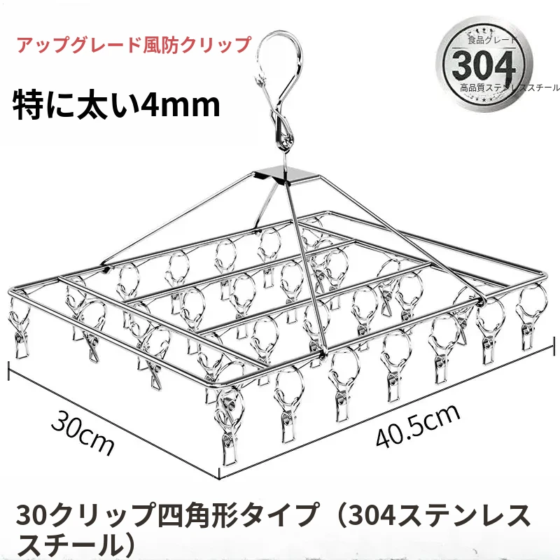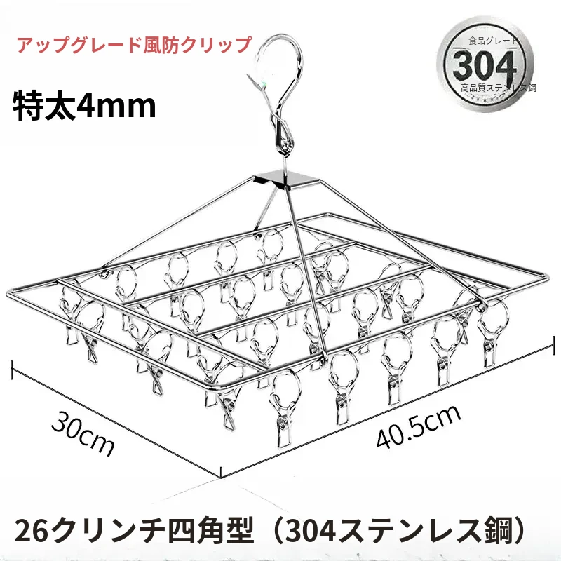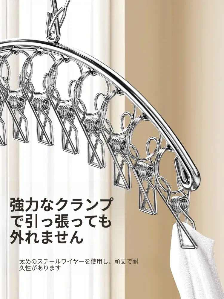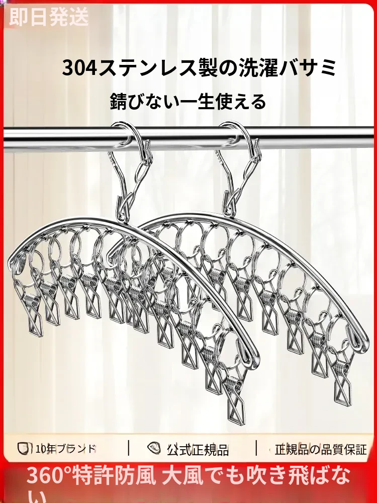 304ステンレス製多クリップ靴下干しラック - 風に強く、太めの靴下クリップで家族全員の靴下をしっかりホールド!バルコニーでの多機能靴下乾燥神器!収納も簡単で、毎日の洗濯が楽しくなるアイテムです。