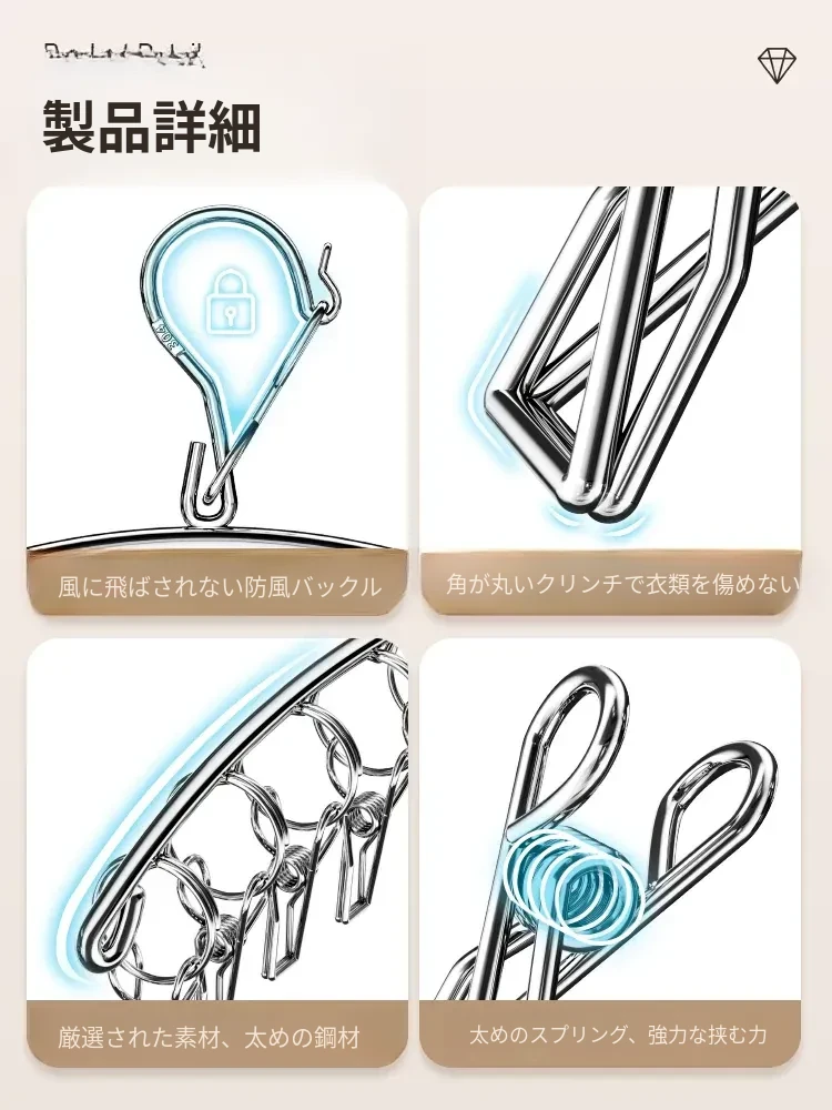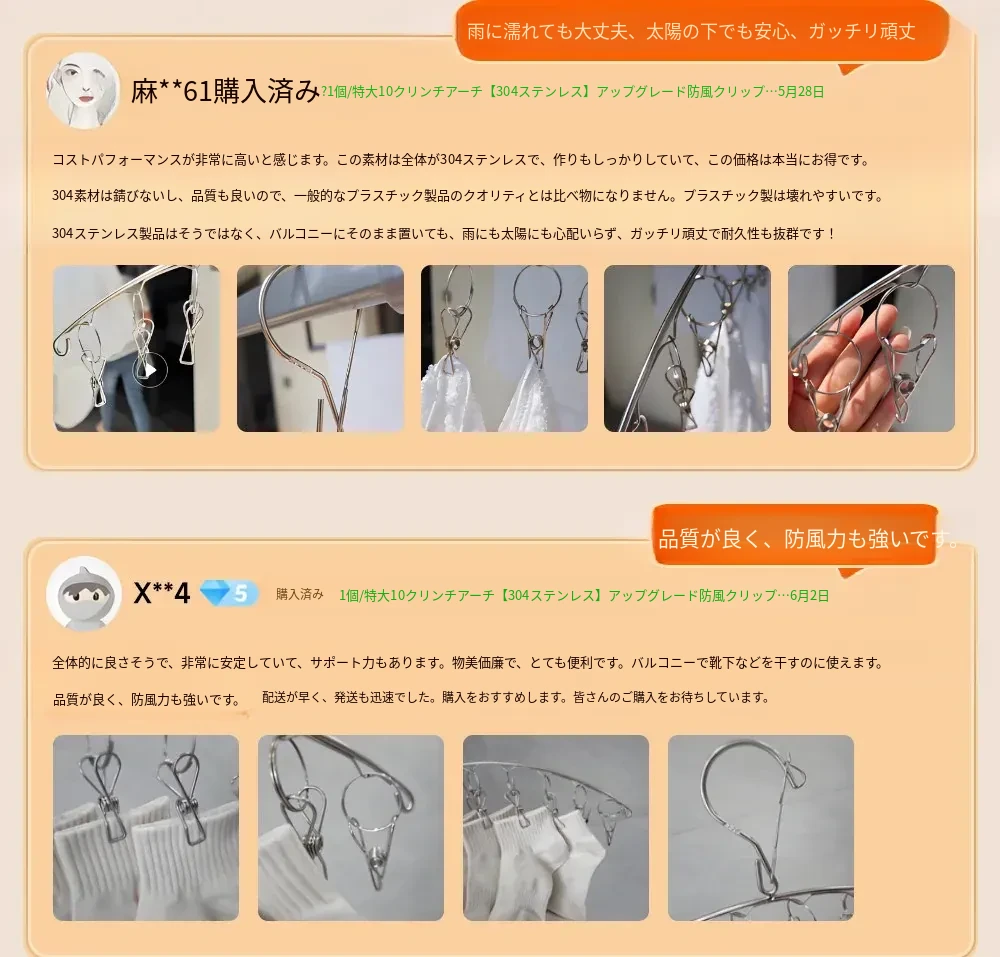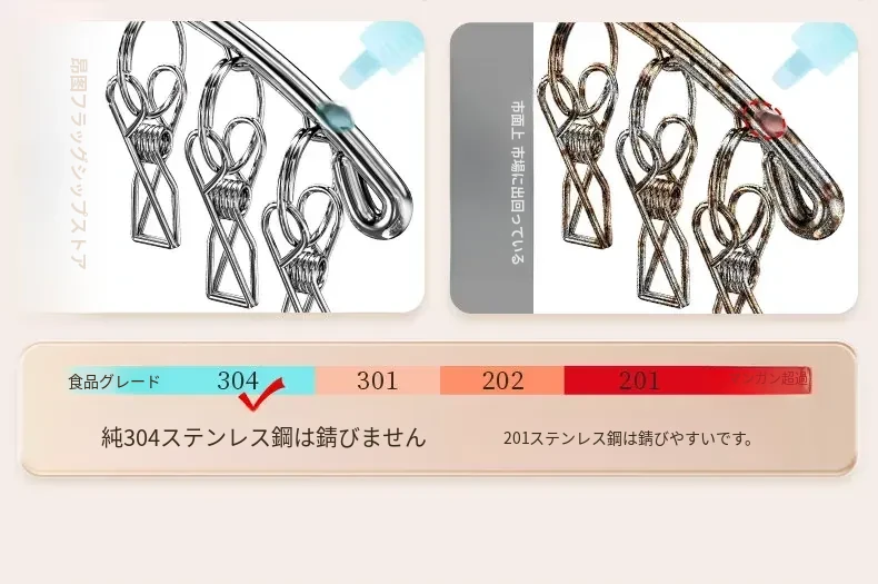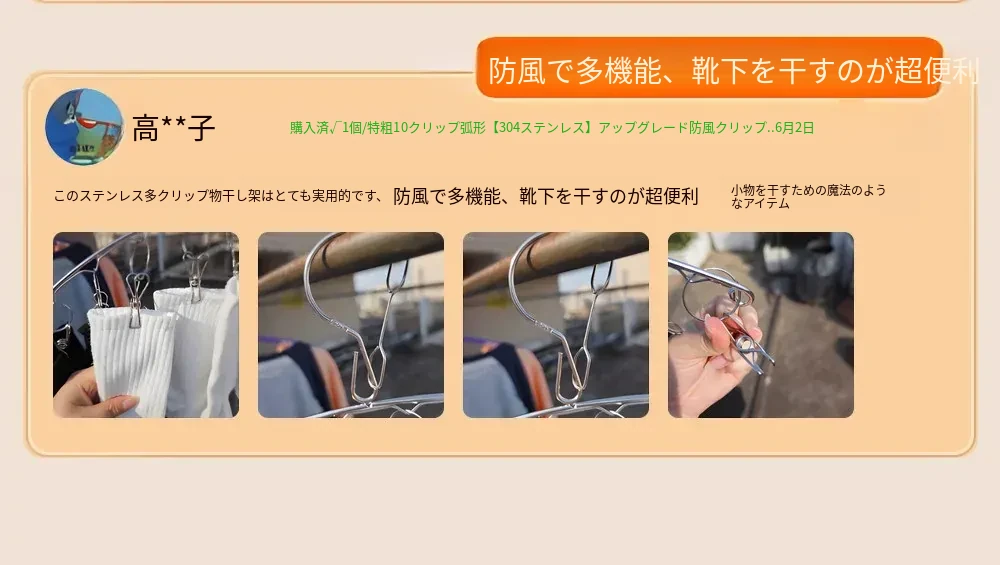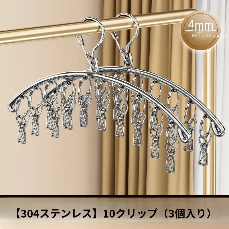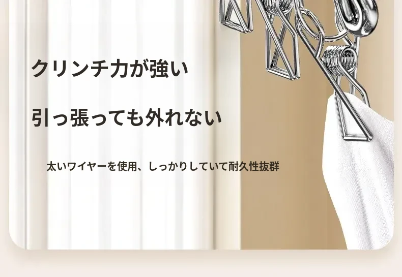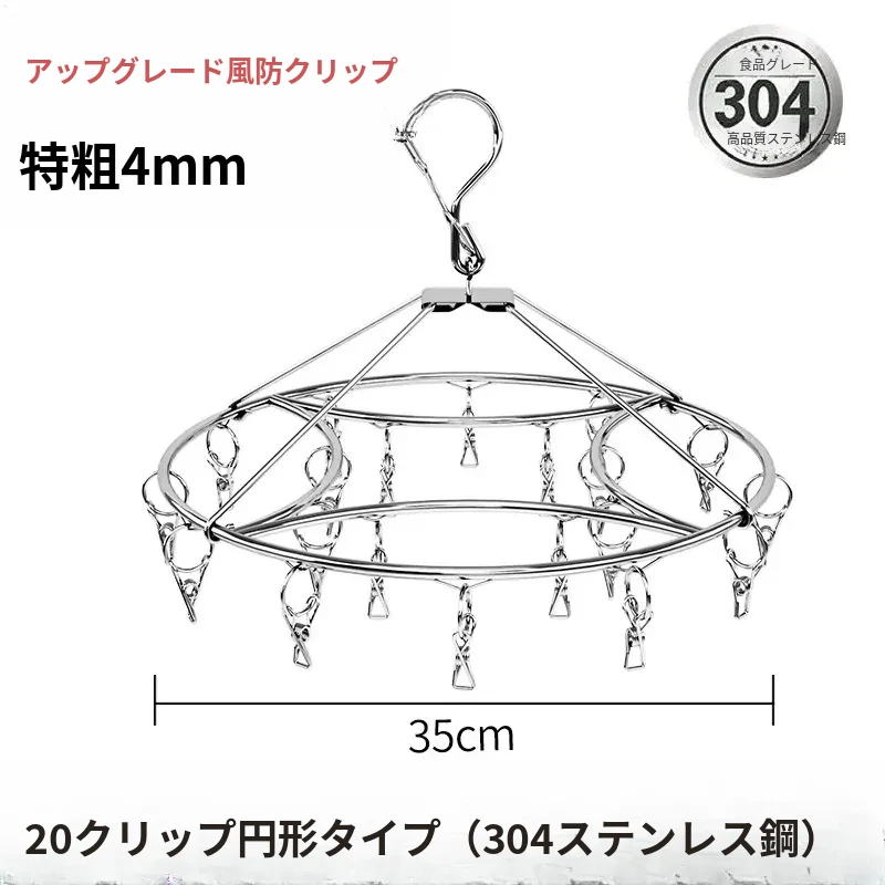 304ステンレス製多クリップ靴下干しラック - 風に強く、太めの靴下クリップで家族全員の靴下をしっかりホールド!バルコニーでの多機能靴下乾燥神器!収納も簡単で、毎日の洗濯が楽しくなるアイテムです。