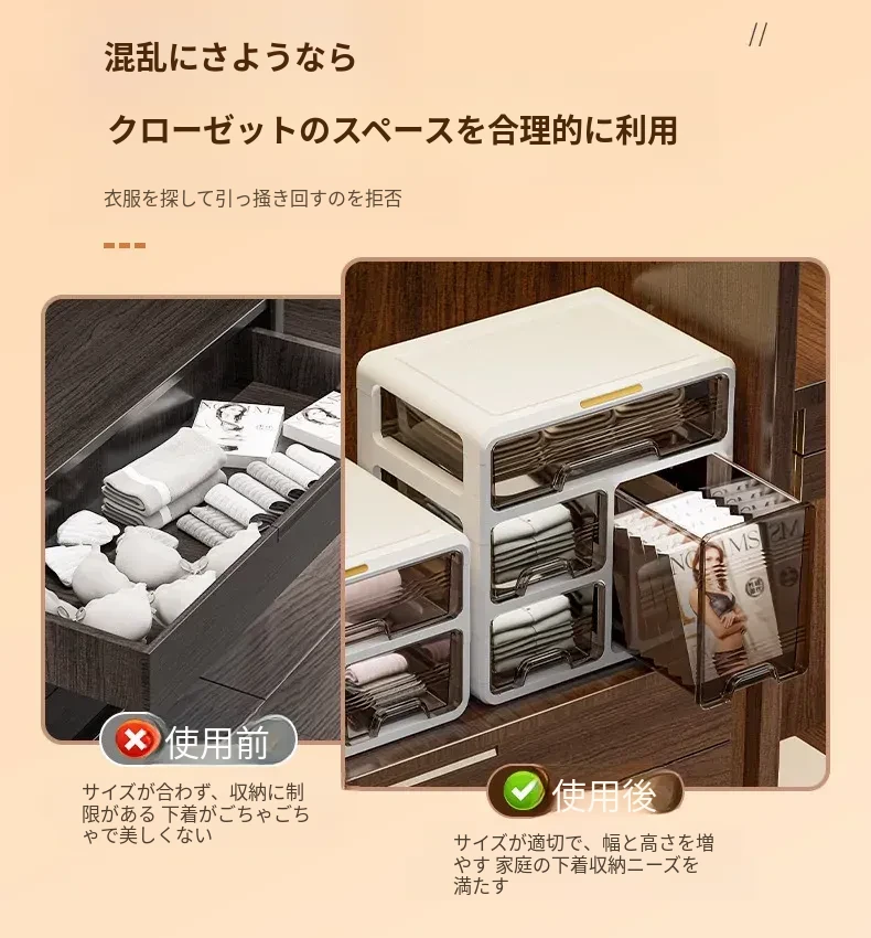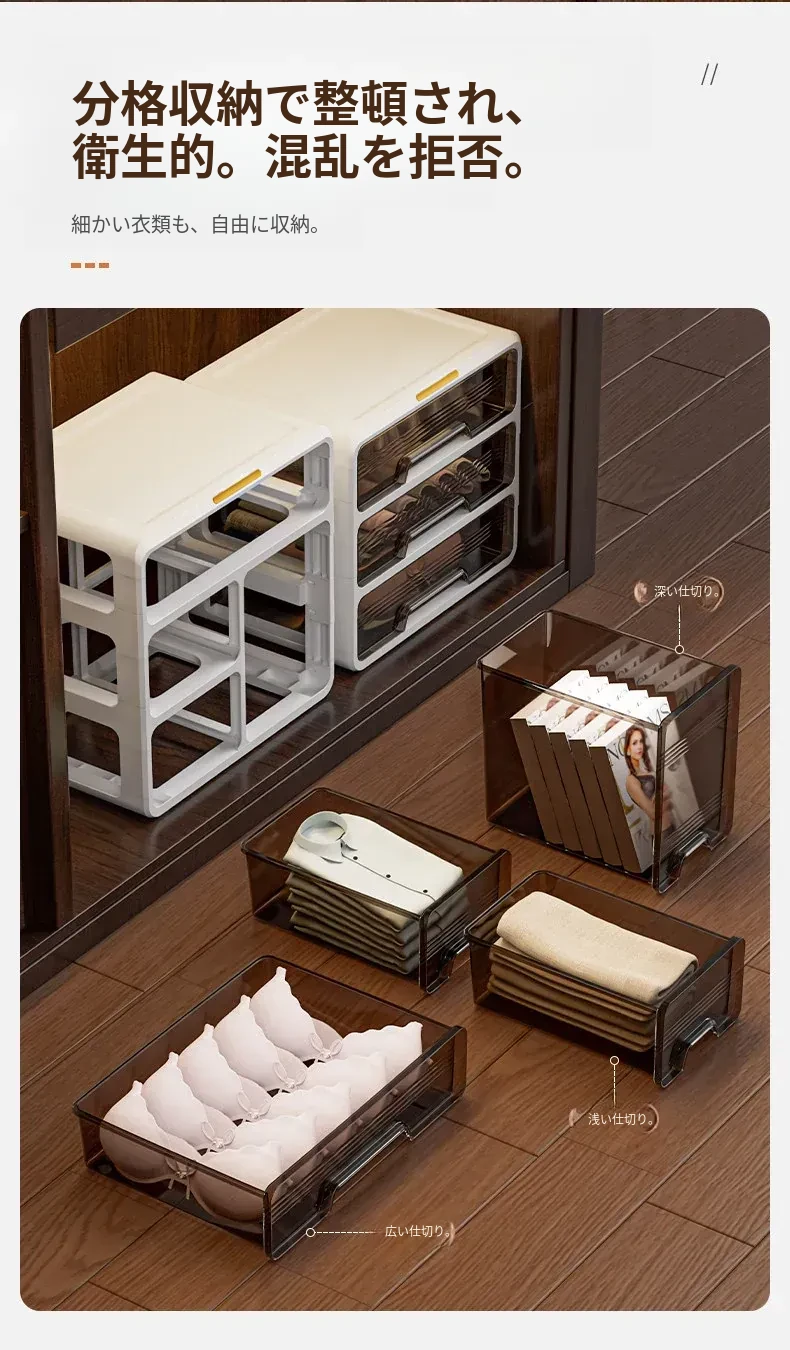下着収納ボックス 3in1靴下・パンティ用引き出し整理ボックス 整理整頓に最適な家庭用便利アイテム!あなたの衣類をすっきりと美しく収納します。