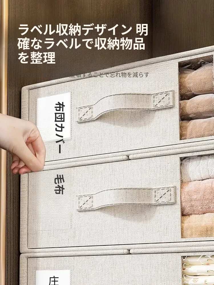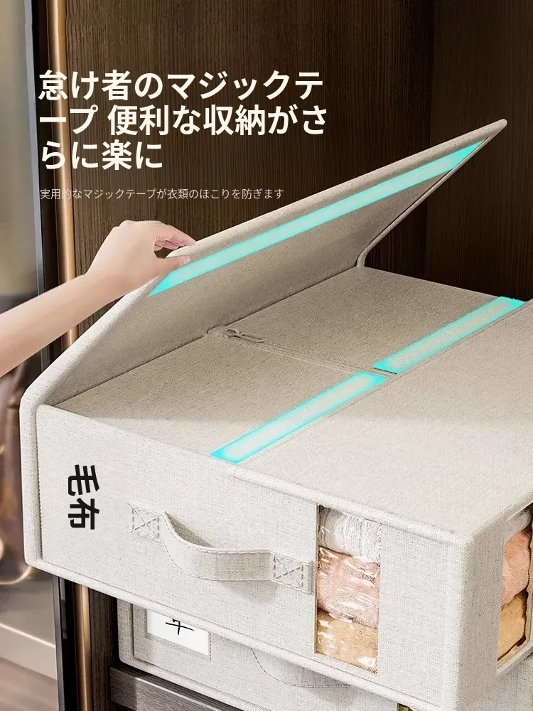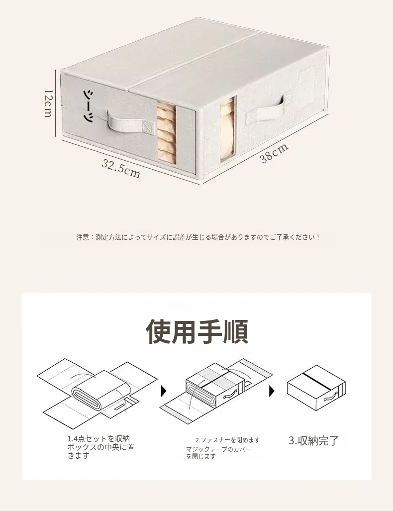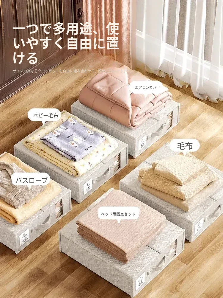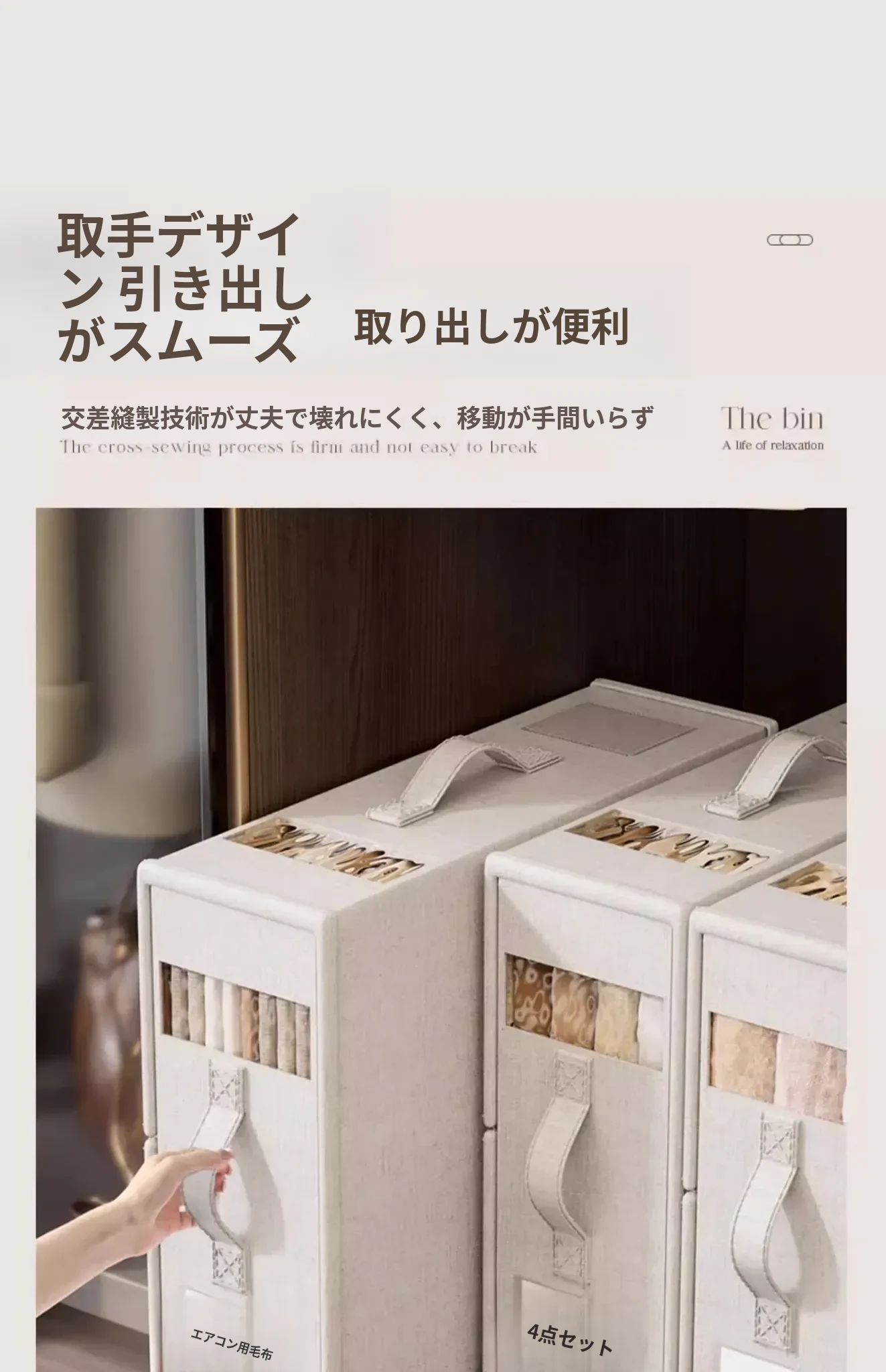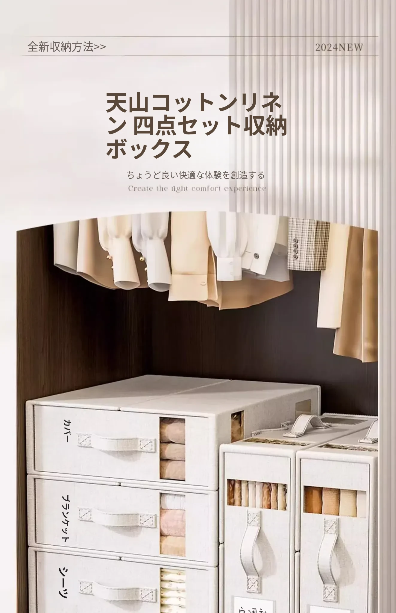 収納ボックス付き!ベッドシーツ・カバー4点セット - コットンリネン素材の毛布やシーツをすっきり整理。クローゼットや衣類収納に最適なアイテムです。生活をもっと快適に!
