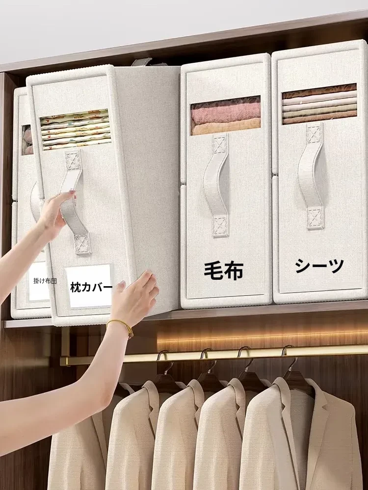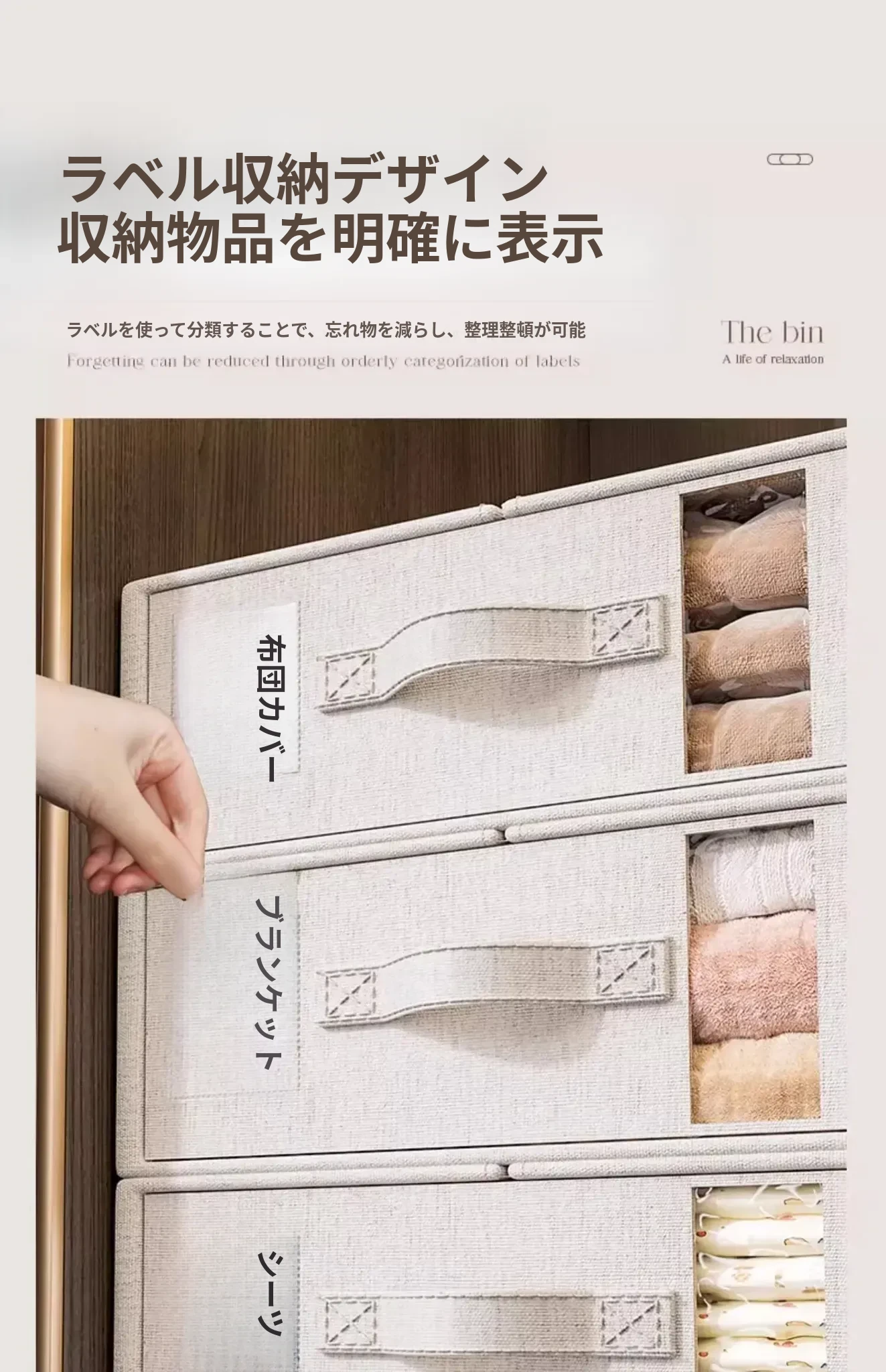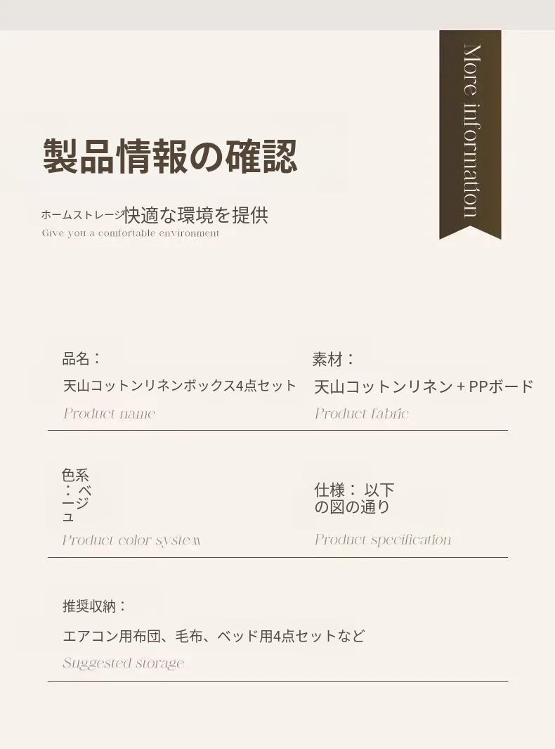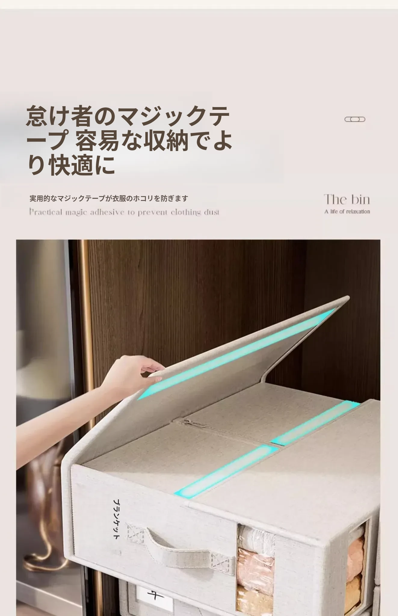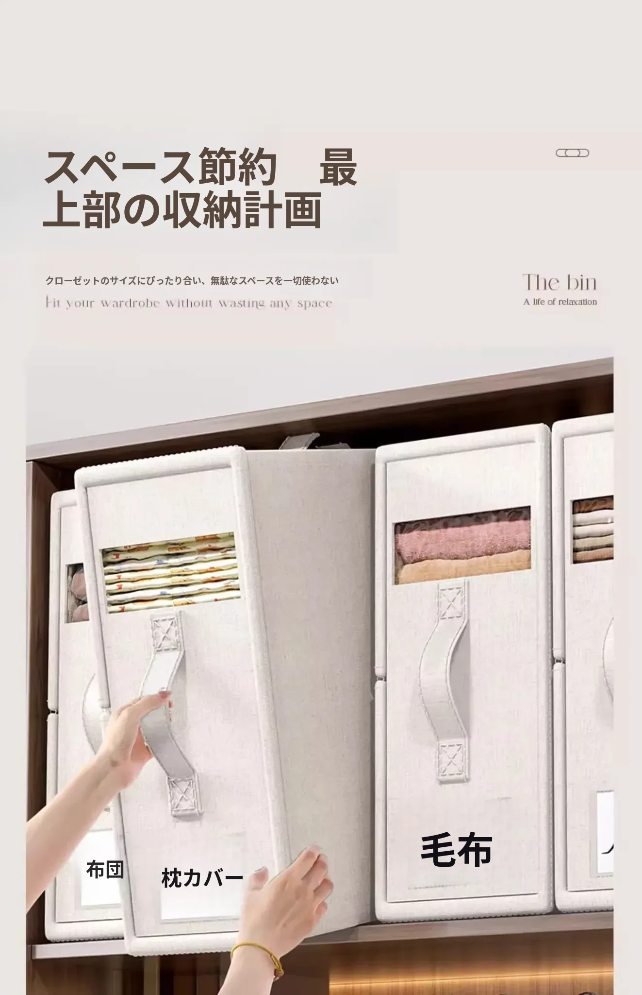 収納ボックス付き!ベッドシーツ・カバー4点セット - コットンリネン素材の毛布やシーツをすっきり整理。クローゼットや衣類収納に最適なアイテムです。生活をもっと快適に!