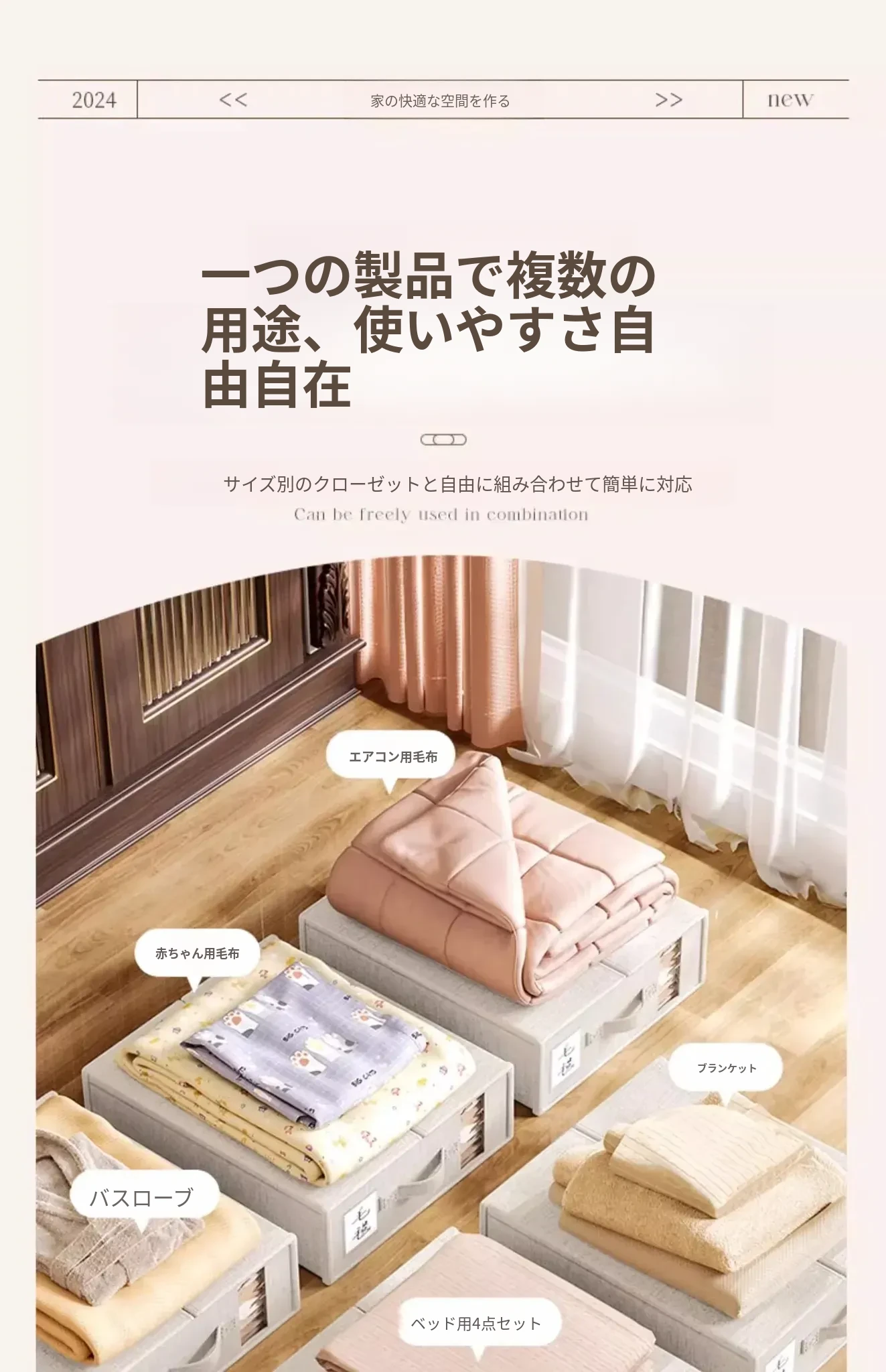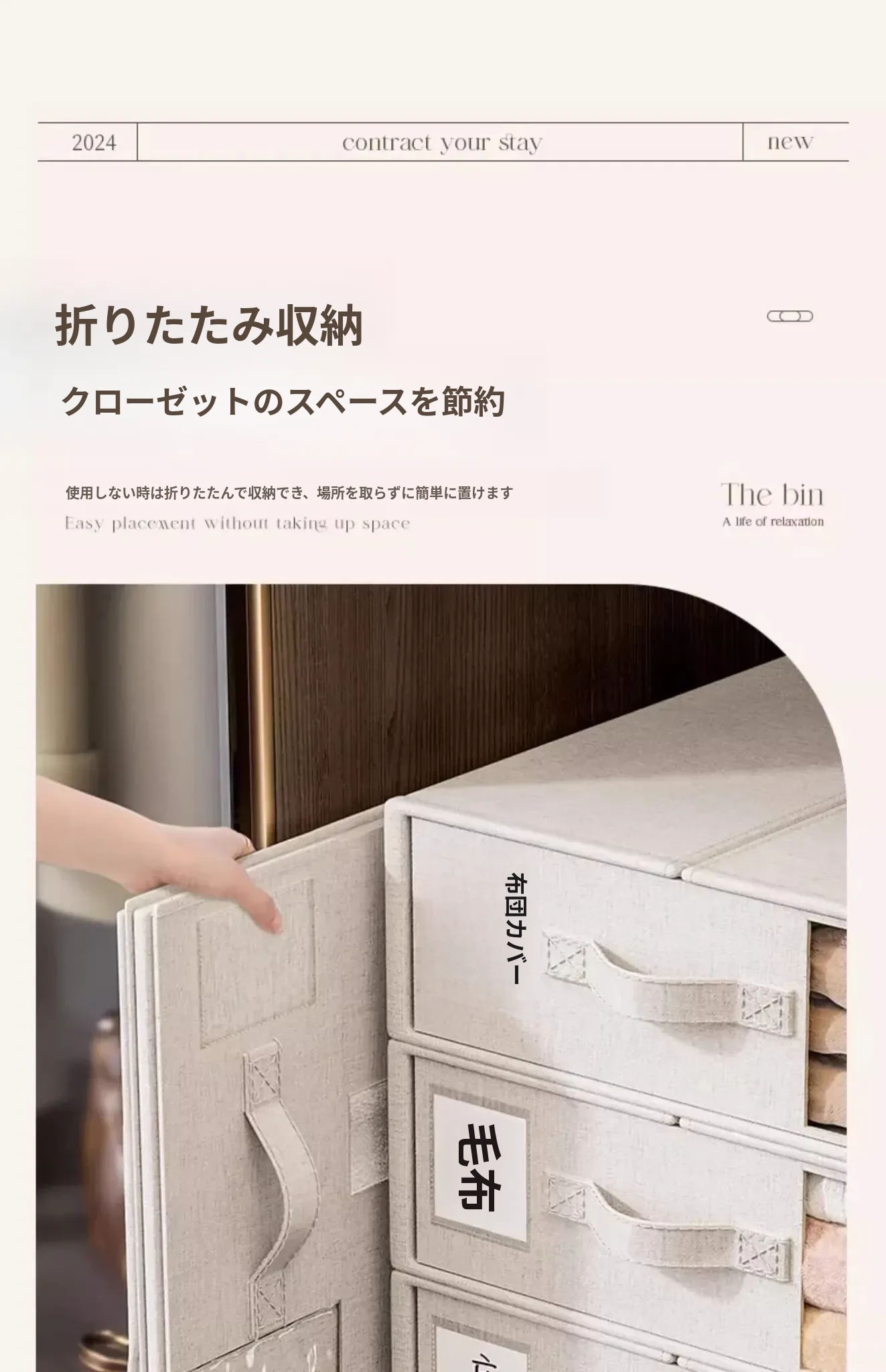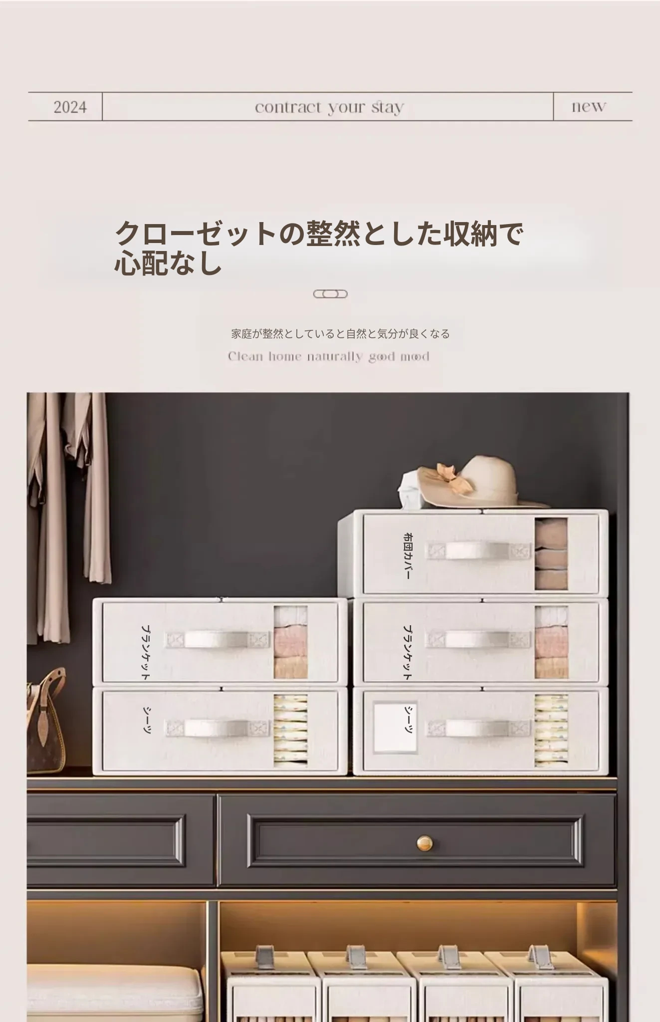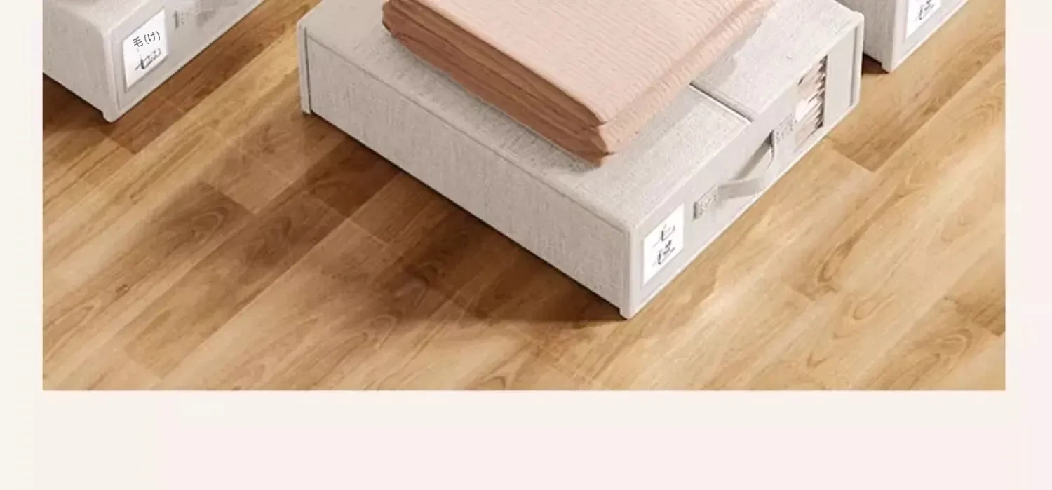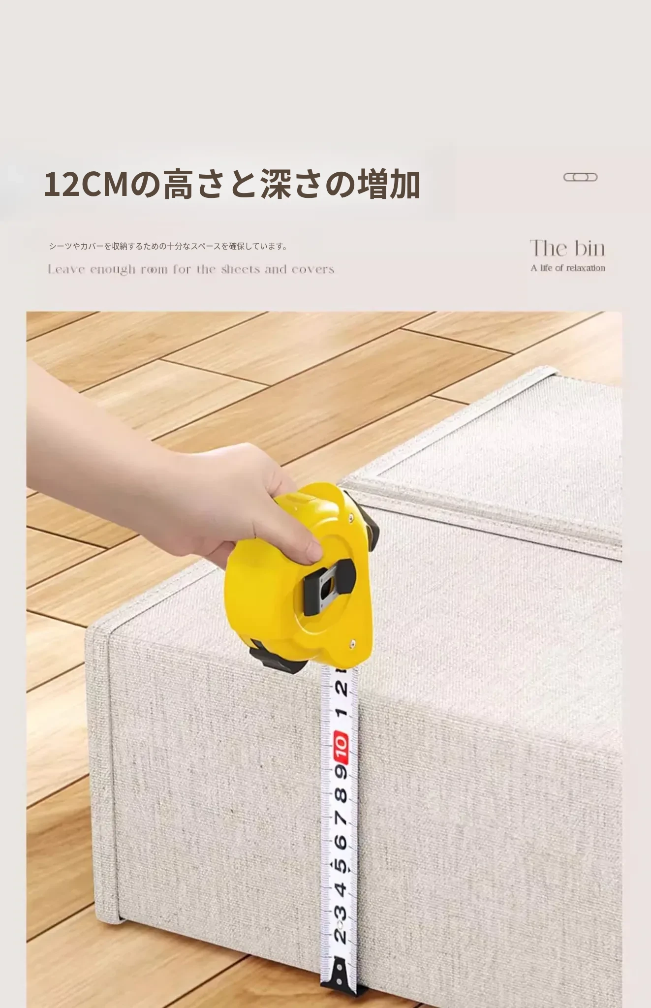 収納ボックス付き!ベッドシーツ・カバー4点セット - コットンリネン素材の毛布やシーツをすっきり整理。クローゼットや衣類収納に最適なアイテムです。生活をもっと快適に!
