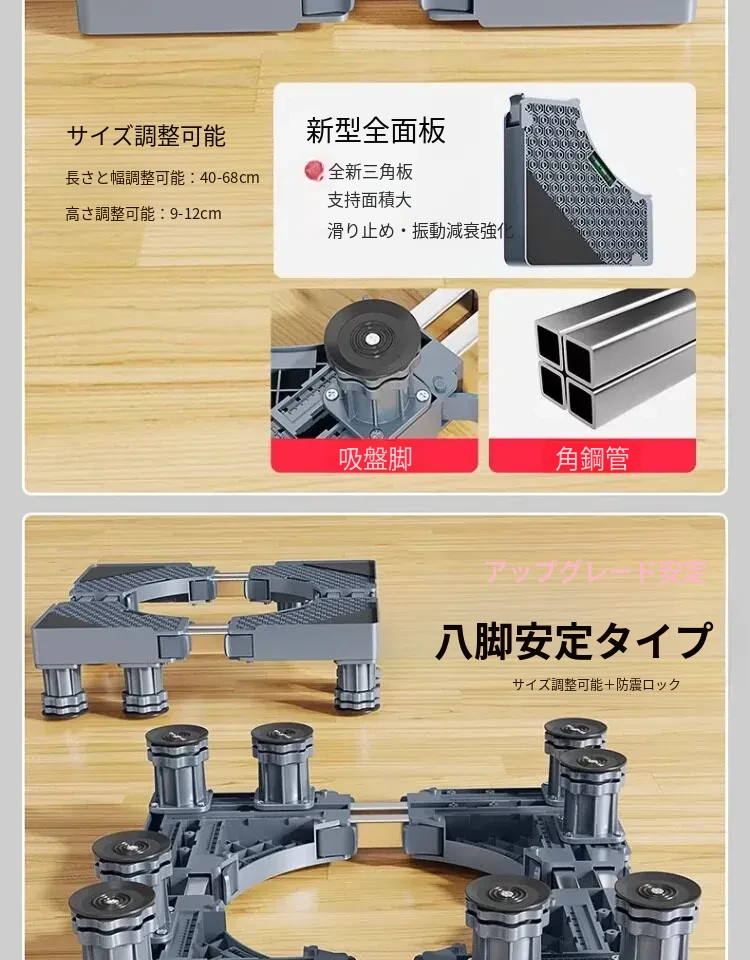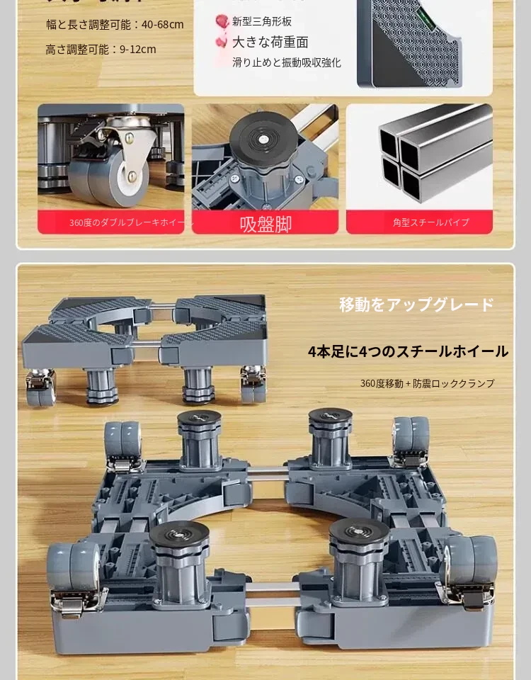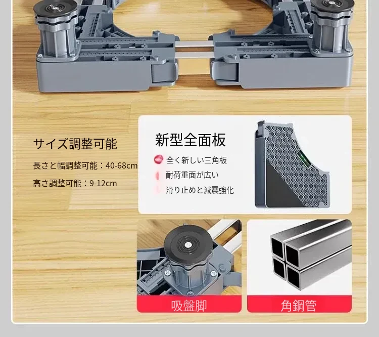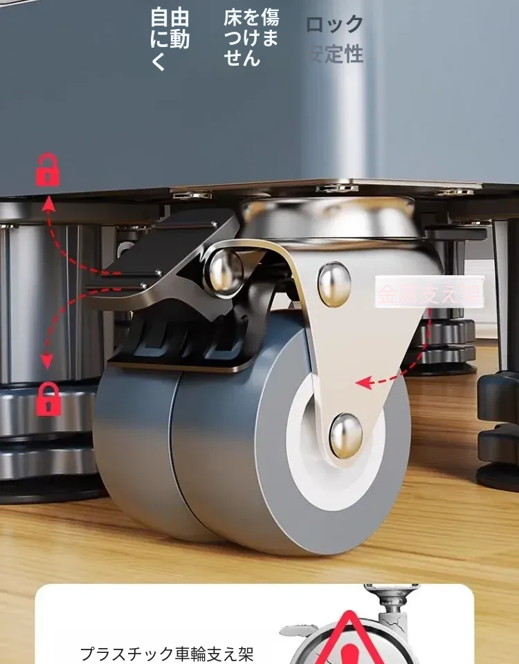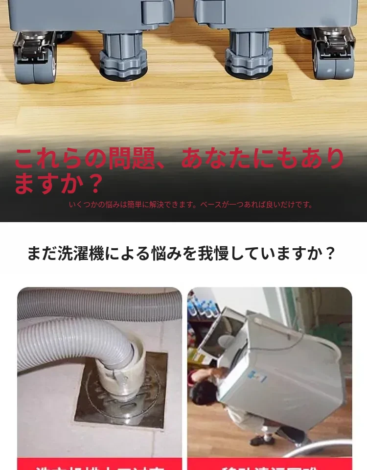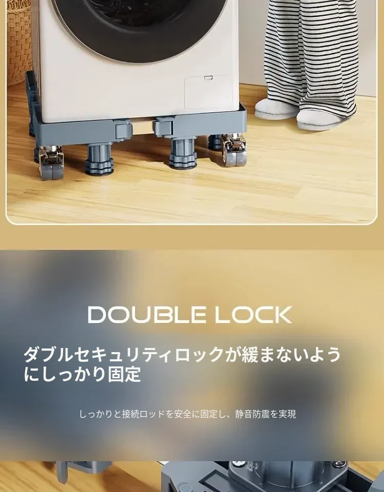 移動式のドラム式洗濯機用スタンド - 高さ調整可能な脚付き、冷蔵庫の収納にも最適!ハイアール製品専用の滑り止め・防震設計で安心!