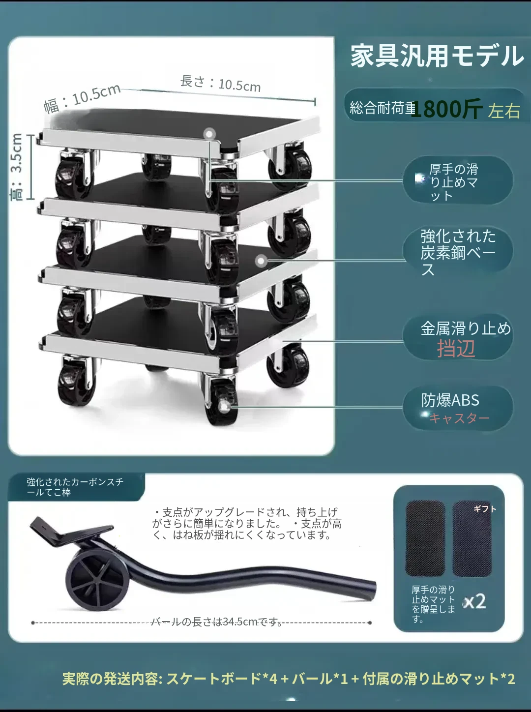 加大万向方形【耐荷重約1800斤】防脱防滑