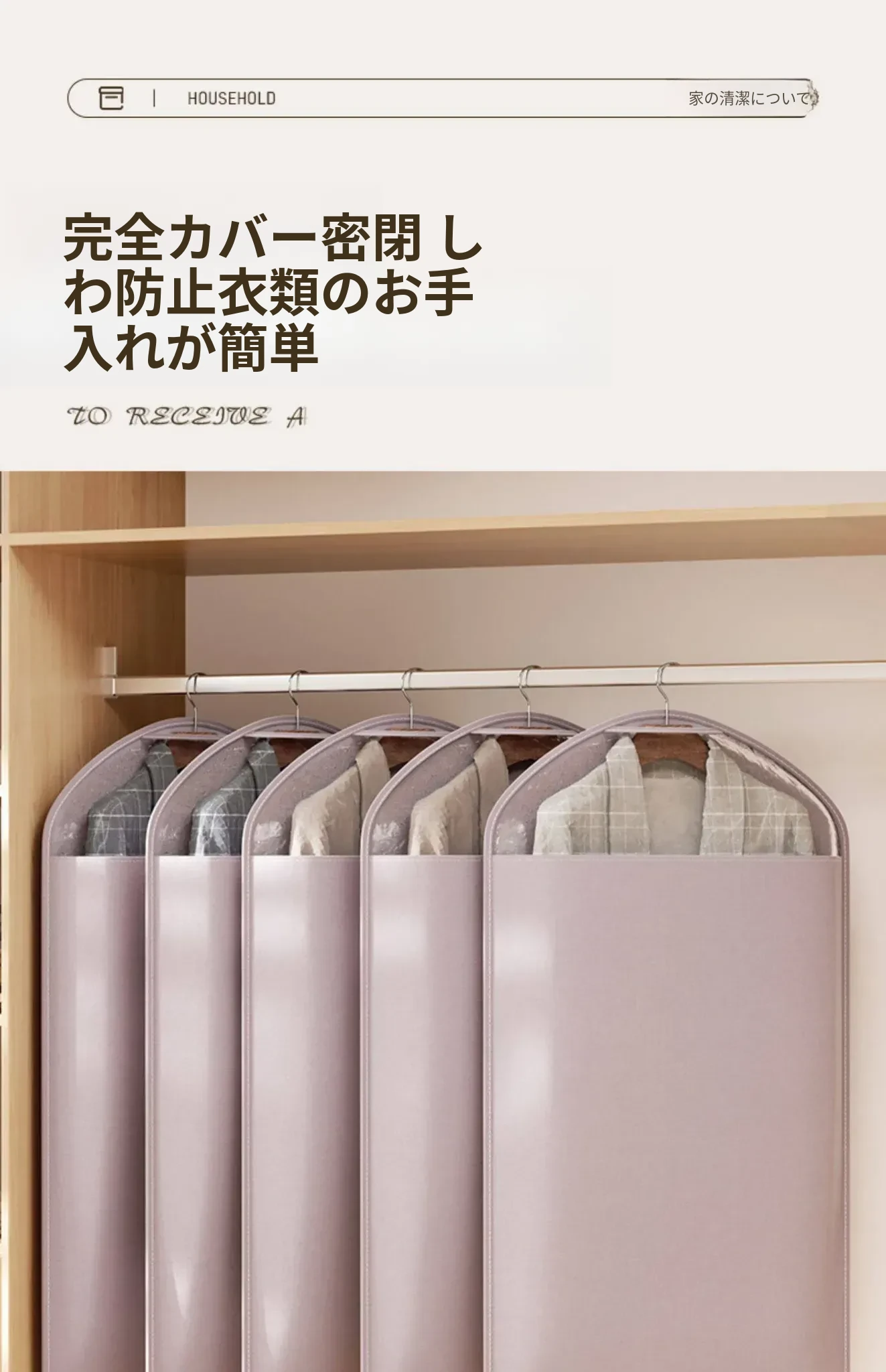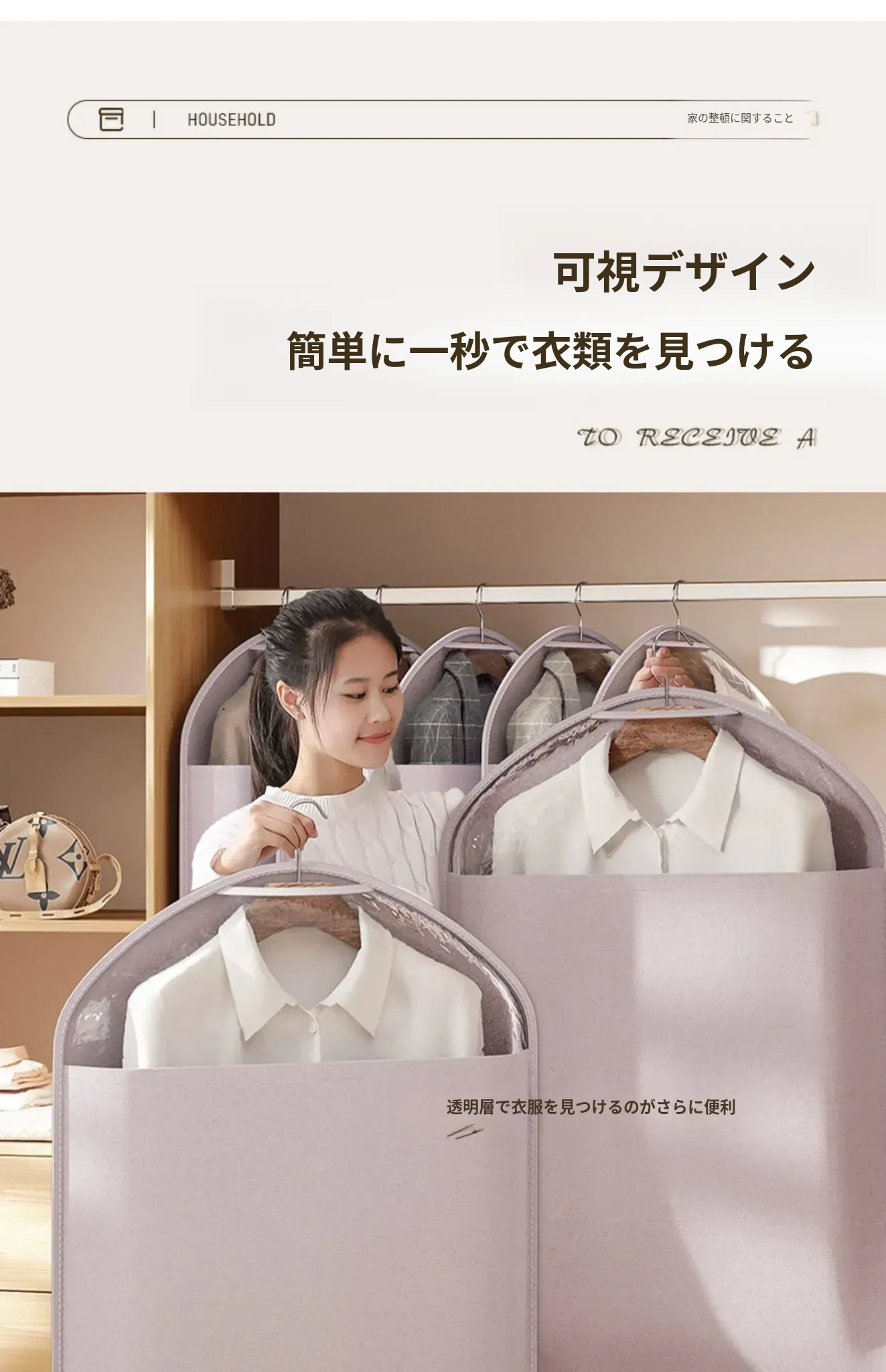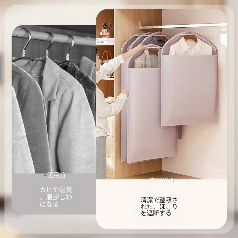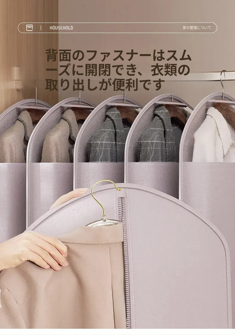 ホコリを防ぐ衣類カバー・収納バッグ!衣類やハンガーをしっかり守る大容量のコートカバー。家庭用に最適なスタンド式衣類カバーで、大切な服をいつでも清潔に保ちます!