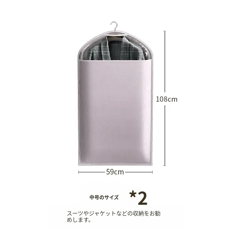 【防塵収納】グレー紫-中サイズ59*108cm(適用衣長は大腿まで)