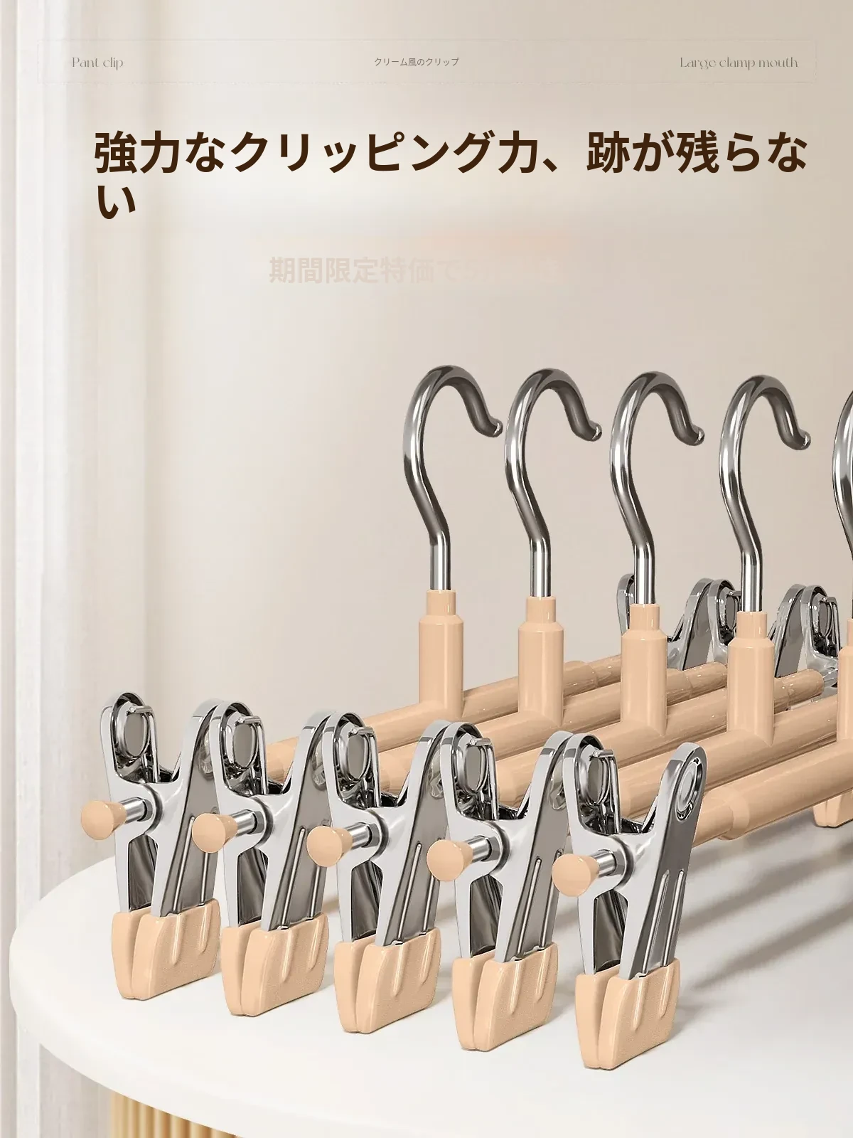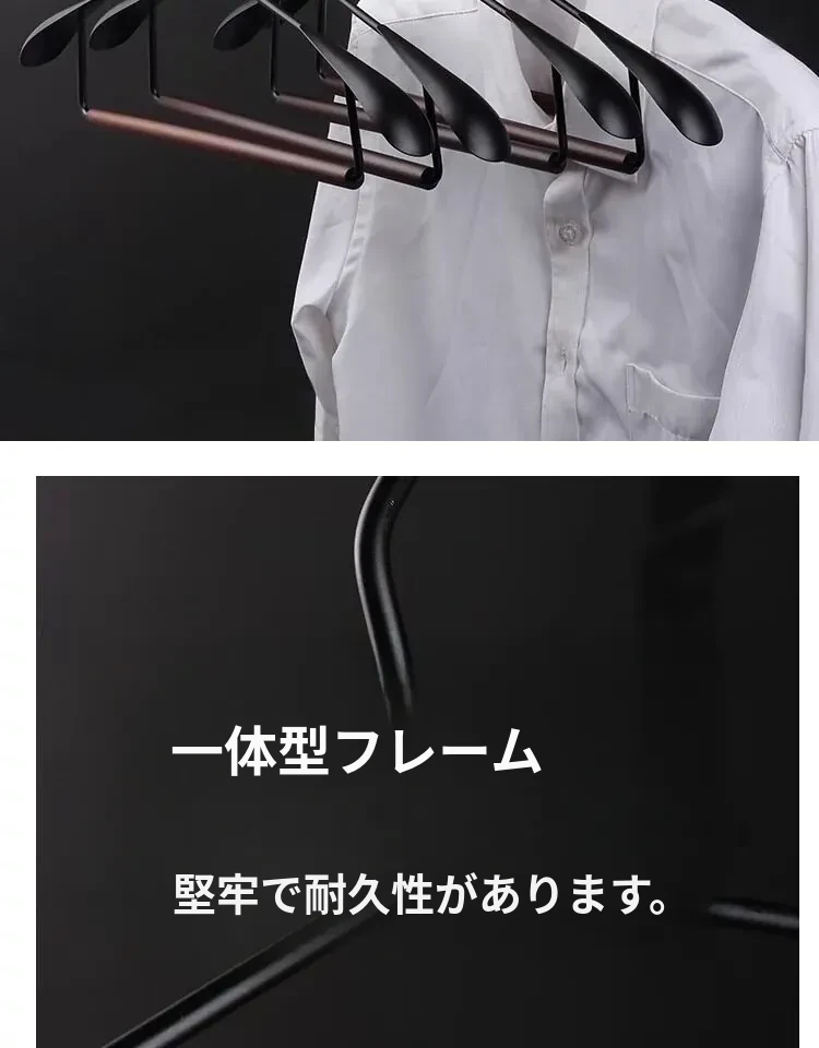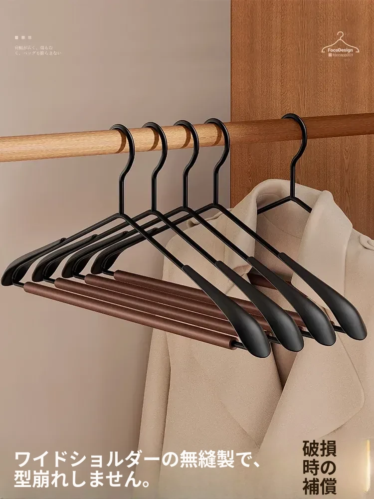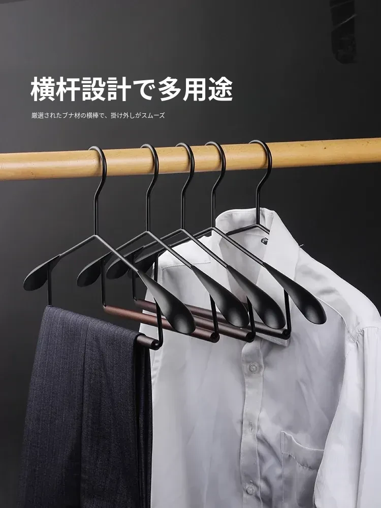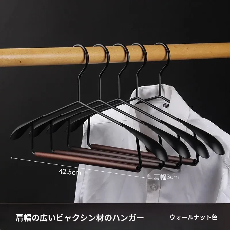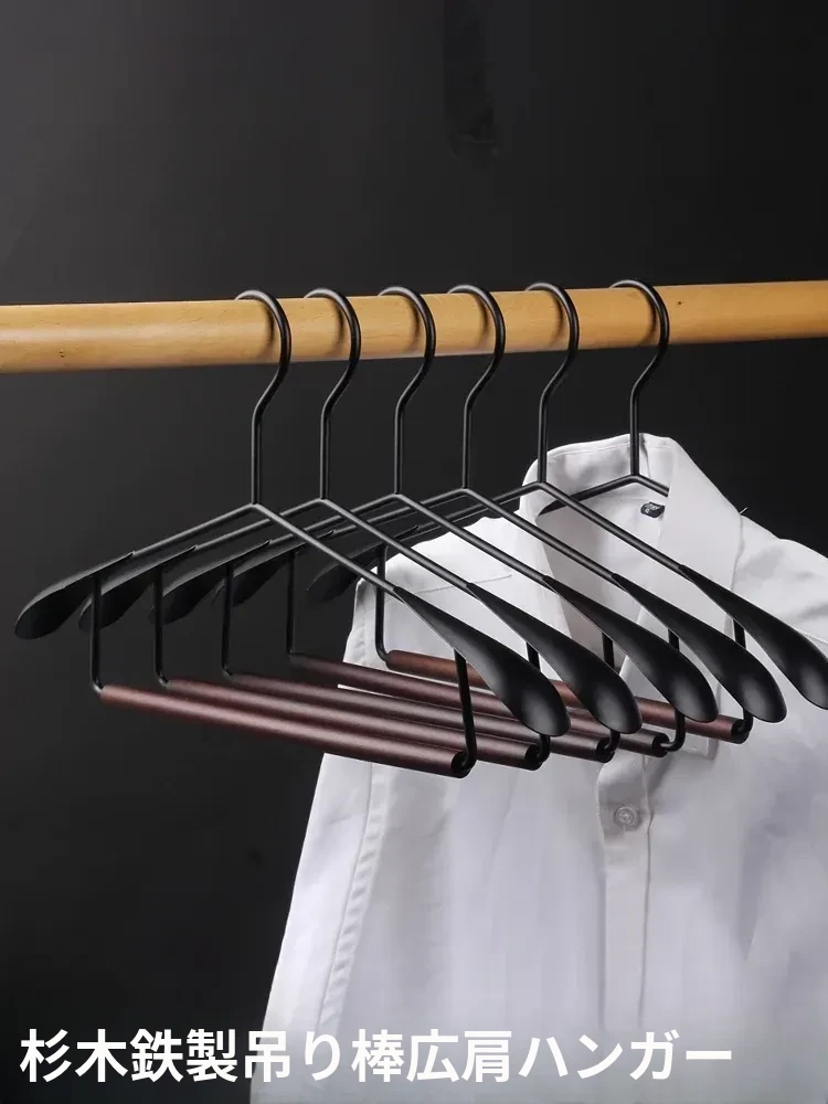 5本セットのブナ材アイアンワイドショルダーコートハンガー【吊り棒タイプ】