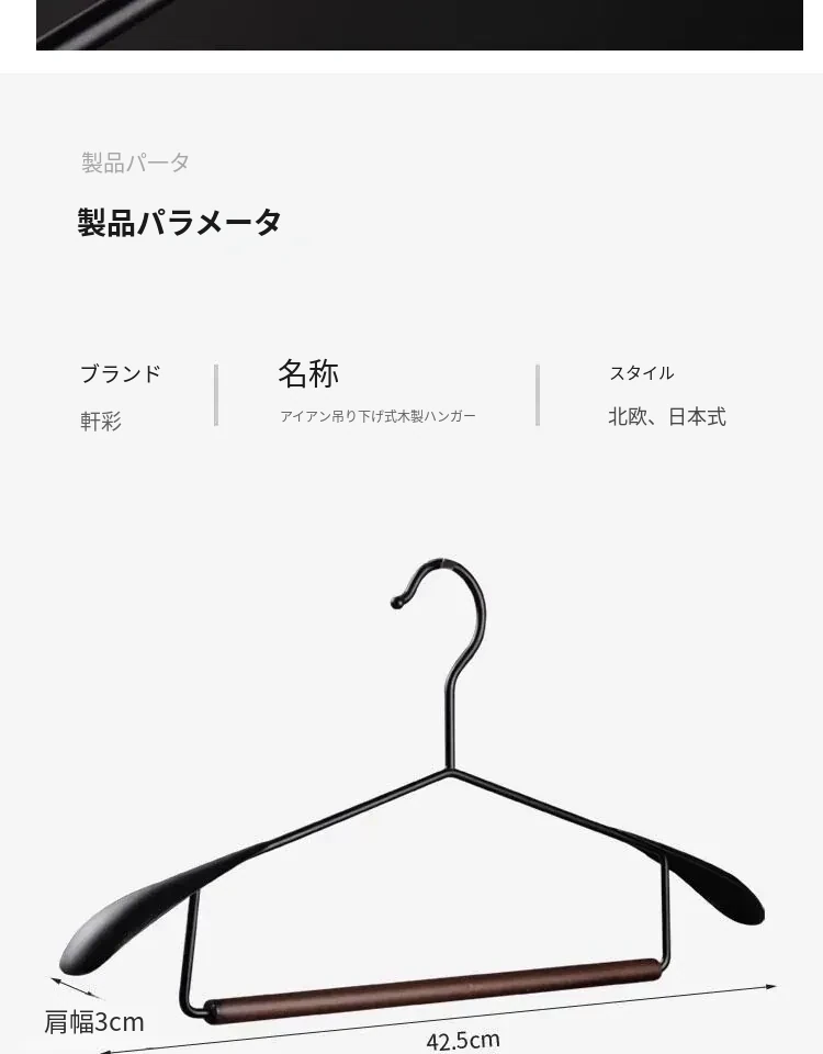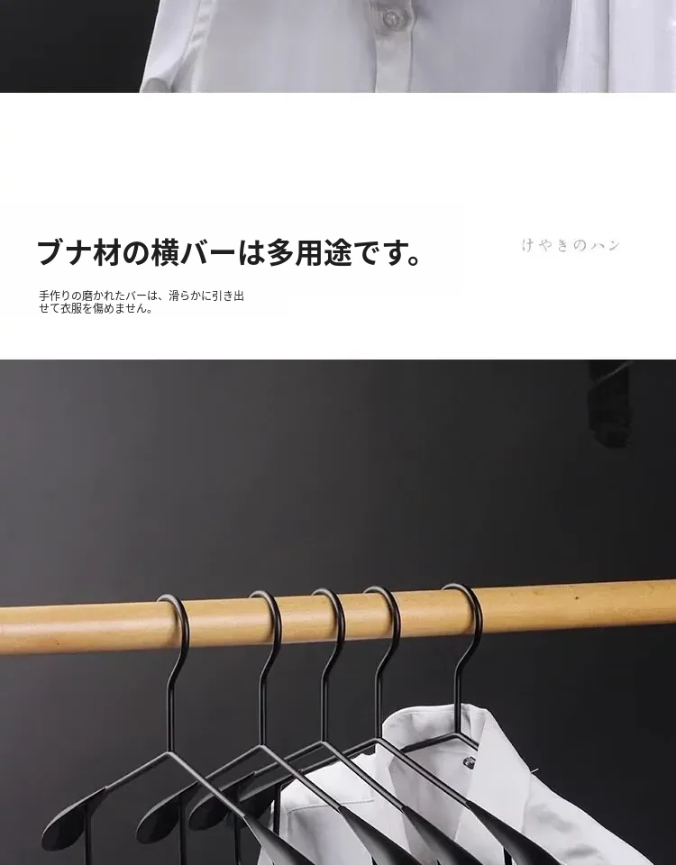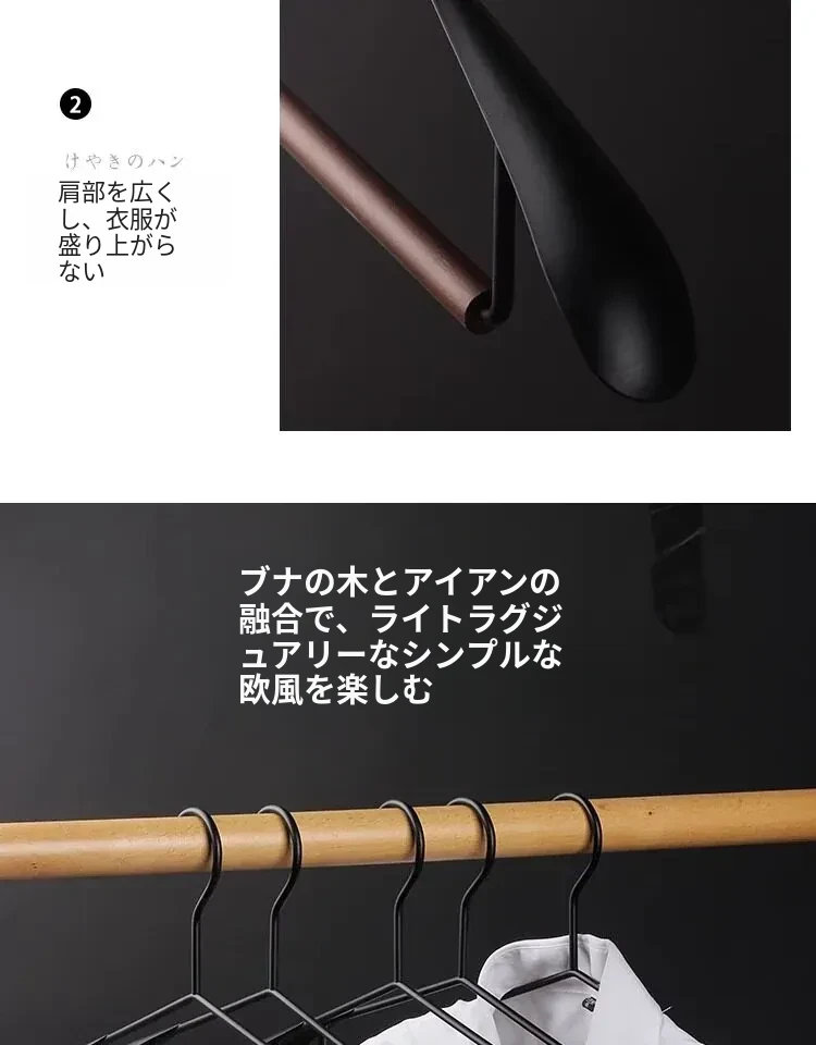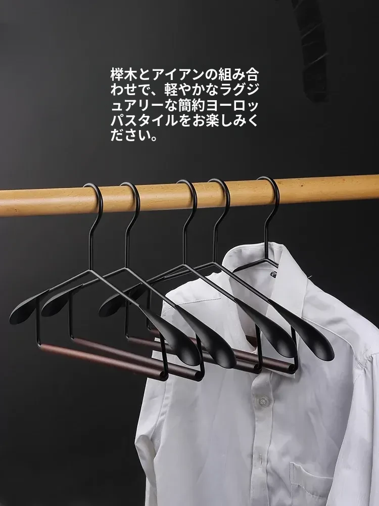 高級感あふれる榉木製・鉄製広肩衣類ハンガー - 無痕デザインで衣類を優しく守る、家用に最適な木製ハンガー!クローゼットやウォークインクローゼットにぴったり。