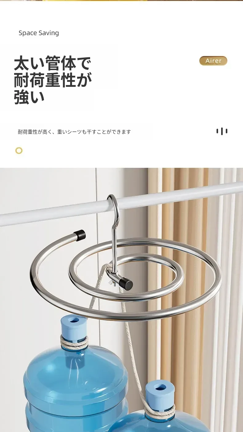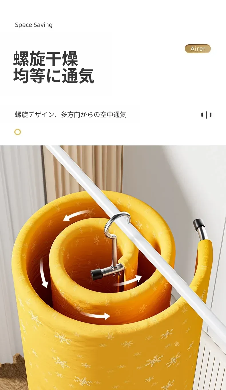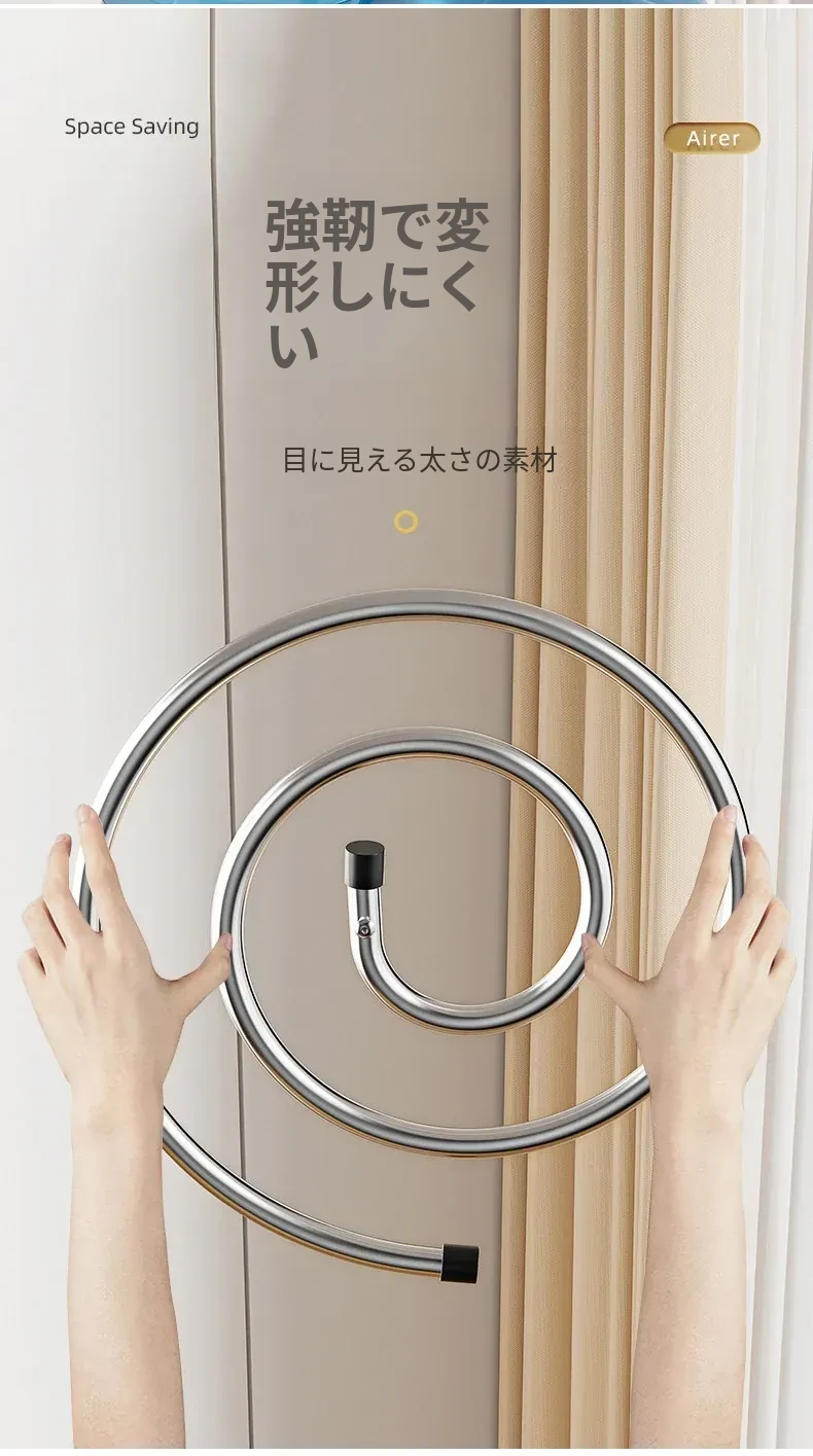 ドイツ製の洗濯物を一瞬で干せる!螺旋型の回転式ハンガー、バルコニーや家庭用に最適な円形デザイン。シーツやコートも楽々干せる、便利でスペースを節約できるアイテムです!