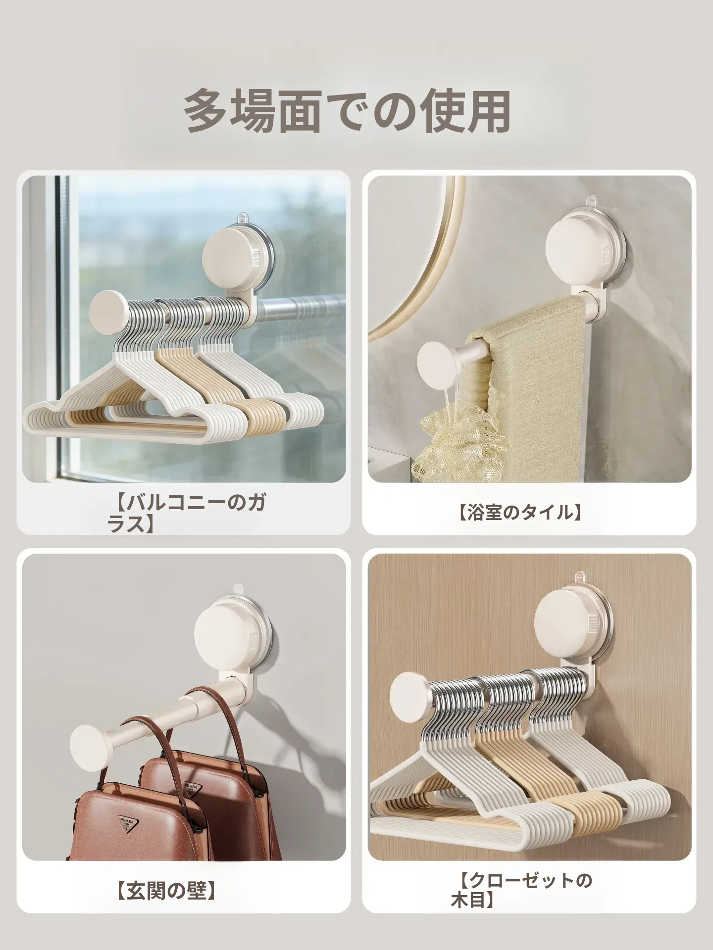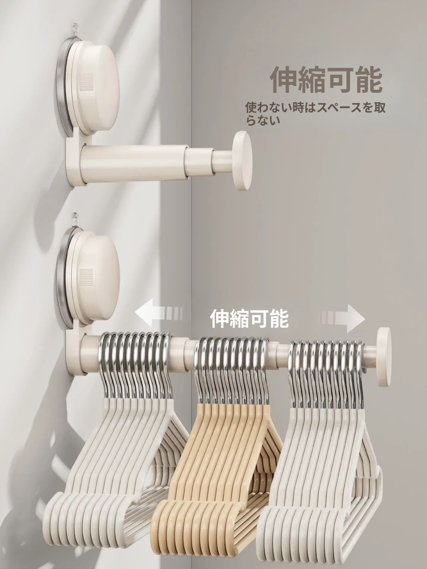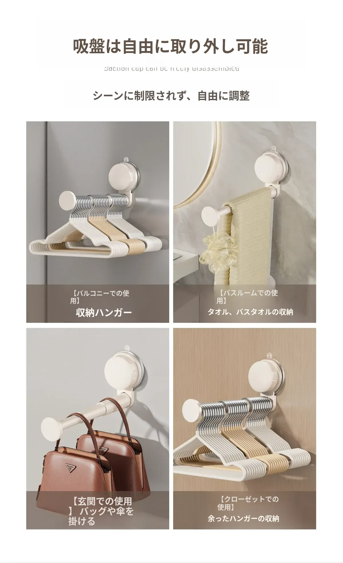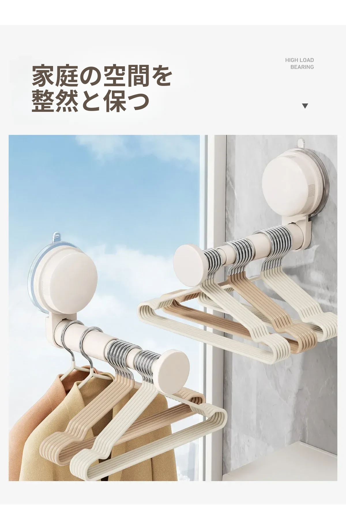 日本製 吸盤式バルコニー衣類ハンガー収納アイテム - 多機能・穴あけ不要・伸縮式壁掛けハンガー!自宅でのスペースを有効活用し、洗濯物や衣類をスッキリ整理!