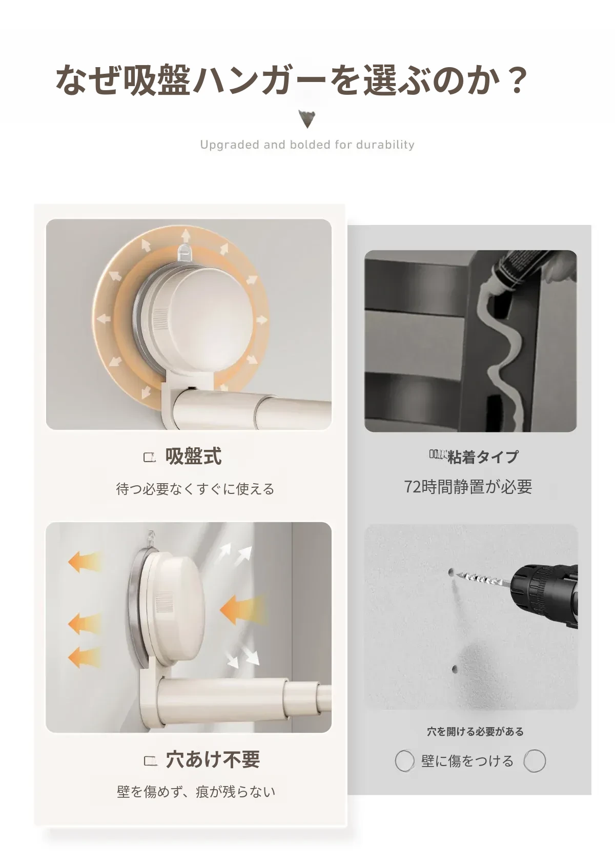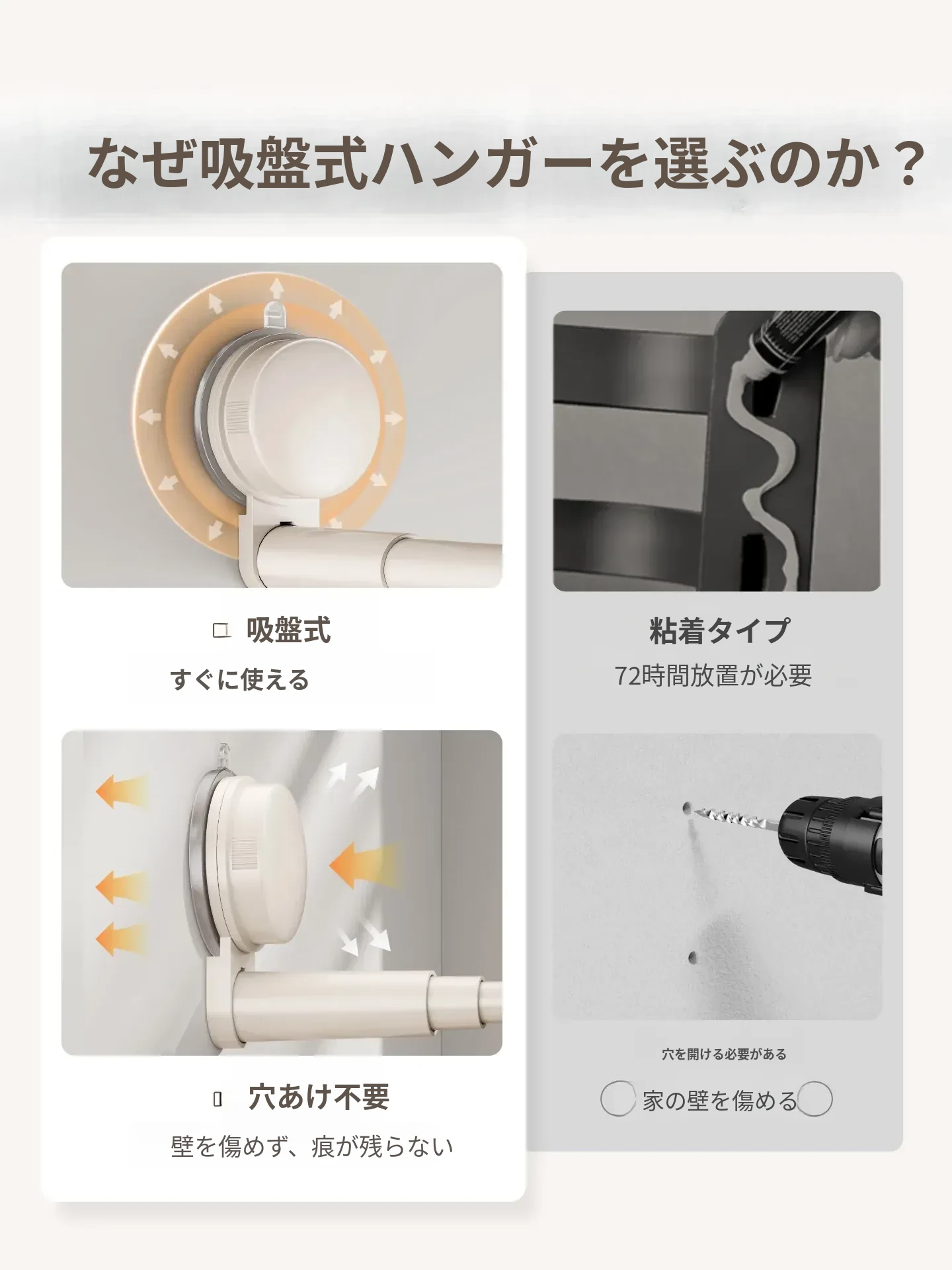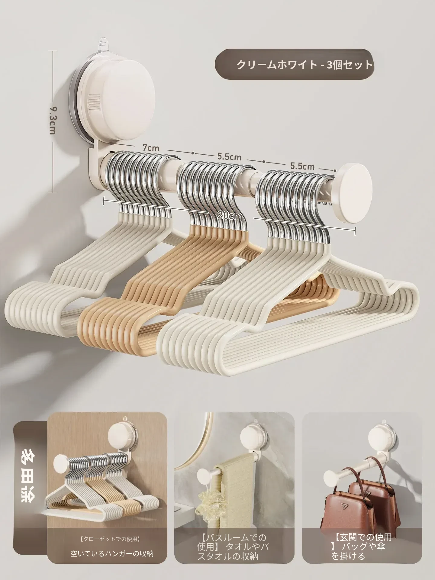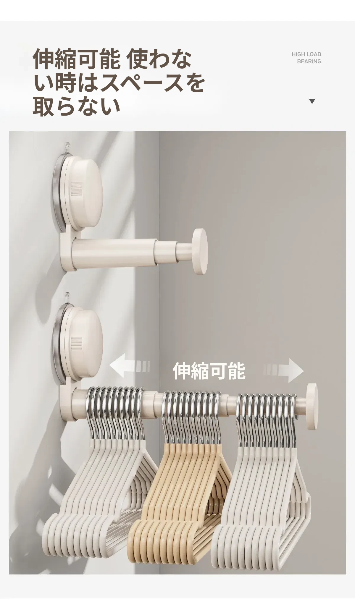 日本製 吸盤式バルコニー衣類ハンガー収納アイテム - 多機能・穴あけ不要・伸縮式壁掛けハンガー!自宅でのスペースを有効活用し、洗濯物や衣類をスッキリ整理!