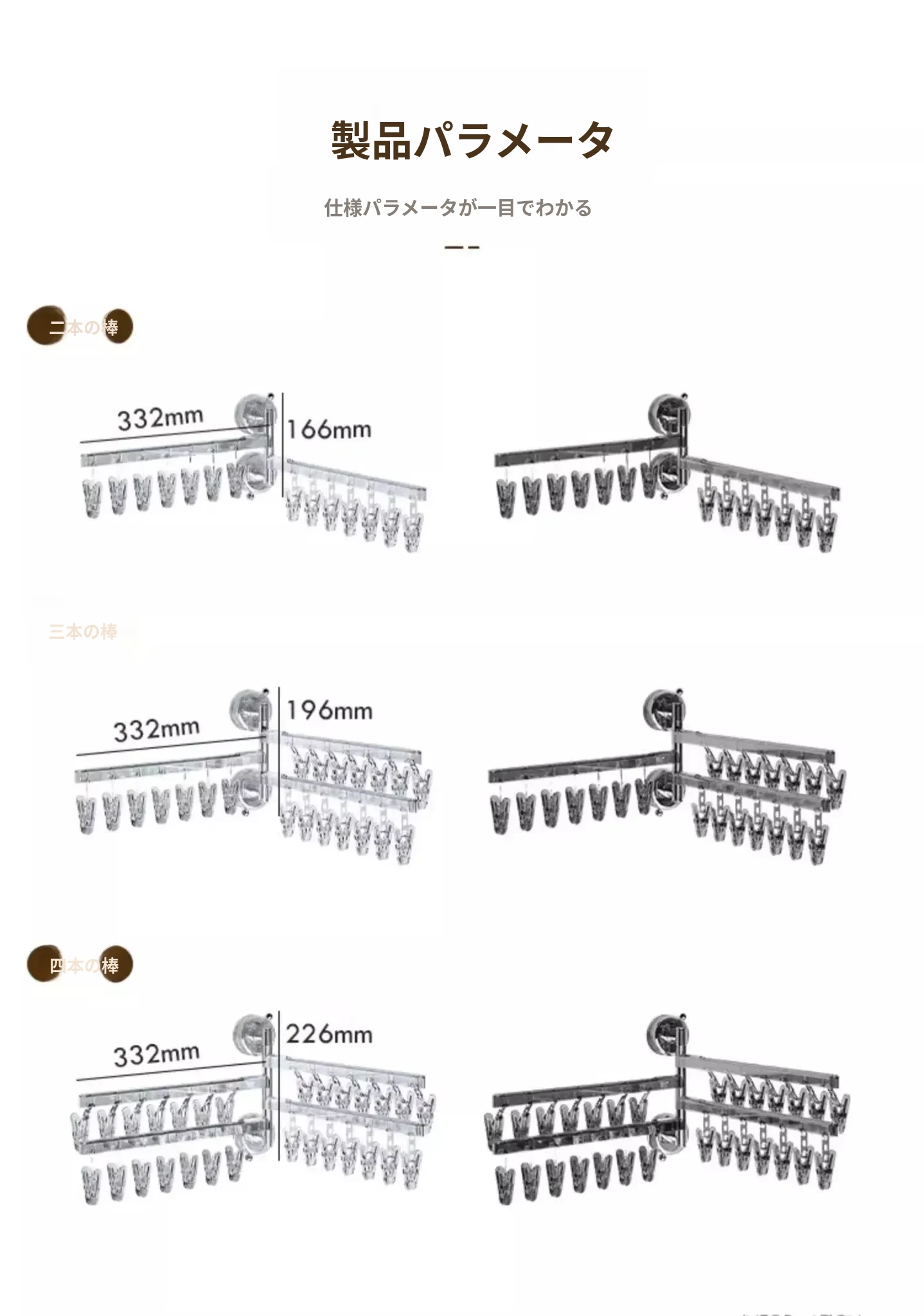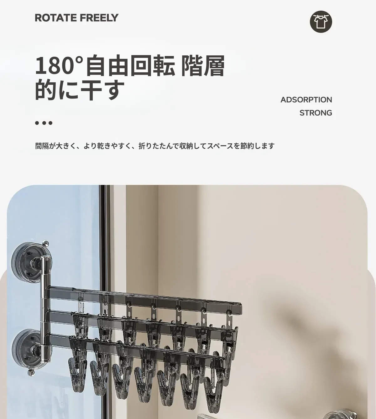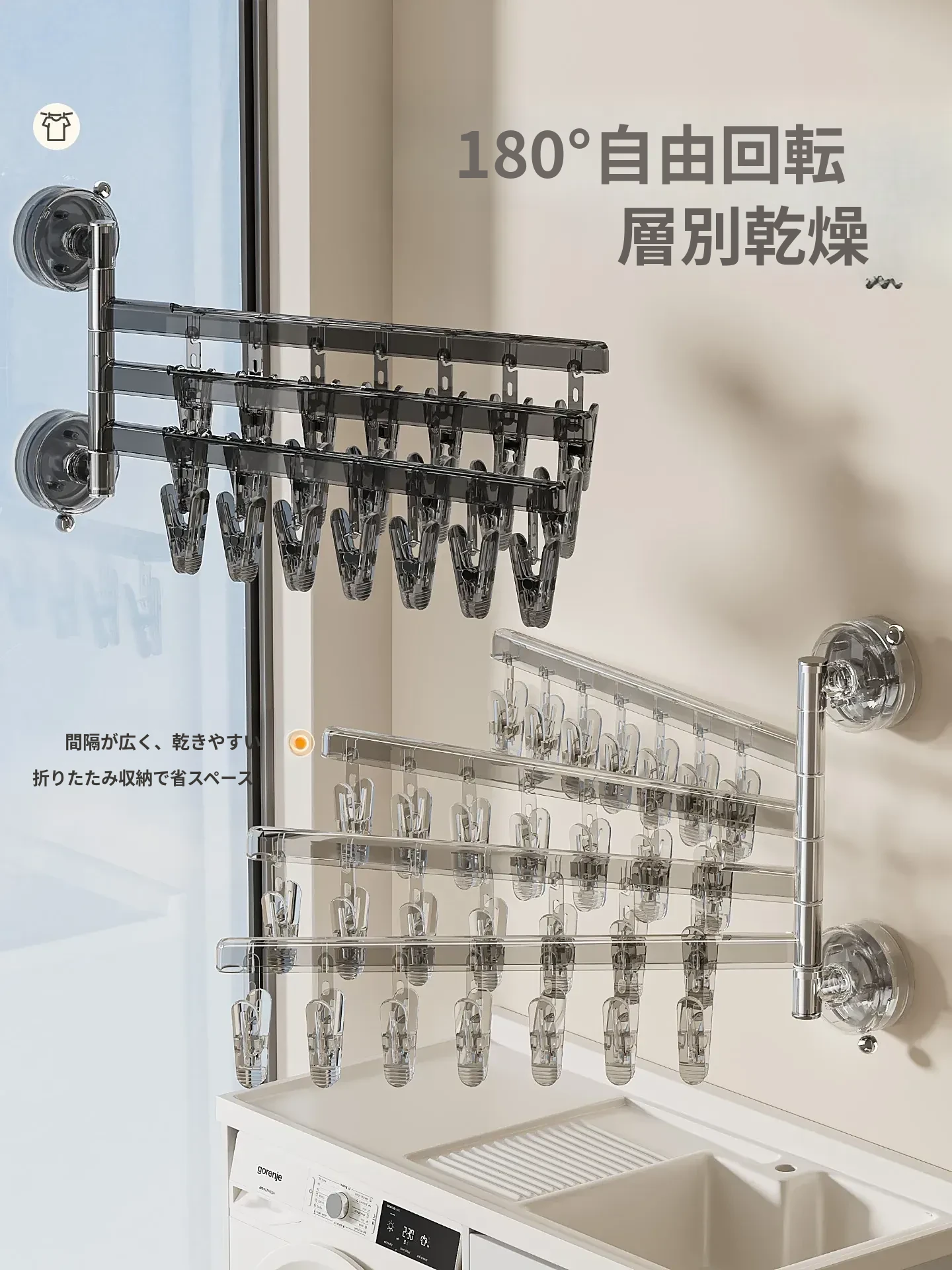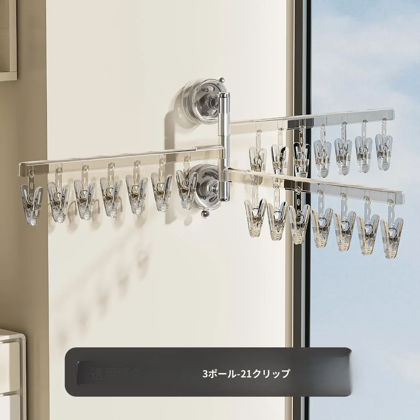 【透亮白】三杆21クリップ✅️108°回転可能な干燥