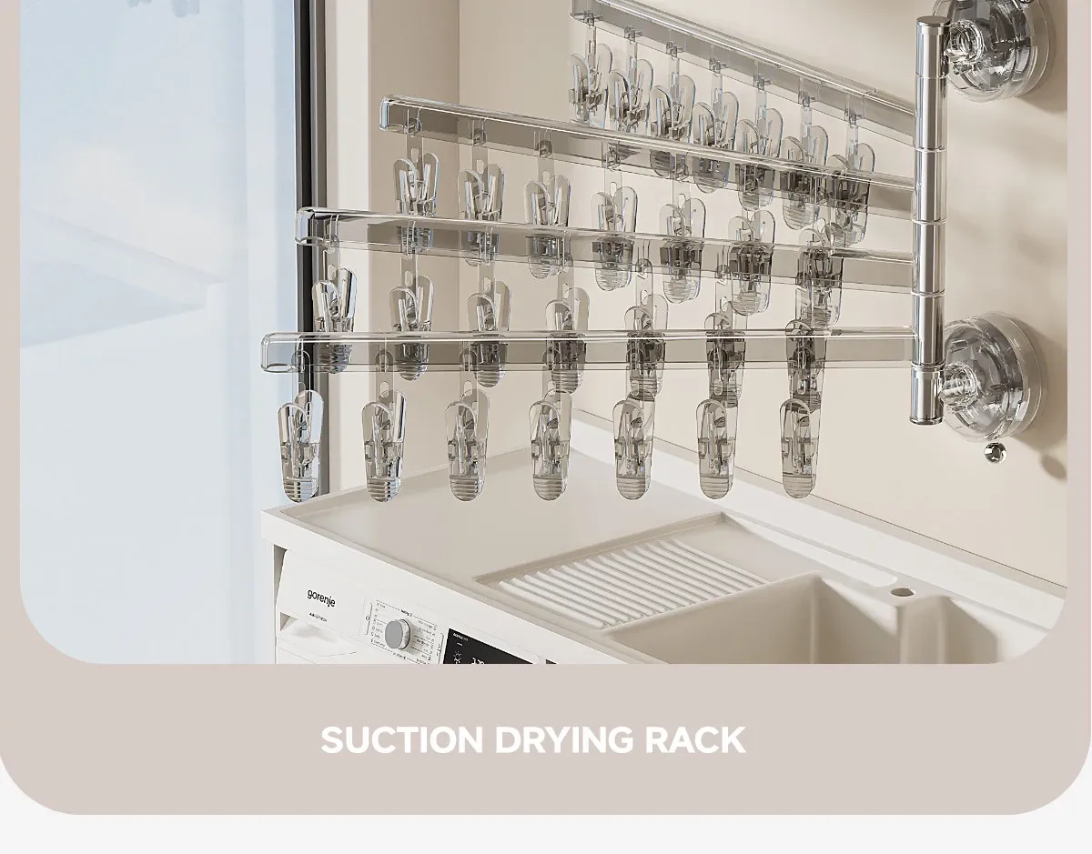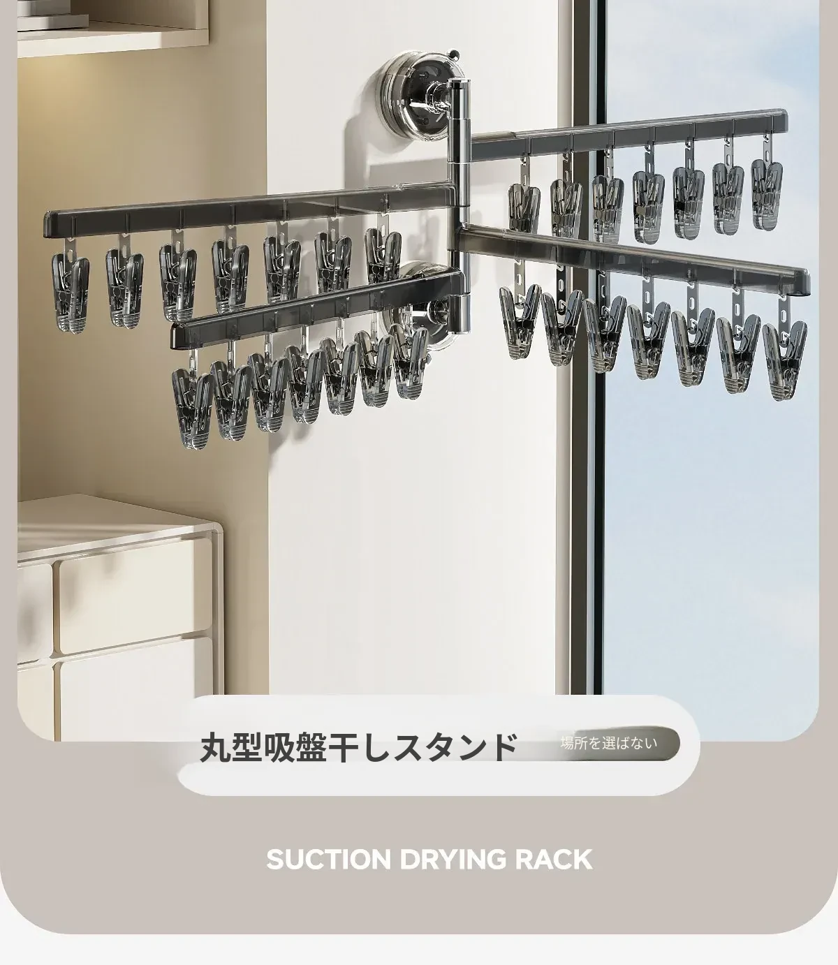 日本製 吸盤付きソックス乾燥ラック 多機能クリップ 家庭用 折りたたみ式 壁掛けバルコニー用 下着・パンツも楽々 無穴設置の便利な干しラック!